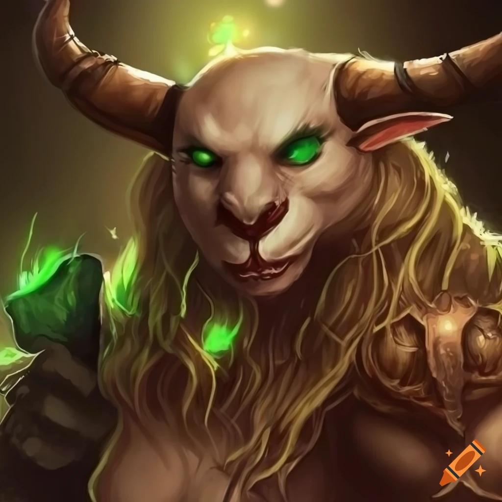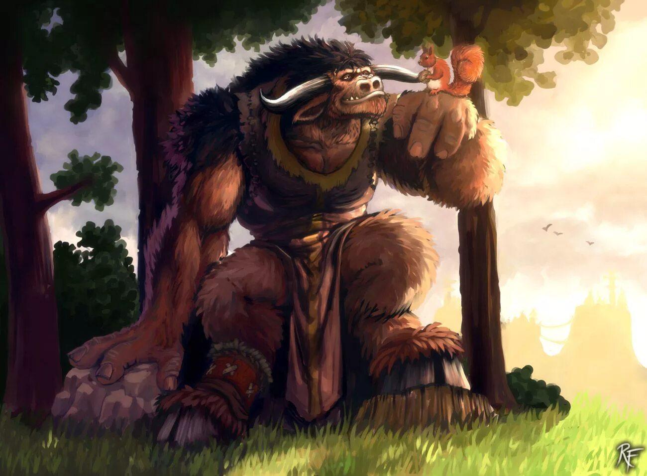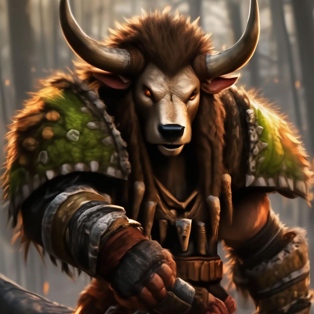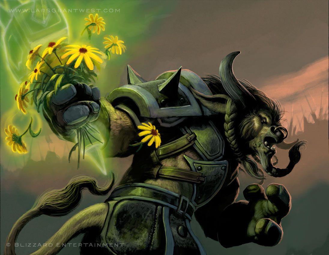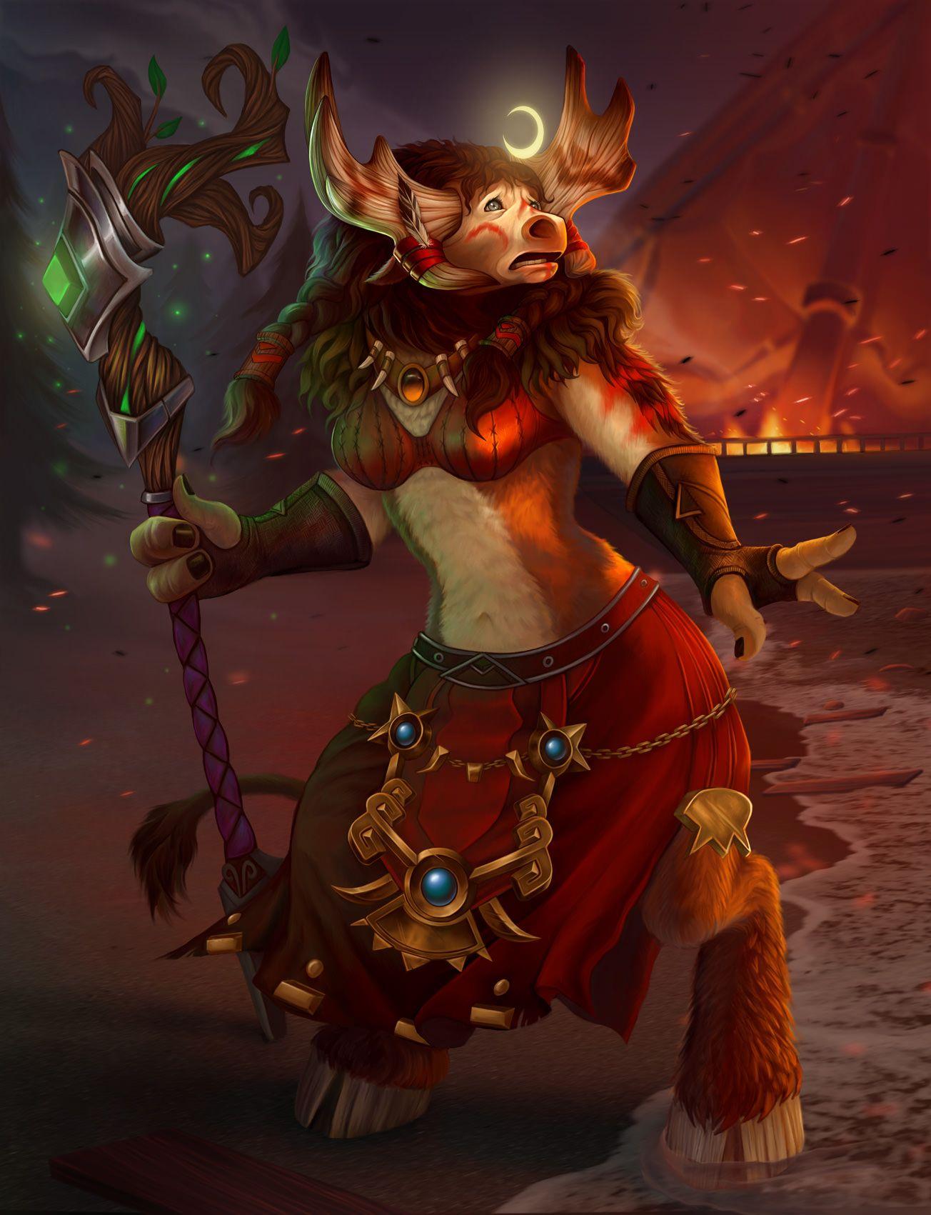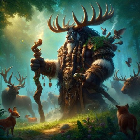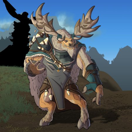Таурен-друид в World of Warcraft представляет собой гармонию силы и мудрости природы. Его массивное тело, покрытое шерстью, и рога символизируют связь с древними силами земли. В иллюстрациях он предстает то в медитативной позе, то в боевой трансформации. Этот персонаж воплощает баланс между цивилизацией и дикой природой, способность общаться с духами животных и растений. Таурен-друид - защитник экосистем Азерота.