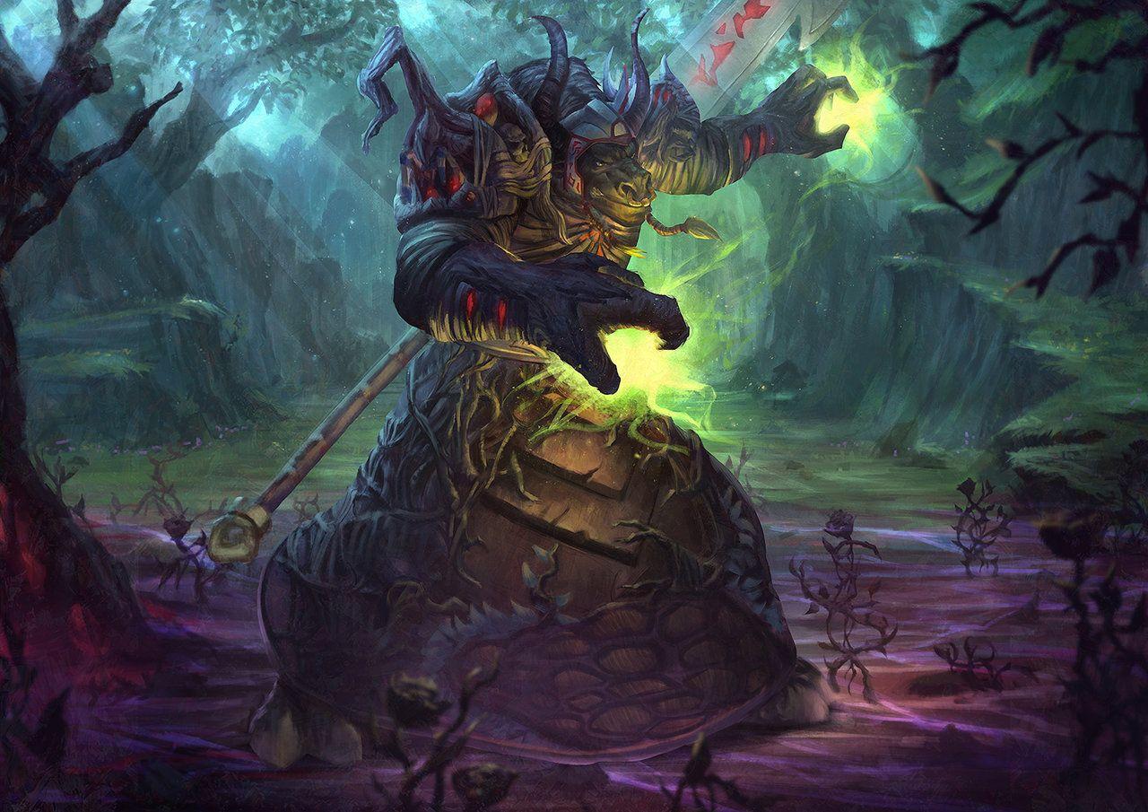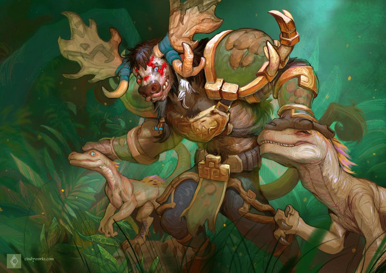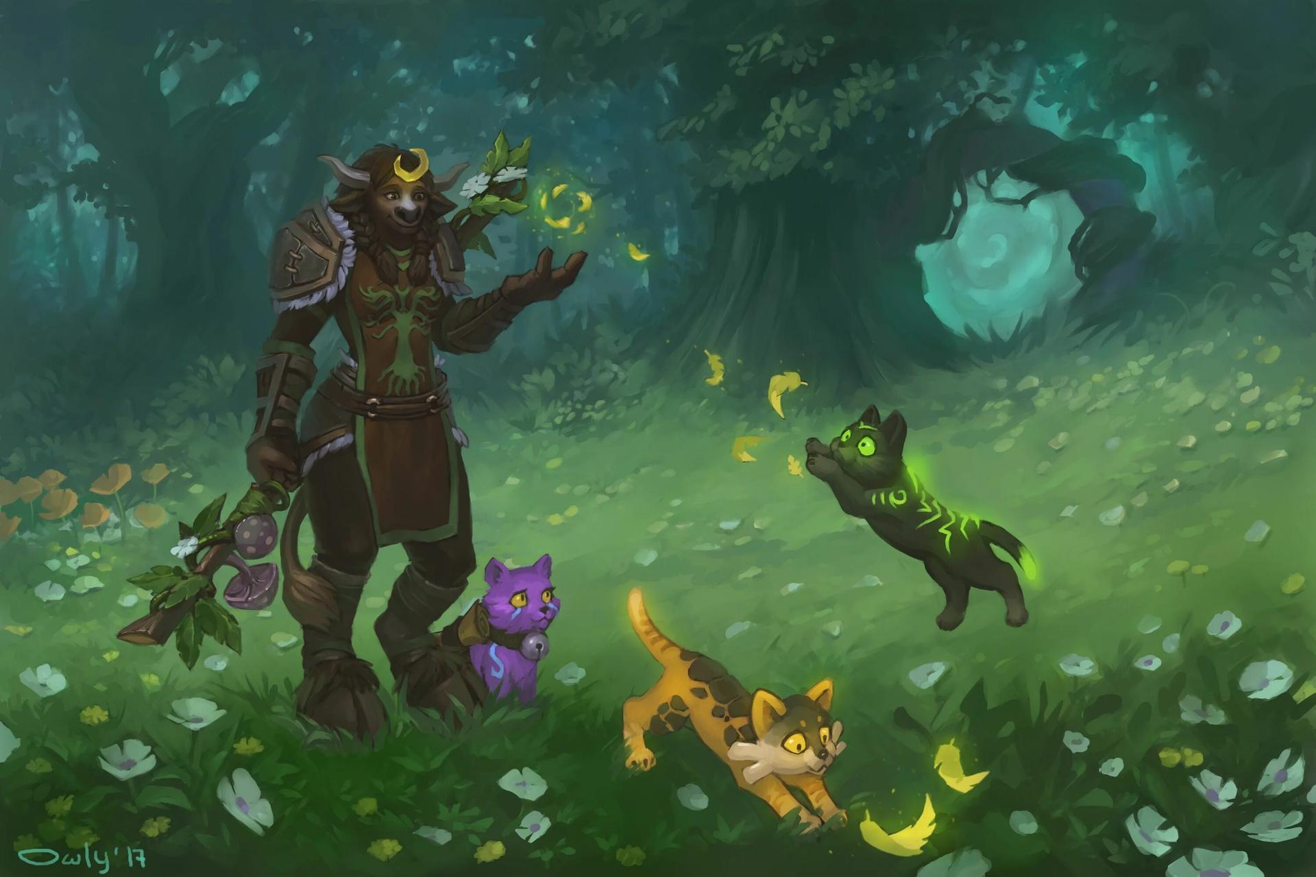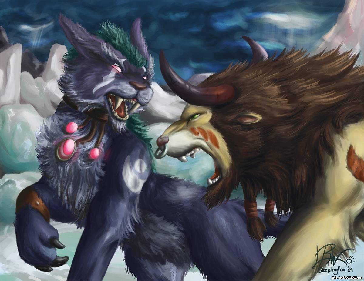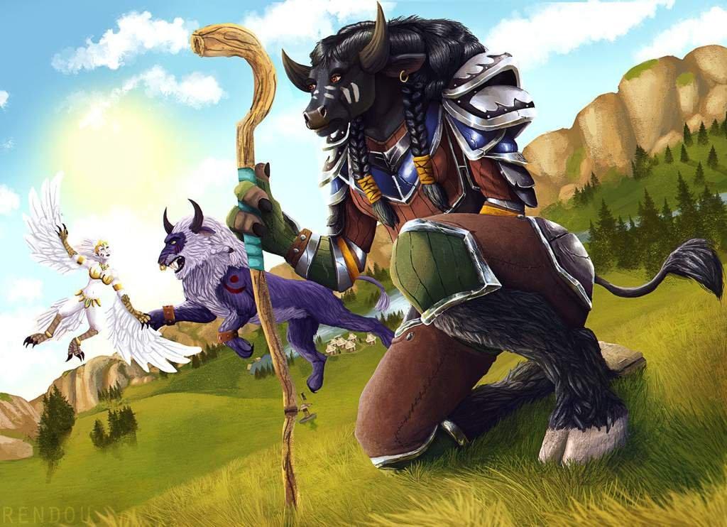 Таурен-друид в World of Warcraft представляет собой гармонию силы и мудрости природы. Его массивное тело, покрытое шерстью, и рога символизируют связь с древними силами земли. В иллюстрациях он предстает то в медитативной позе, то в боевой трансформации. Этот персонаж воплощает баланс между цивилизацией и дикой природой, способность общаться с духами животных и растений. Таурен-друид - защитник экосистем Азерота.