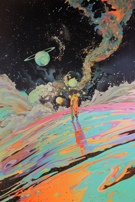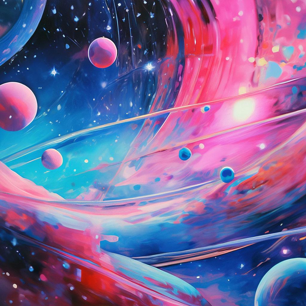 Космос предстает в этих абстрактных иллюстрациях как бесконечное пространство для философских размышлений и научных открытий. Художники мастерски передают его масштабы через разнообразные формы: от спиральных галактик до квантовых вспышек, от черных дыр до космической пыли. Каждая работа раскрывает разные аспекты вселенной - движение небесных тел, взаимодействие материи и энергии, красота математических закономерностей. Детали тщательно проработаны: спектральные цвета, динамические формы, разнообразные текстуры от гладких до хаотичных, эффекты глубины и перспективы. Эти изображения сочетают науку с искусством, создавая атмосферу удивления и любопытства. Арты варьируются от минималистичных композиций до сложных многомерных структур, каждая из которых добавляет новые краски в образ бесконечной вселенной. Коллекция вдохновляет на размышления о нашем месте в космосе и красоте научных закономерностей.
