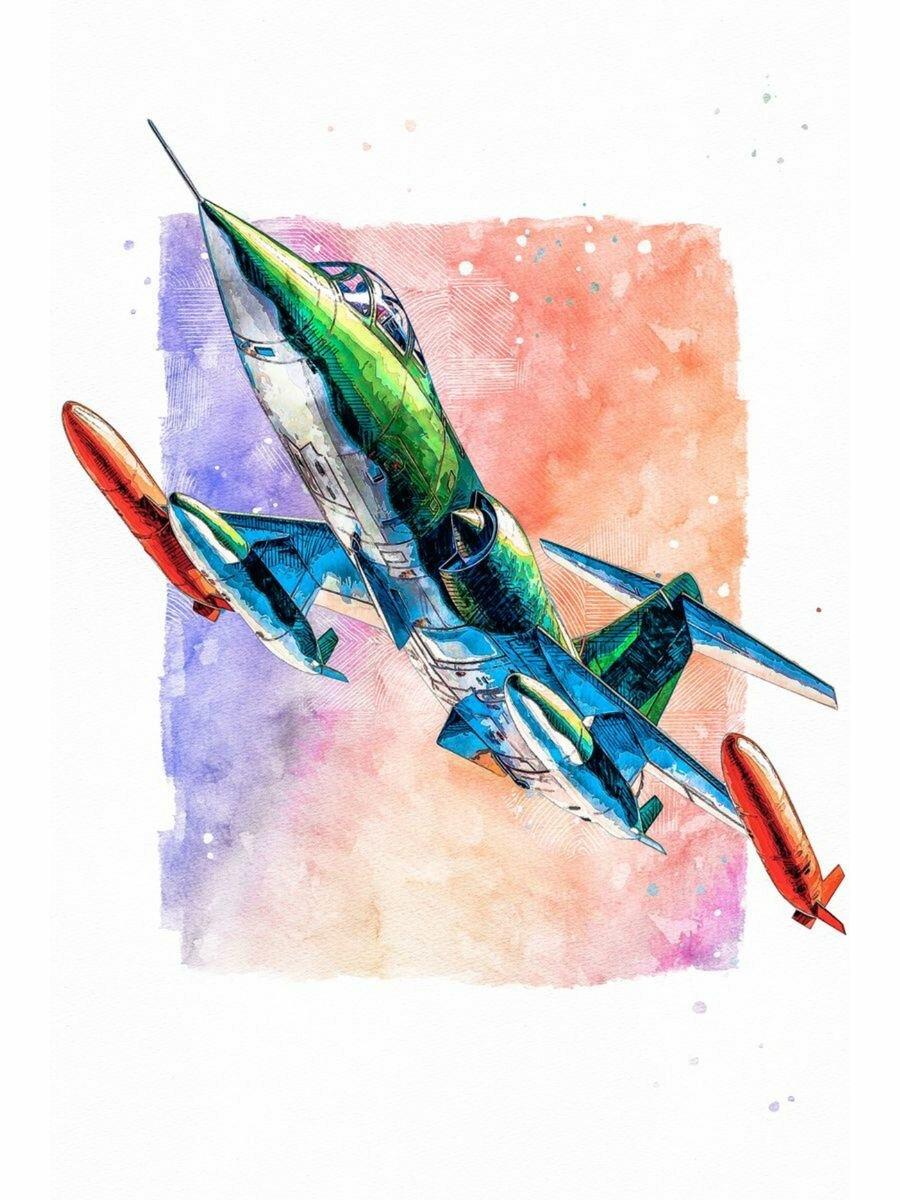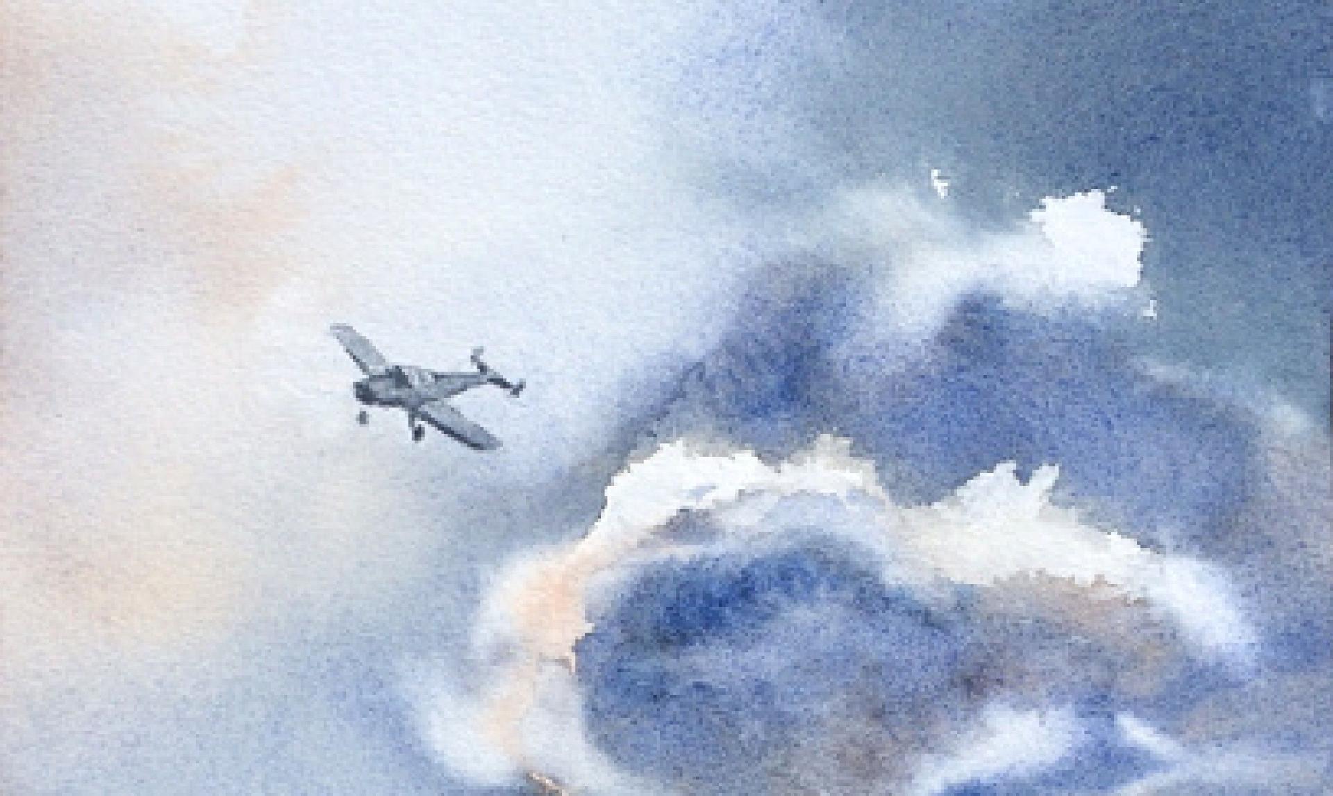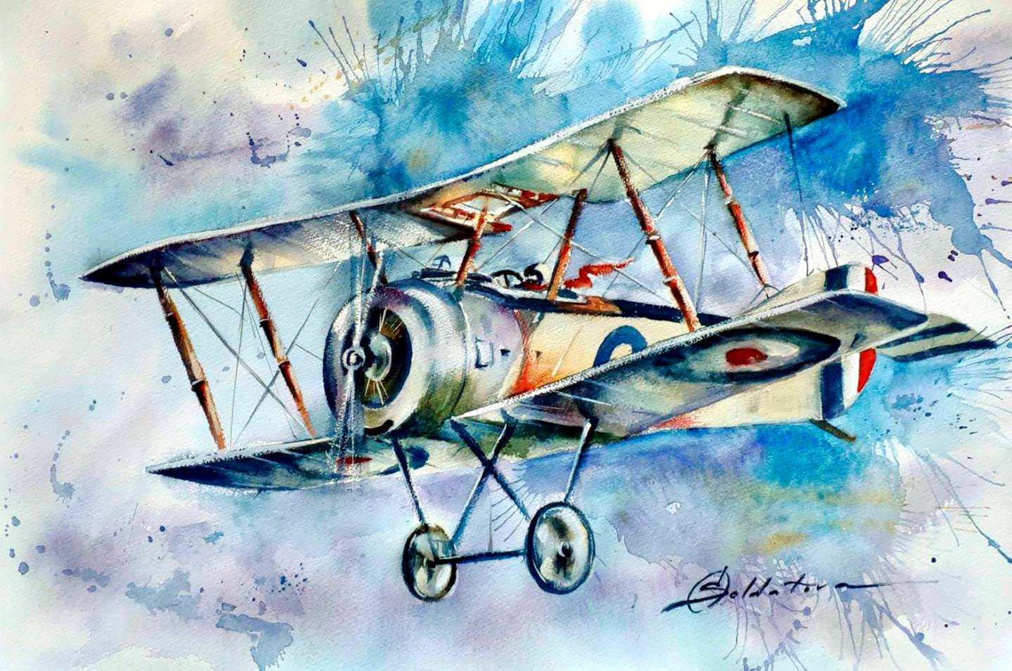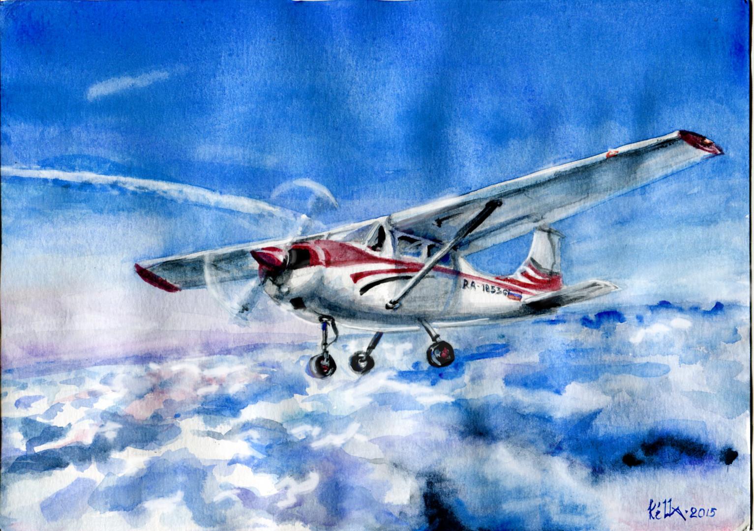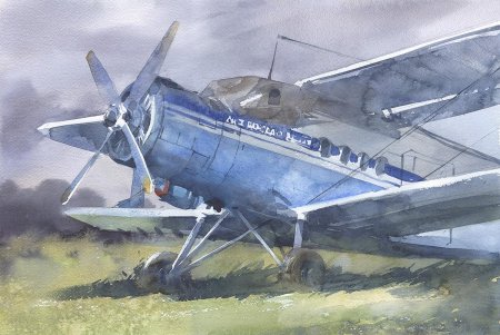 Самолет акварель