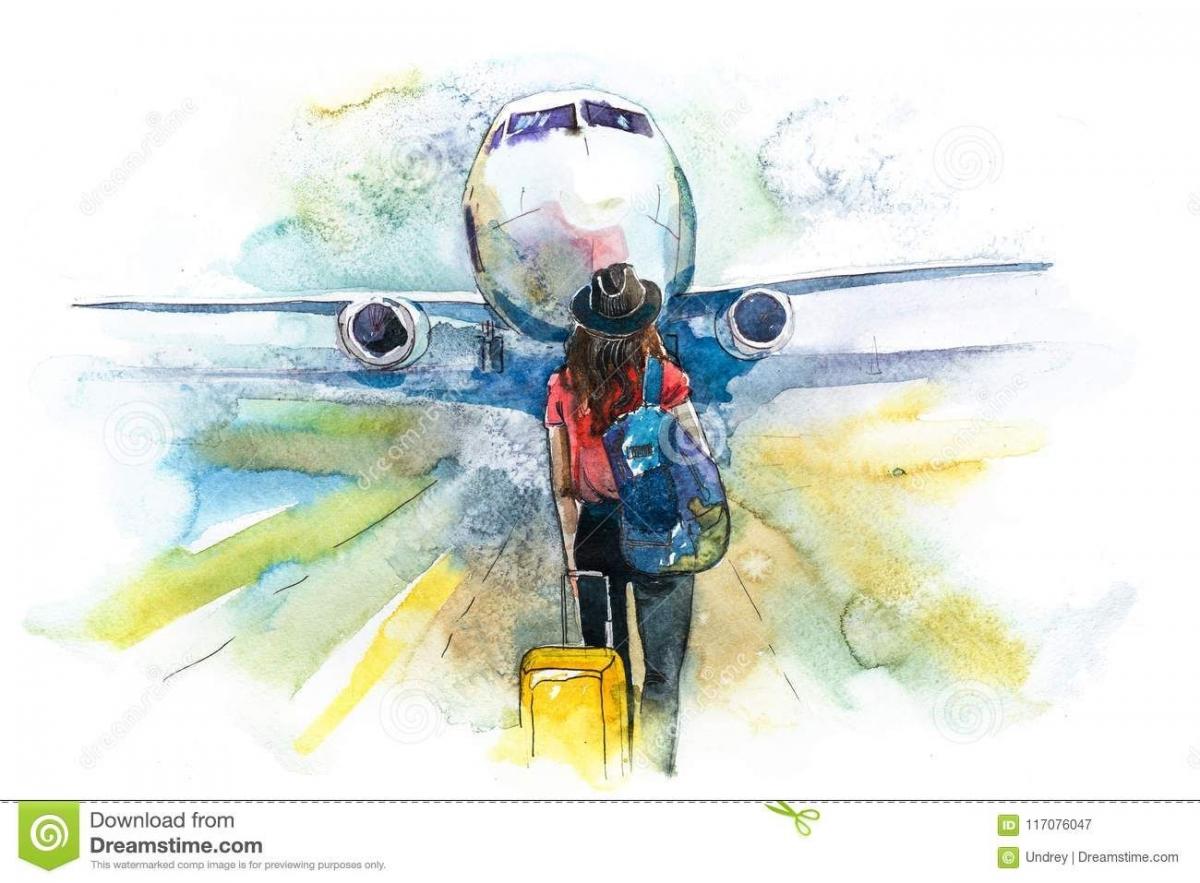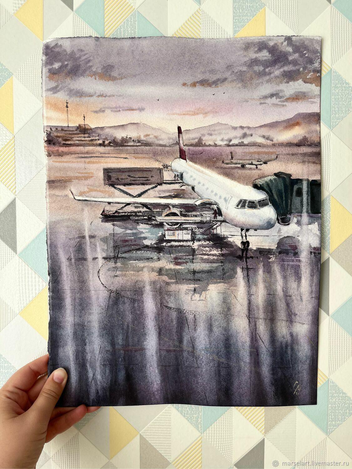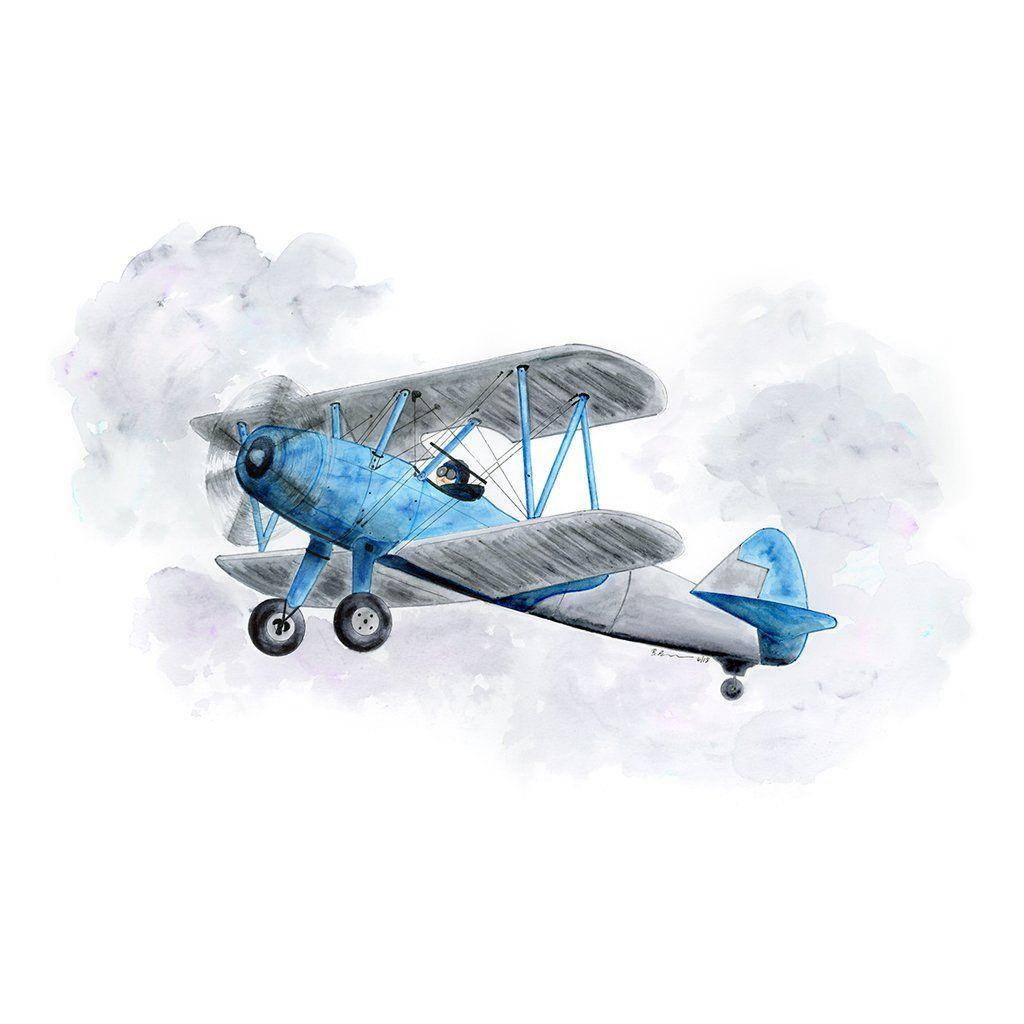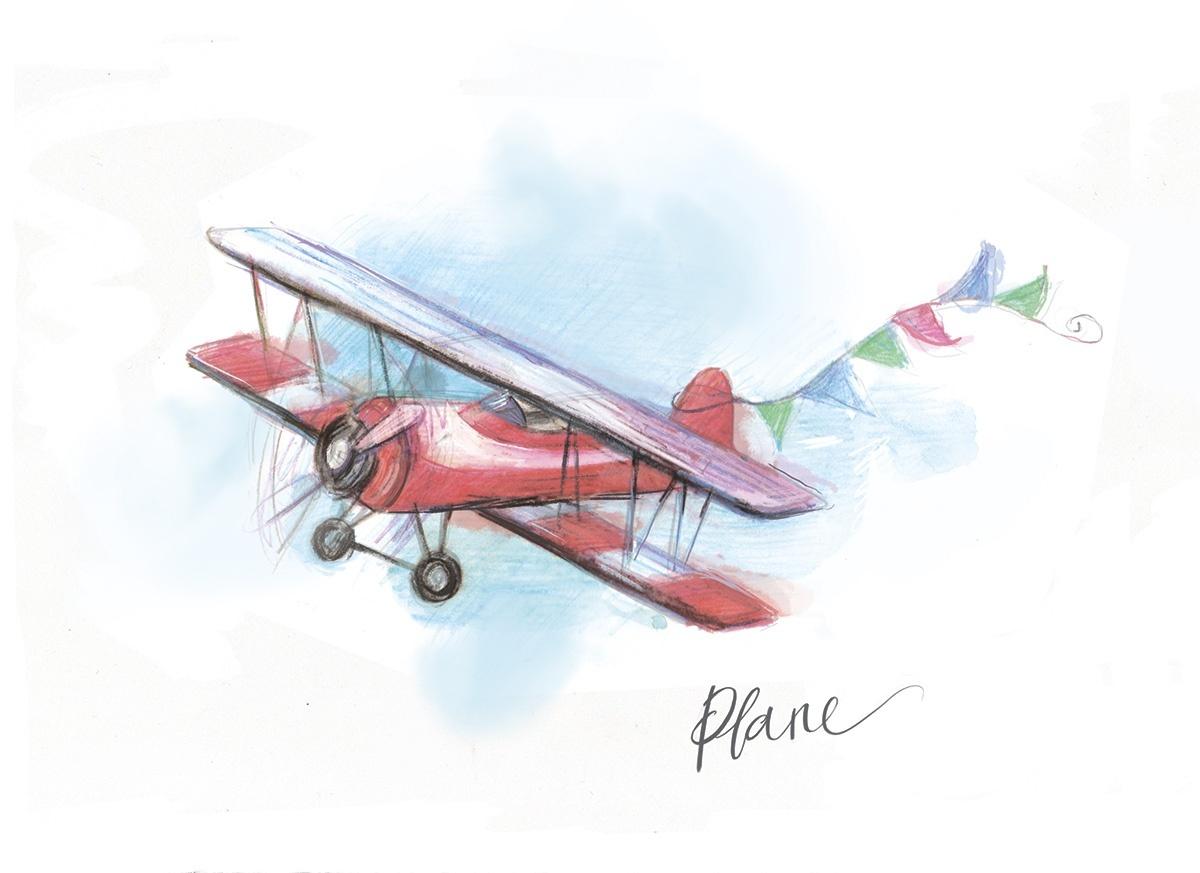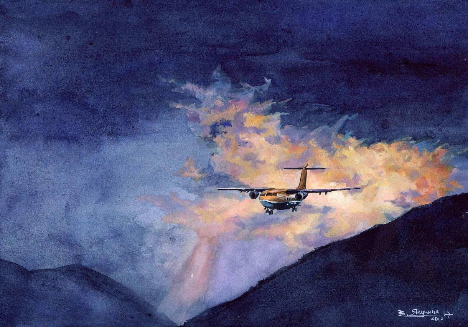 Самолет акварель