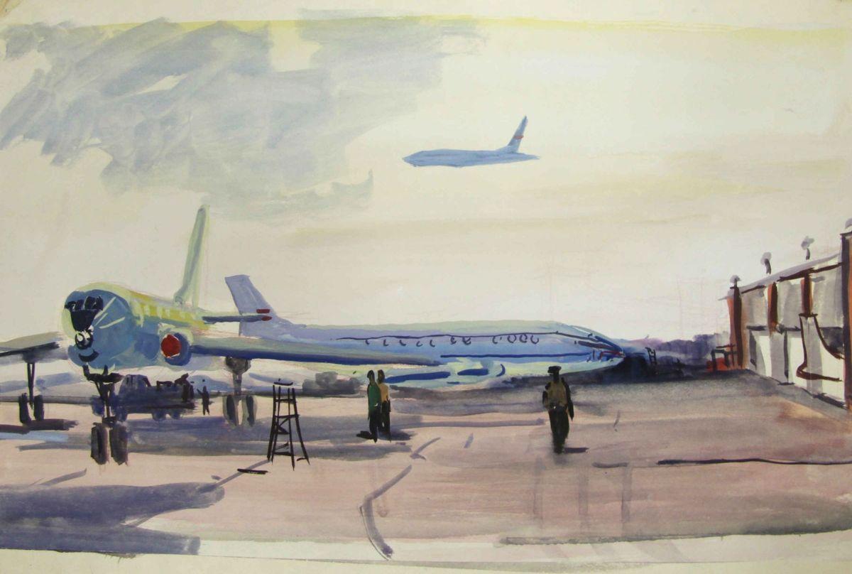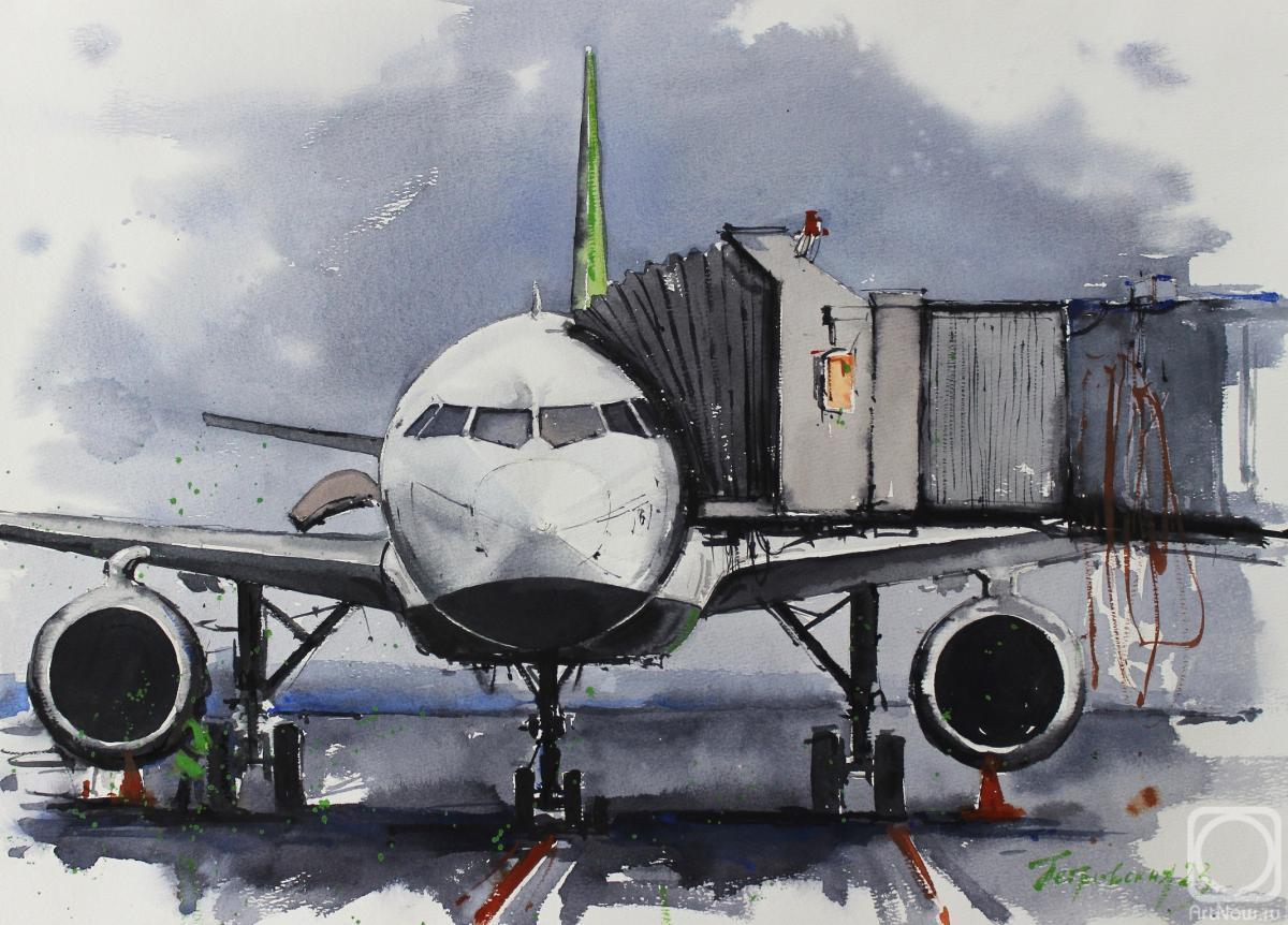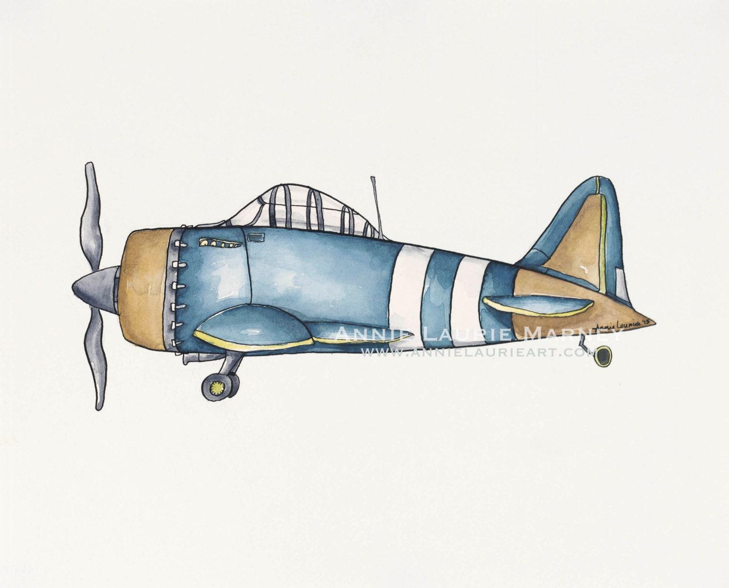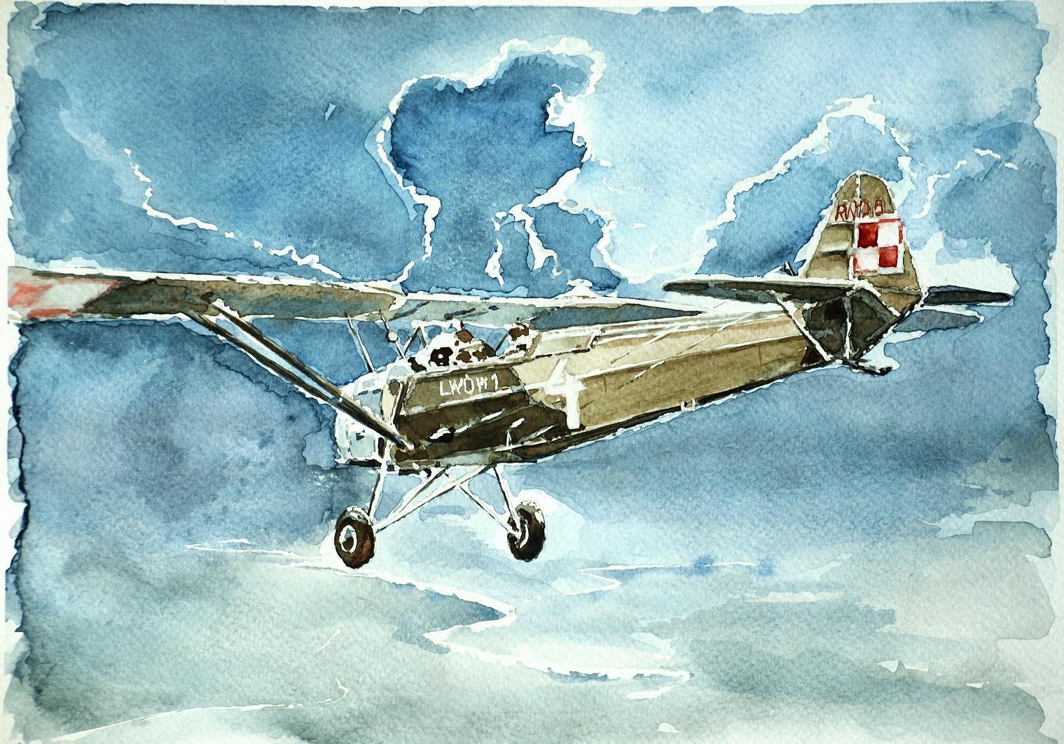 Самолет акварель
