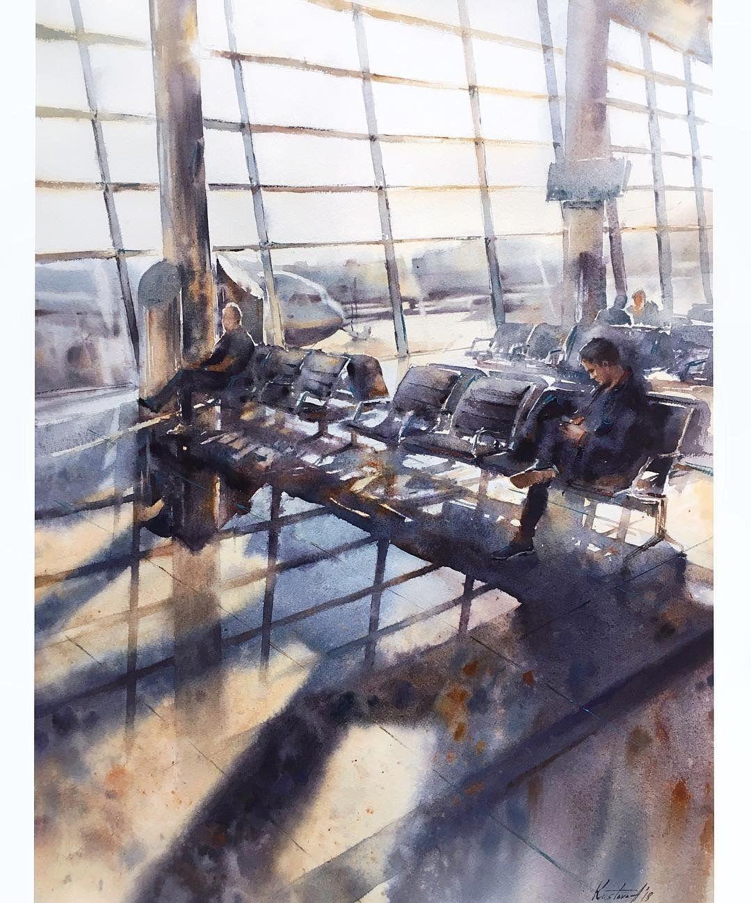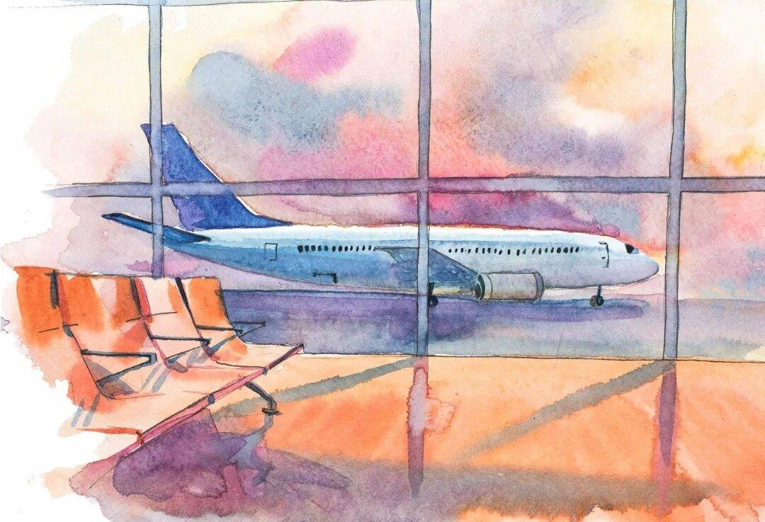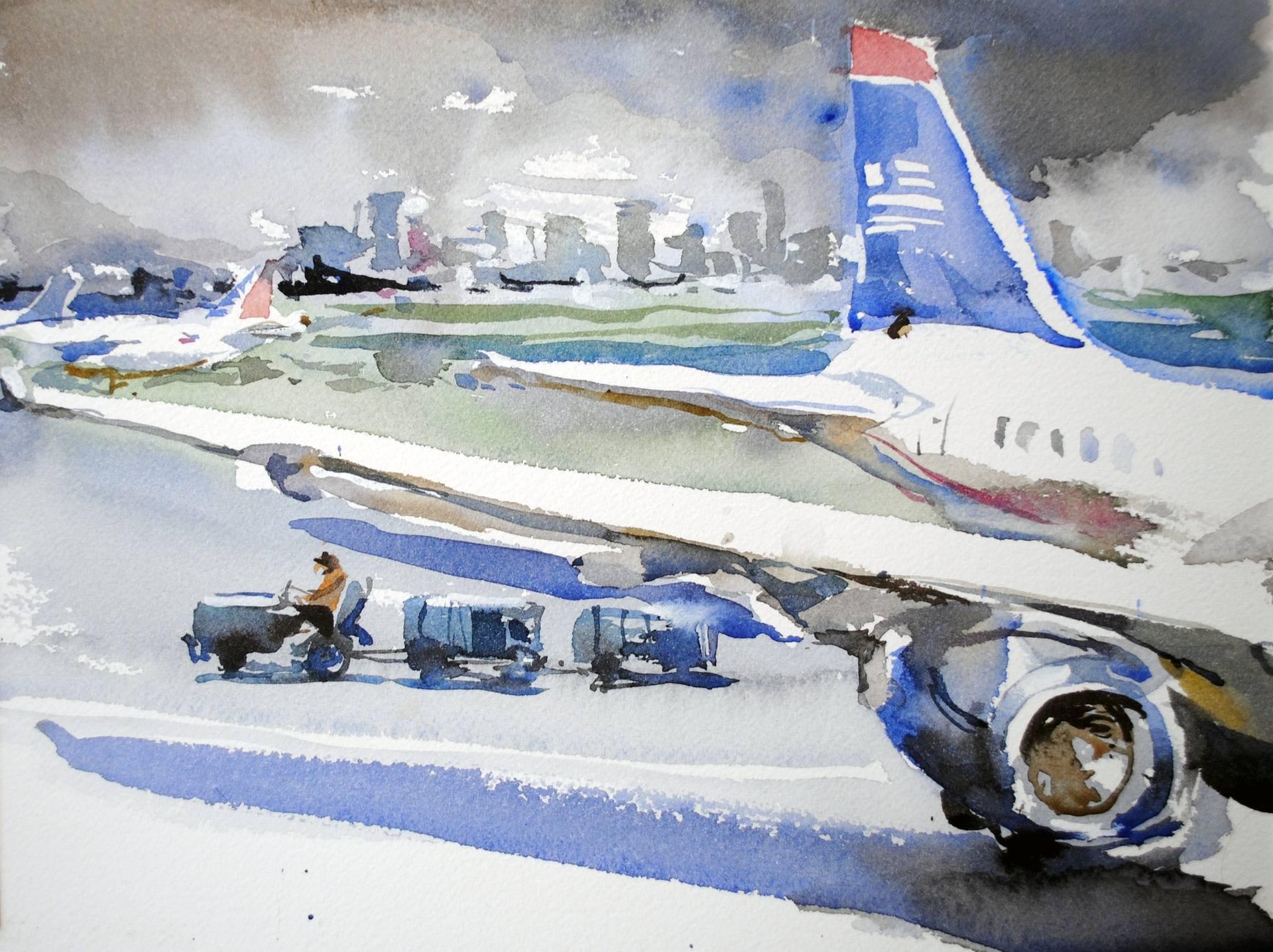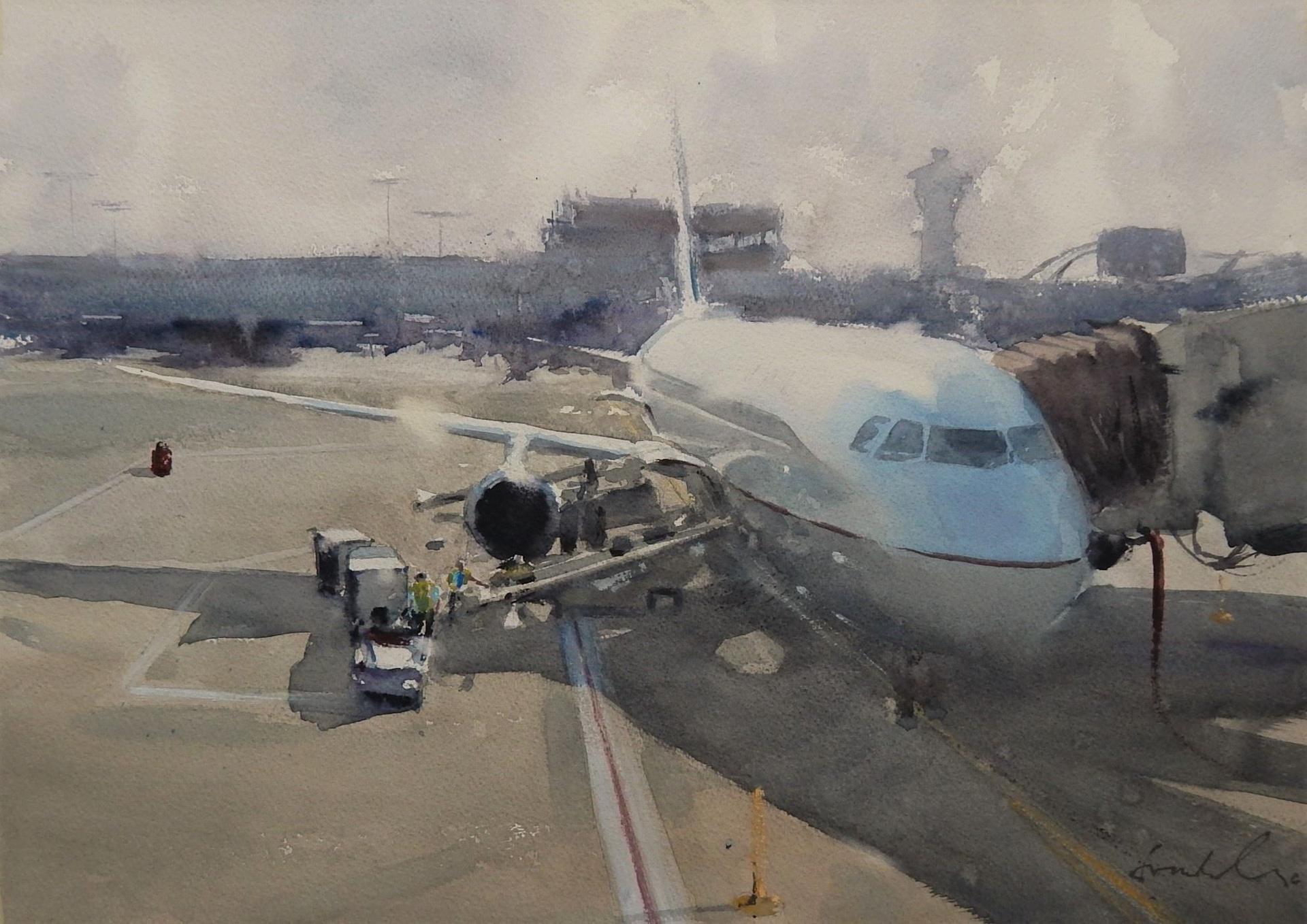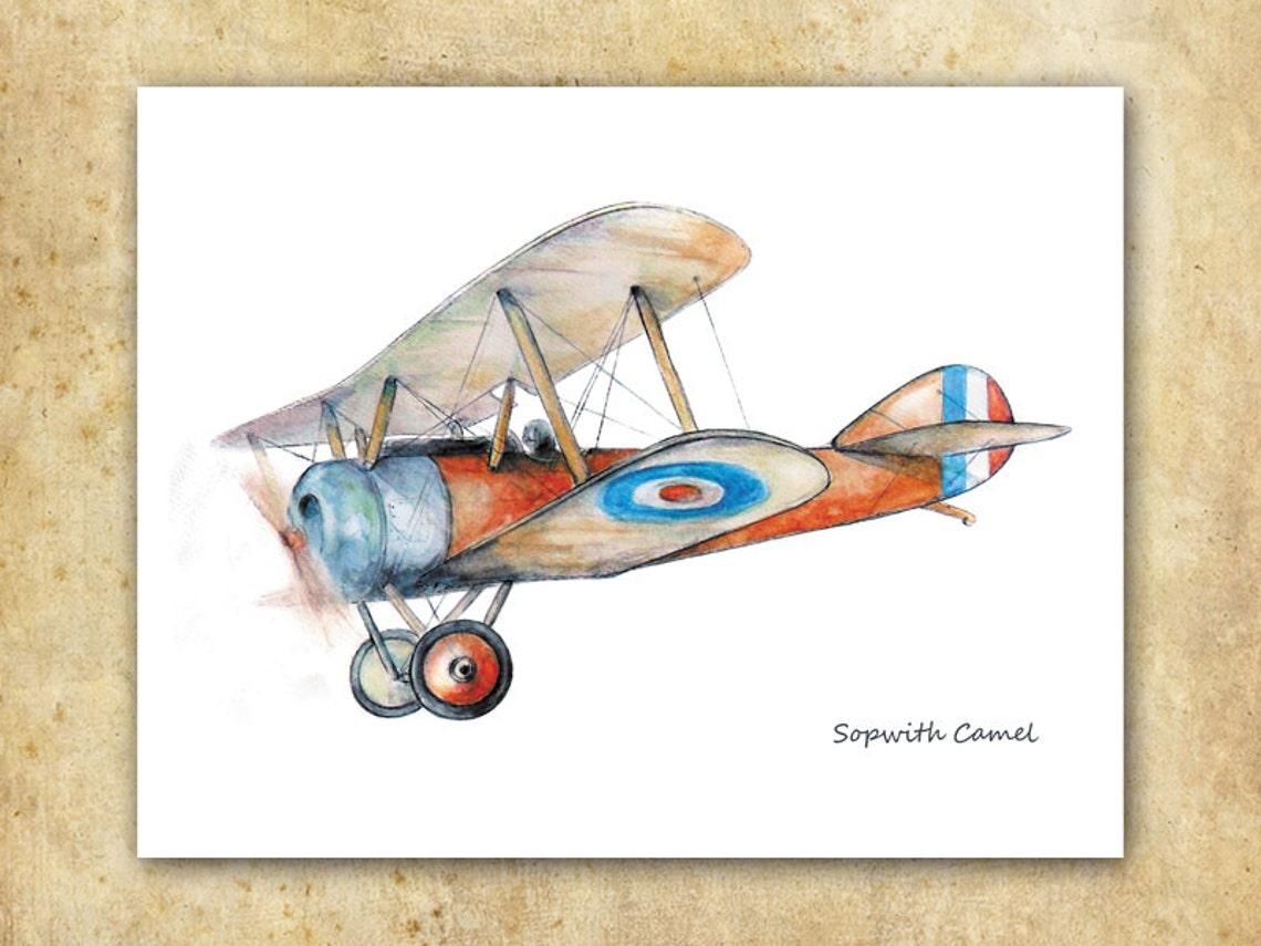 Самолет акварель