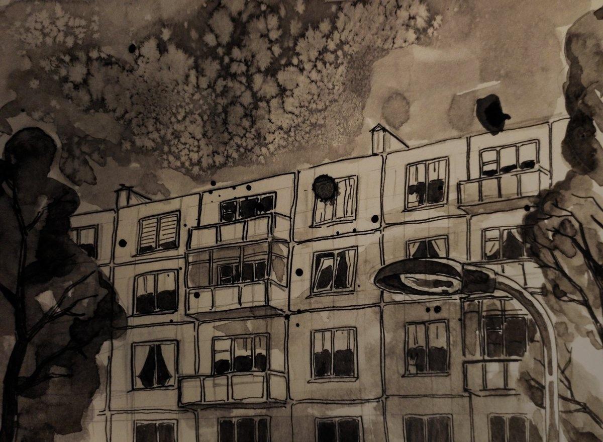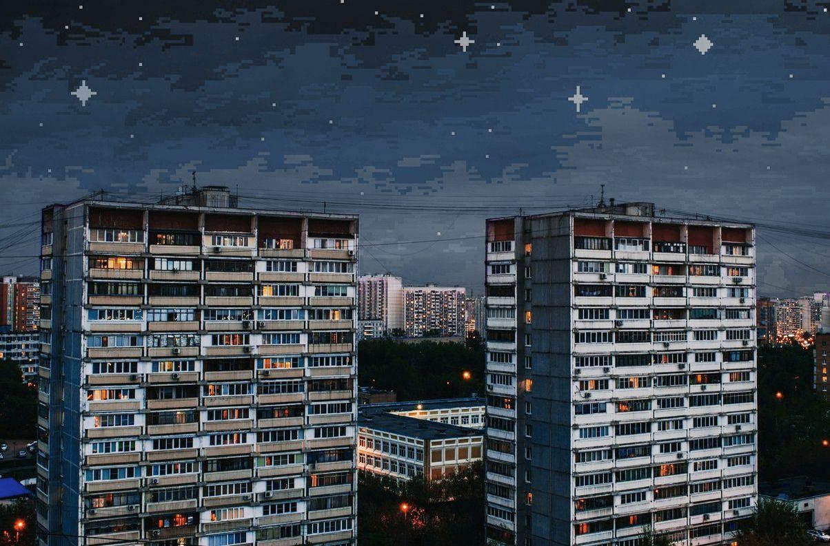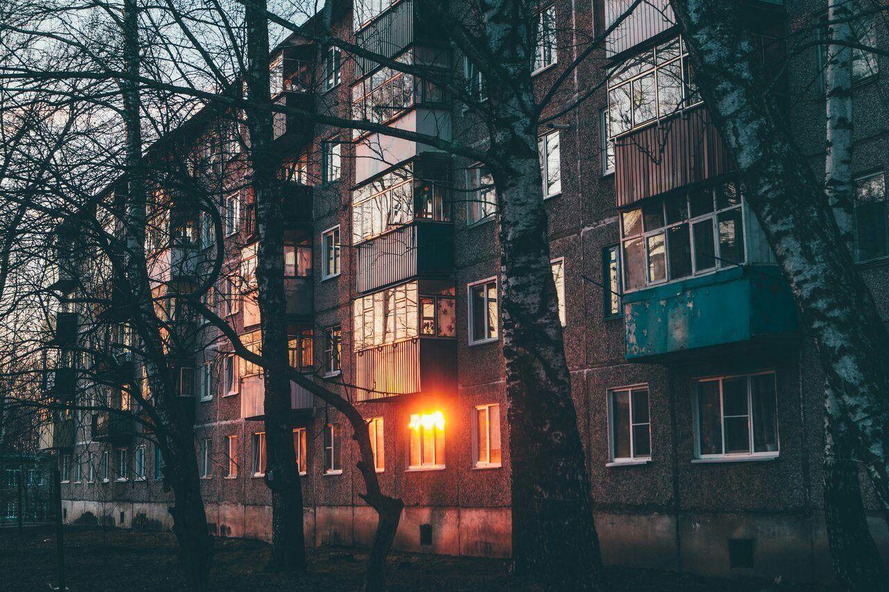 Бетонные воспоминания: когда панелька становится домом мечты Хрущевка Мурманск Темные многоэтажки Многоэтажный дом ночью Мрачные многоэтажки Дома хрущевки Арты