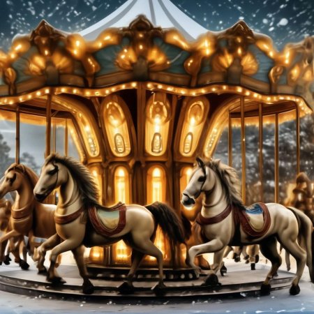 Праздничный аттракцион оживает на этих волшебных иллюстрациях зимней карусели. Художник запечатлел деревянных лошадок в снежном пейзаже с гирляндами и атмосферой праздника. Каждая картинка передает атмосферу детской радости и зимнего волшебства. Особое внимание уделено деталям: снег, огни, движения лошадок. Арты показывают карусель в различных состояниях - от дня до ночи. Тематические элементы включают музыку, смех и атмосферу уюта. Эти изображения вызывают ностальгию и радость. Зрители отмечают красоту композиции. Коллекция демонстрирует разнообразие зимних сцен. Каждая иллюстрация рассказывает историю о детстве.