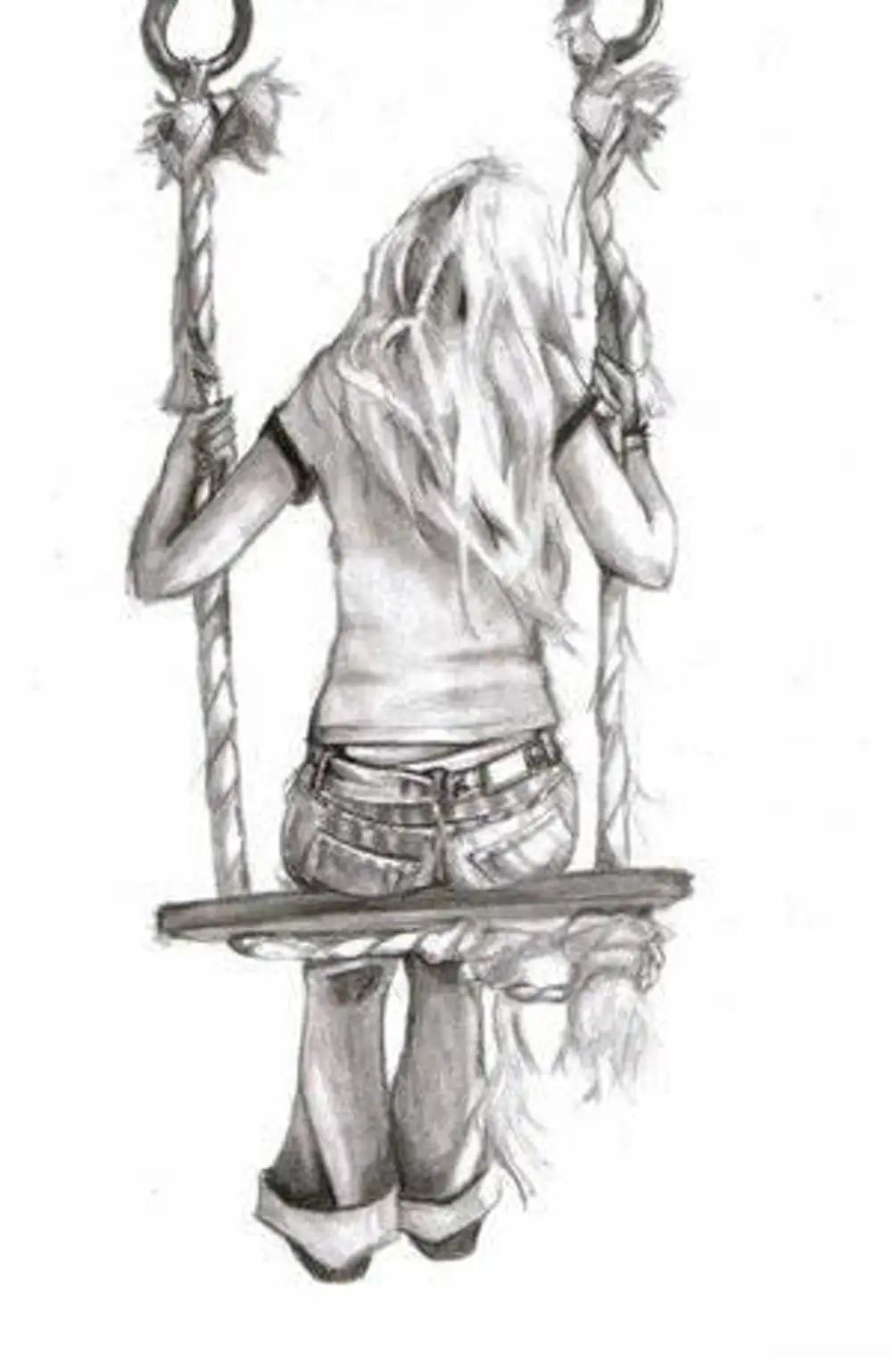 Воспоминания о счастье Девушка на качелях рисунок Дерево с качелями рисунок Качели рисунок Качели на площадке Арты