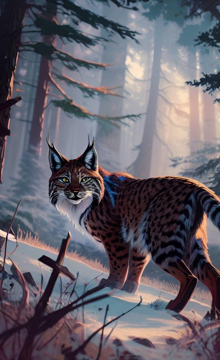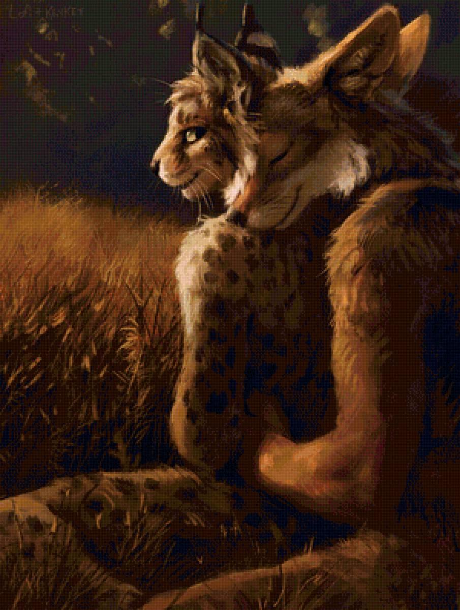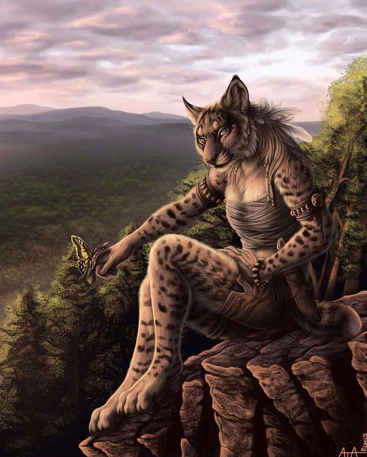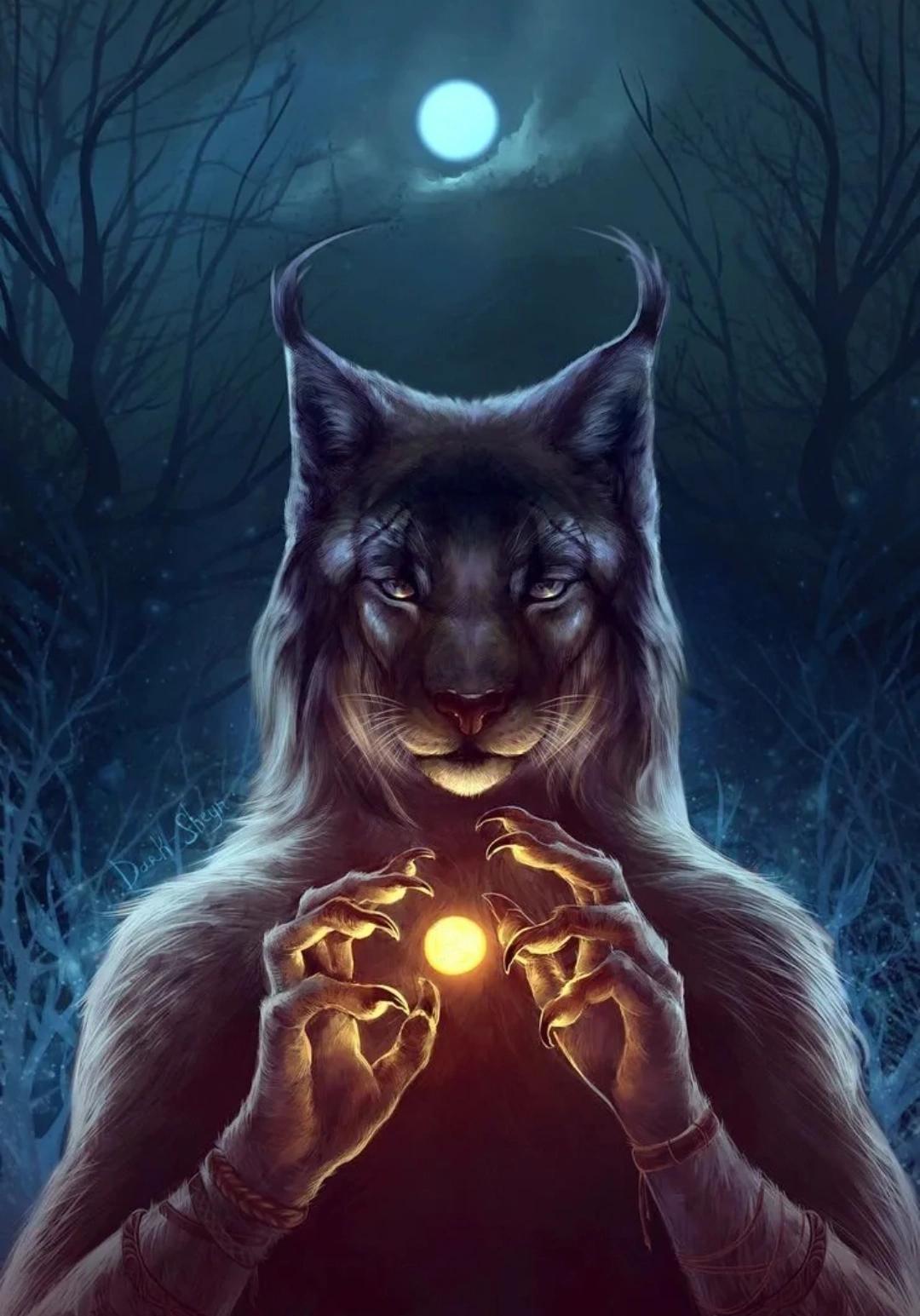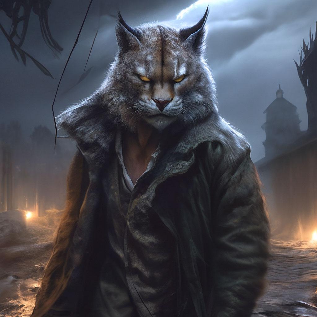 Оборотень-рысь - это мифическое существо, способное превращаться из человека в рысь и обратно. Арт-изображения таких персонажей часто показывают их в различных стадиях трансформации, от полностью человеческого облика до полностью звериного. Оборотни-рыси могут обладать уникальными способностями, такими как острое зрение, ловкость и способность к скрытному передвижению. В фольклоре и литературе такие существа часто ассоциируются с дикостью, свободой и связью с природой. Фэнтези-арты могут изображать оборотней-рысей как благородных защитников леса или опасных хищников, в зависимости от сюжета. Такие персонажи часто используются в играх, книгах и фильмах для создания атмосферы мистики и приключений. Оборотни-рыси могут быть как одиночками, так и членами племен или кланов, объединенных общими традициями и законами.