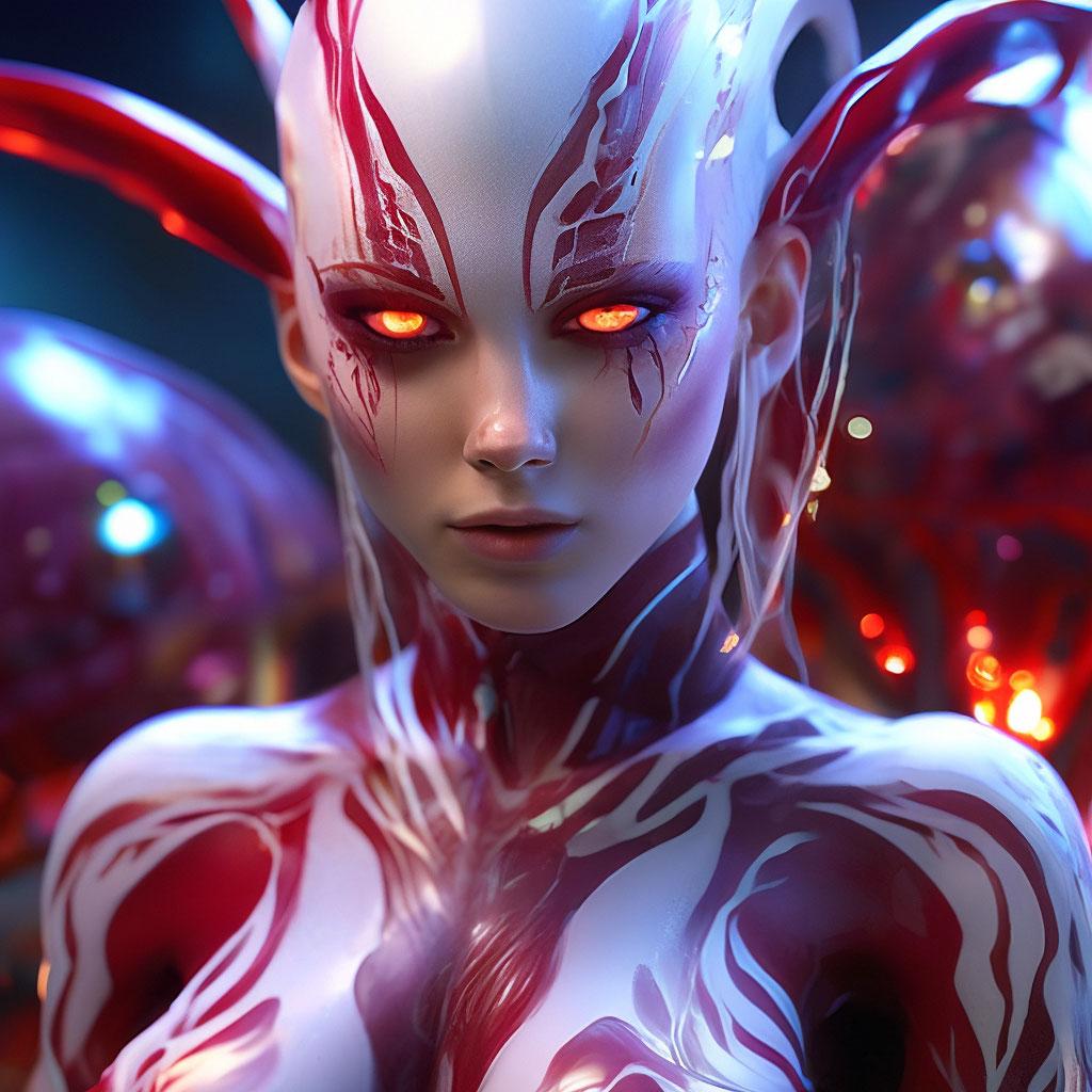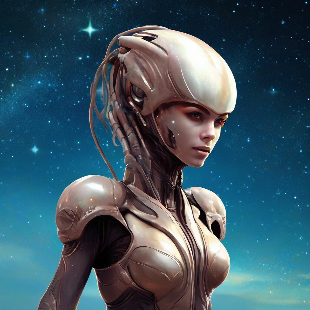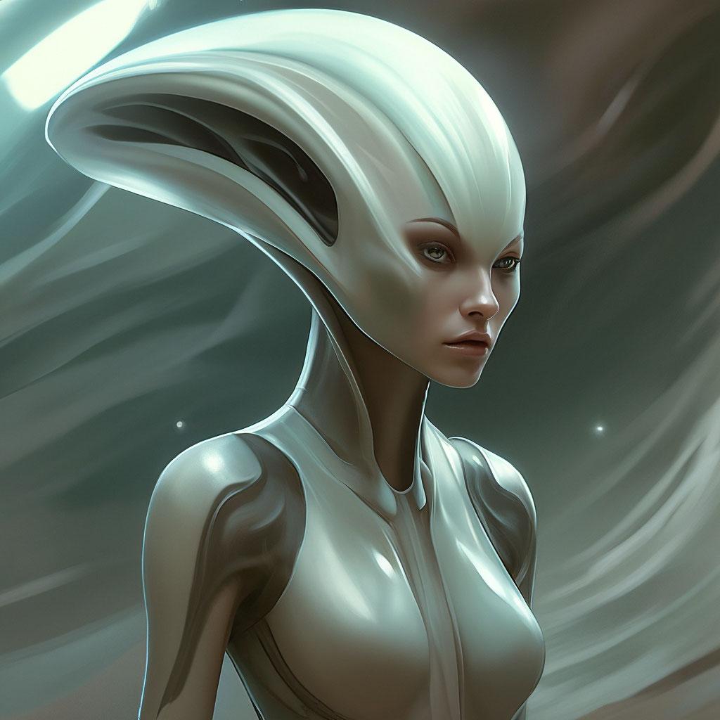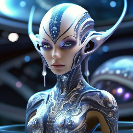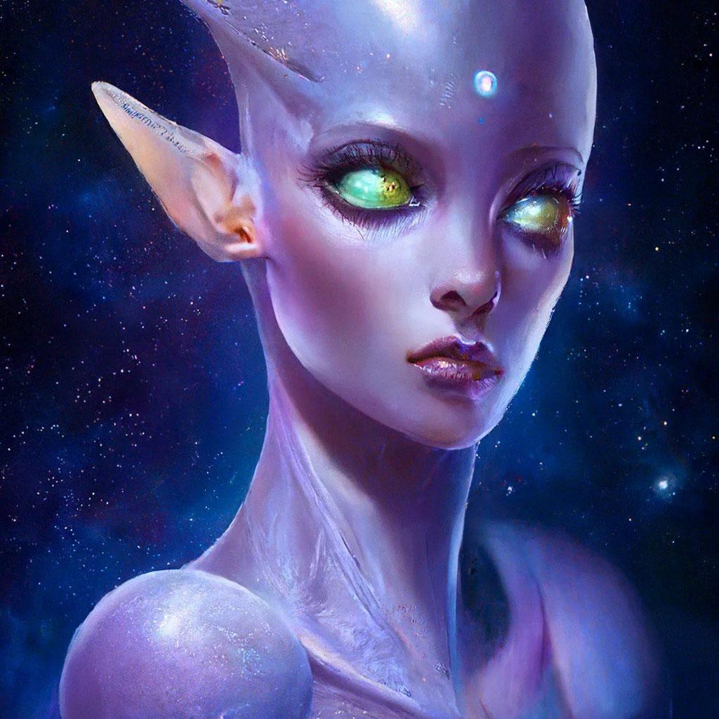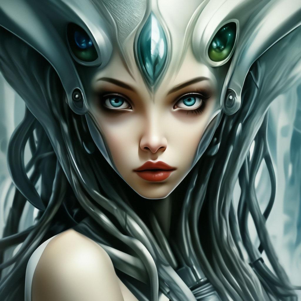 Инопланетные женщины предстают как воплощение разнообразия форм жизни во вселенной в иллюстрациях. Художник создает уникальные образы с нечеловеческими чертами - кристаллической кожей, энергетическими органами, адаптированными к разным планетарным условиям. Каждая работа исследует темы адаптации, эволюции и межзвездной коммуникации через призму женственности. В изображениях присутствуют футуристические элементы - нейронные импланты, биолюминесцентные органы, технологические артефакты, отражающие слияние органики и технологий. Инопланетные красавицы становятся метафорами бесконечного разнообразия форм жизни. Эти иллюстрации вдохновляют на размышления о будущем человечества и возможных формах разумной жизни в космосе.
