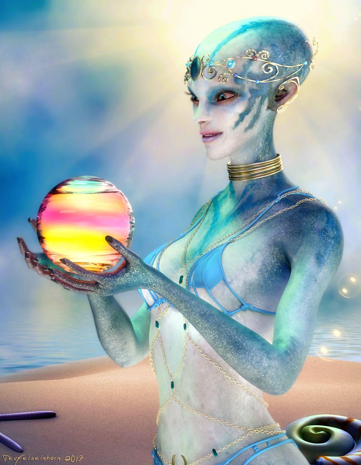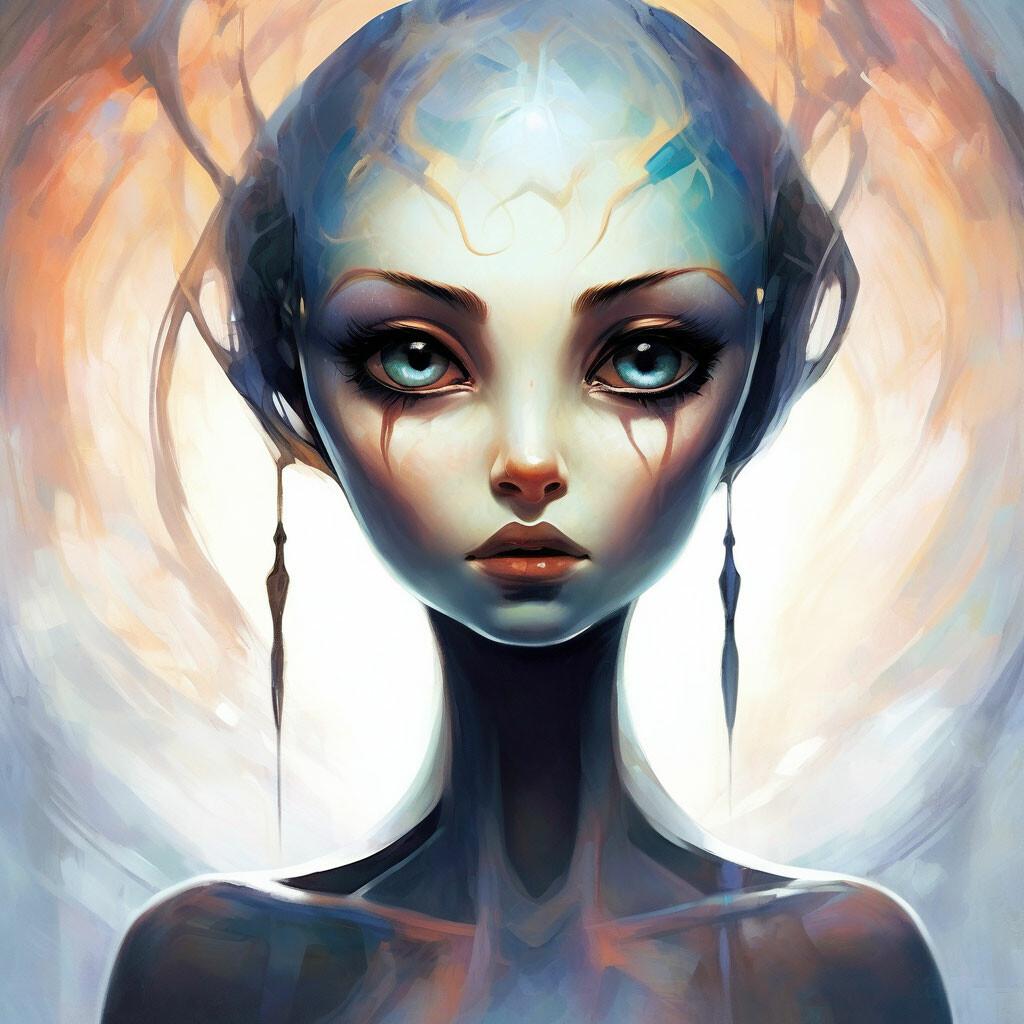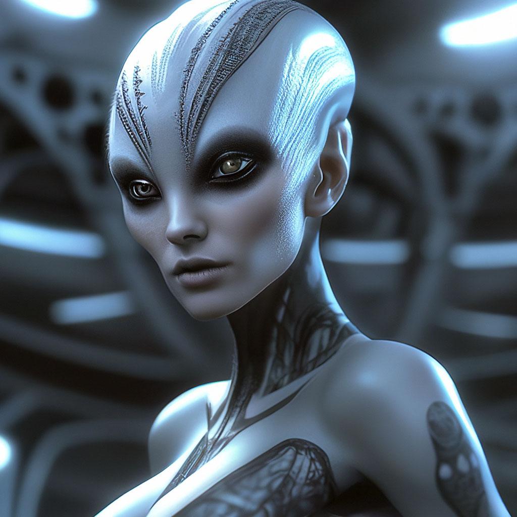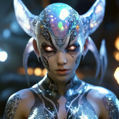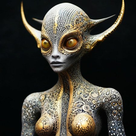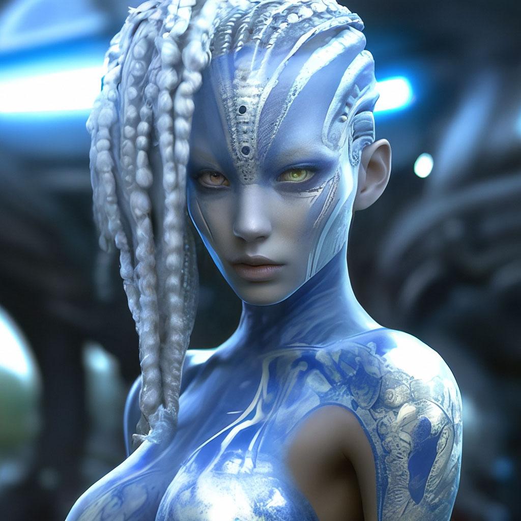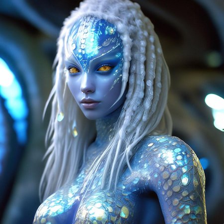 Инопланетные женщины предстают как воплощение разнообразия форм жизни во вселенной в иллюстрациях. Художник создает уникальные образы с нечеловеческими чертами - кристаллической кожей, энергетическими органами, адаптированными к разным планетарным условиям. Каждая работа исследует темы адаптации, эволюции и межзвездной коммуникации через призму женственности. В изображениях присутствуют футуристические элементы - нейронные импланты, биолюминесцентные органы, технологические артефакты, отражающие слияние органики и технологий. Инопланетные красавицы становятся метафорами бесконечного разнообразия форм жизни. Эти иллюстрации вдохновляют на размышления о будущем человечества и возможных формах разумной жизни в космосе.