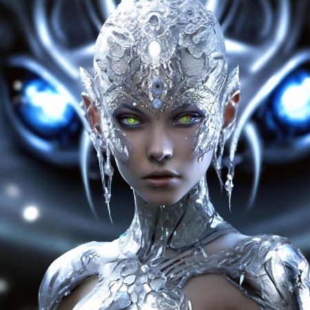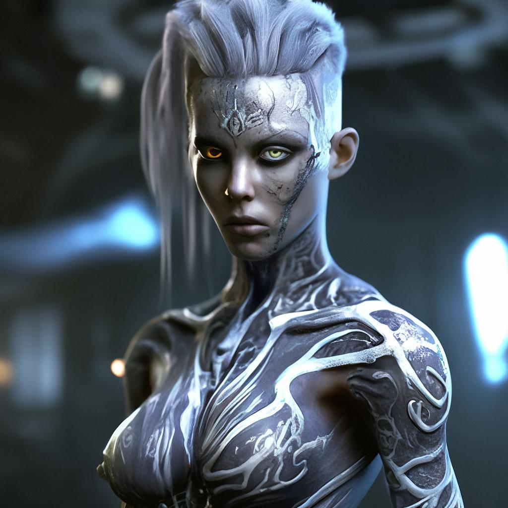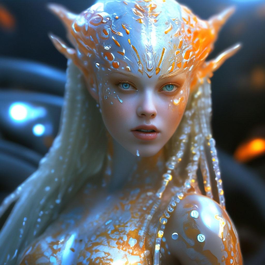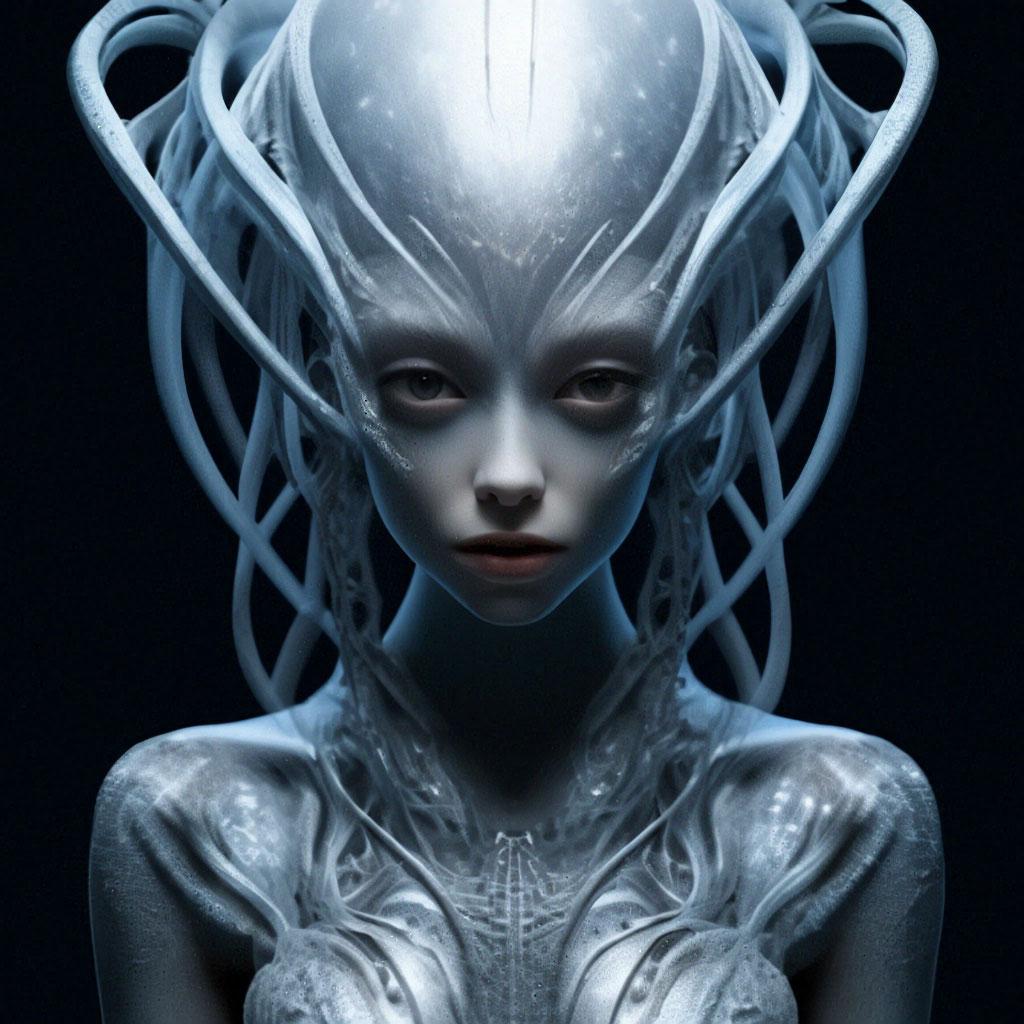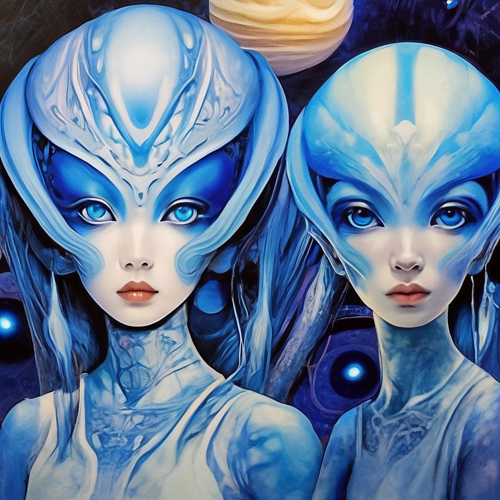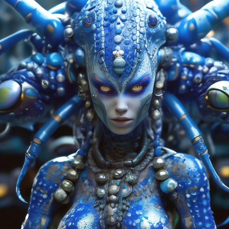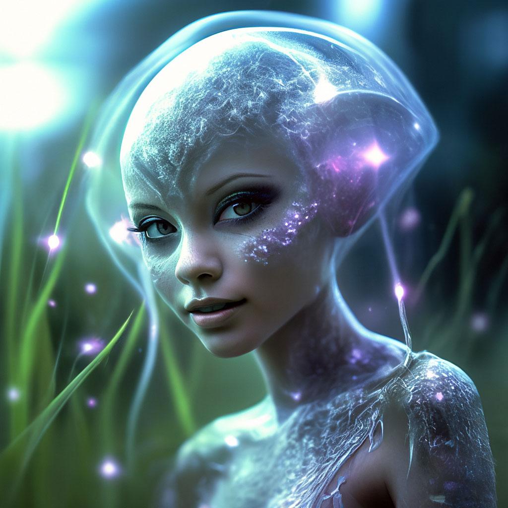 Инопланетные женщины предстают как воплощение разнообразия форм жизни во вселенной в иллюстрациях. Художник создает уникальные образы с нечеловеческими чертами - кристаллической кожей, энергетическими органами, адаптированными к разным планетарным условиям. Каждая работа исследует темы адаптации, эволюции и межзвездной коммуникации через призму женственности. В изображениях присутствуют футуристические элементы - нейронные импланты, биолюминесцентные органы, технологические артефакты, отражающие слияние органики и технологий. Инопланетные красавицы становятся метафорами бесконечного разнообразия форм жизни. Эти иллюстрации вдохновляют на размышления о будущем человечества и возможных формах разумной жизни в космосе.