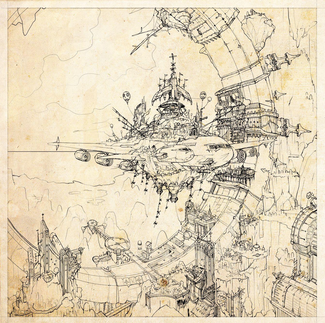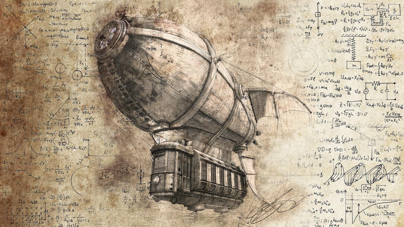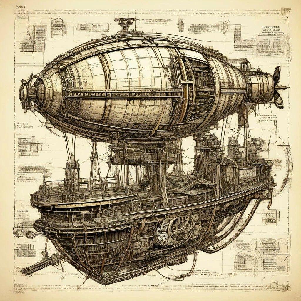 Геометрия точности в мире механизмов Дирижабль стимпанк Стимпанк Леонардо да Винчи Стимпанк Леонардо да Винчи Паттерн шестеренки Инженерные чертежи Арты