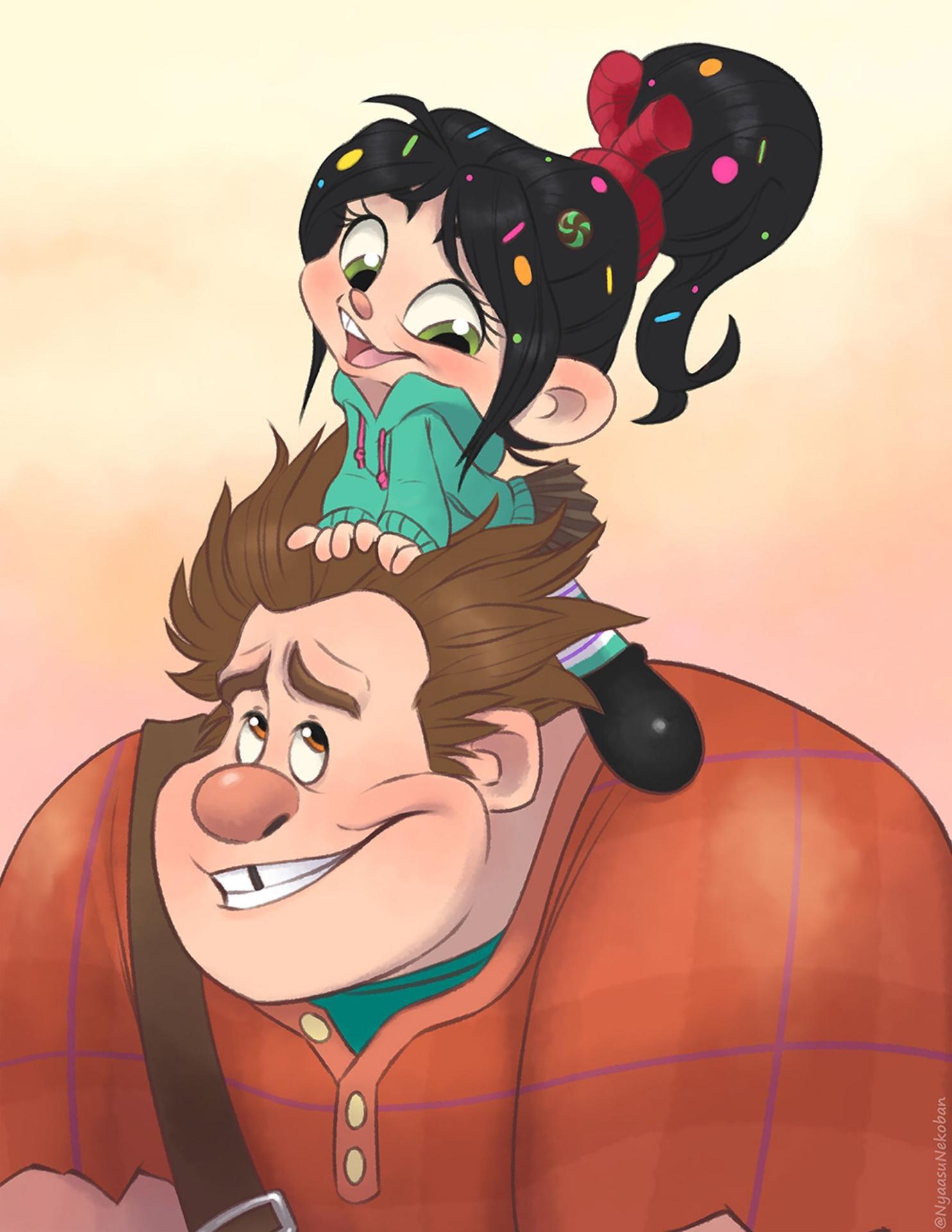 Ральф и принцесса Ванилопа предстают в иллюстрациях как неразлучная команда героев из мира видеоигр. Художники мастерски передают контраст между грубоватым Ральфом - большим и неуклюжим, но добрым гигантом - и миниатюрной, но смелой Ванилопой с ее сладостным обликом. Каждая композиция рассказывает о их совместных приключениях - от разрушения игровых уровней до спасения друзей из беды. Детальная проработка текстур - от грубой кожи Ральфа до глянцевой поверхности сладостей Ванилопы - создает ощущение живых персонажей. Особое внимание уделяется эмоциям - от комичных ситуаций до трогательных моментов дружбы. Эти иллюстрации особенно ценны для поклонников мультфильмов и любителей компьютерных игр, предлагая веселое погружение в мир цифровых приключений.