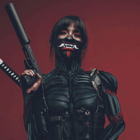 Киберпанковский самурай предстает в иллюстрациях как гармоничный синтез древней чести бусидо и передовых технологий будущего. Художники мастерски сочетают традиционные элементы - кимоно, катану и топ-кнот - с современными имплантами и неоновыми акцентами. Маска становится центральным элементом композиции, скрывая лицо воина и подчеркивая его загадочность. Детальная проработка материалов - от шелка традиционных одежд до светящихся элементов кибернетических улучшений - создает уникальный контраст. Каждый самурай имеет свою историю - от корпоративных наемников до мятежников, борющихся с системой. Эти иллюстрации особенно привлекают поклонников японской культуры и любителей жанра киберпанк, предлагая свежий взгляд на вечные темы чести и технологии.