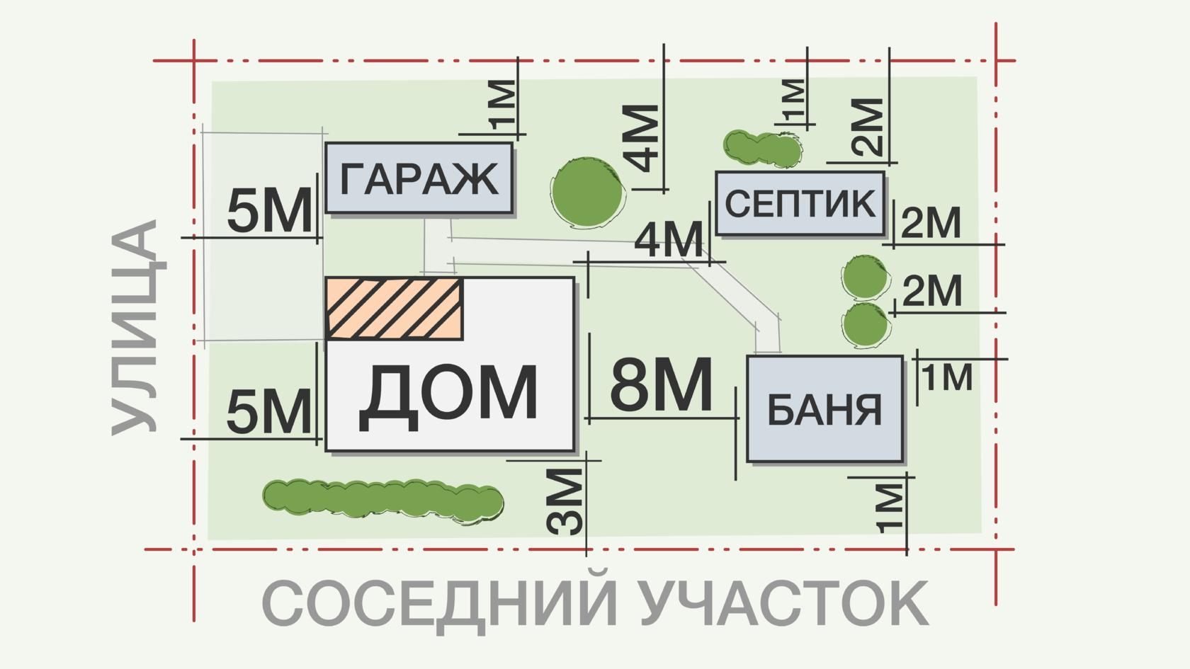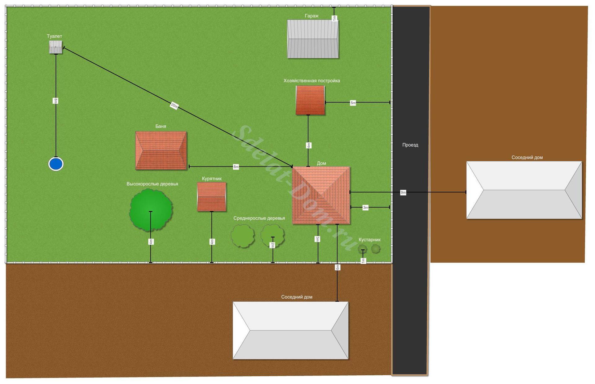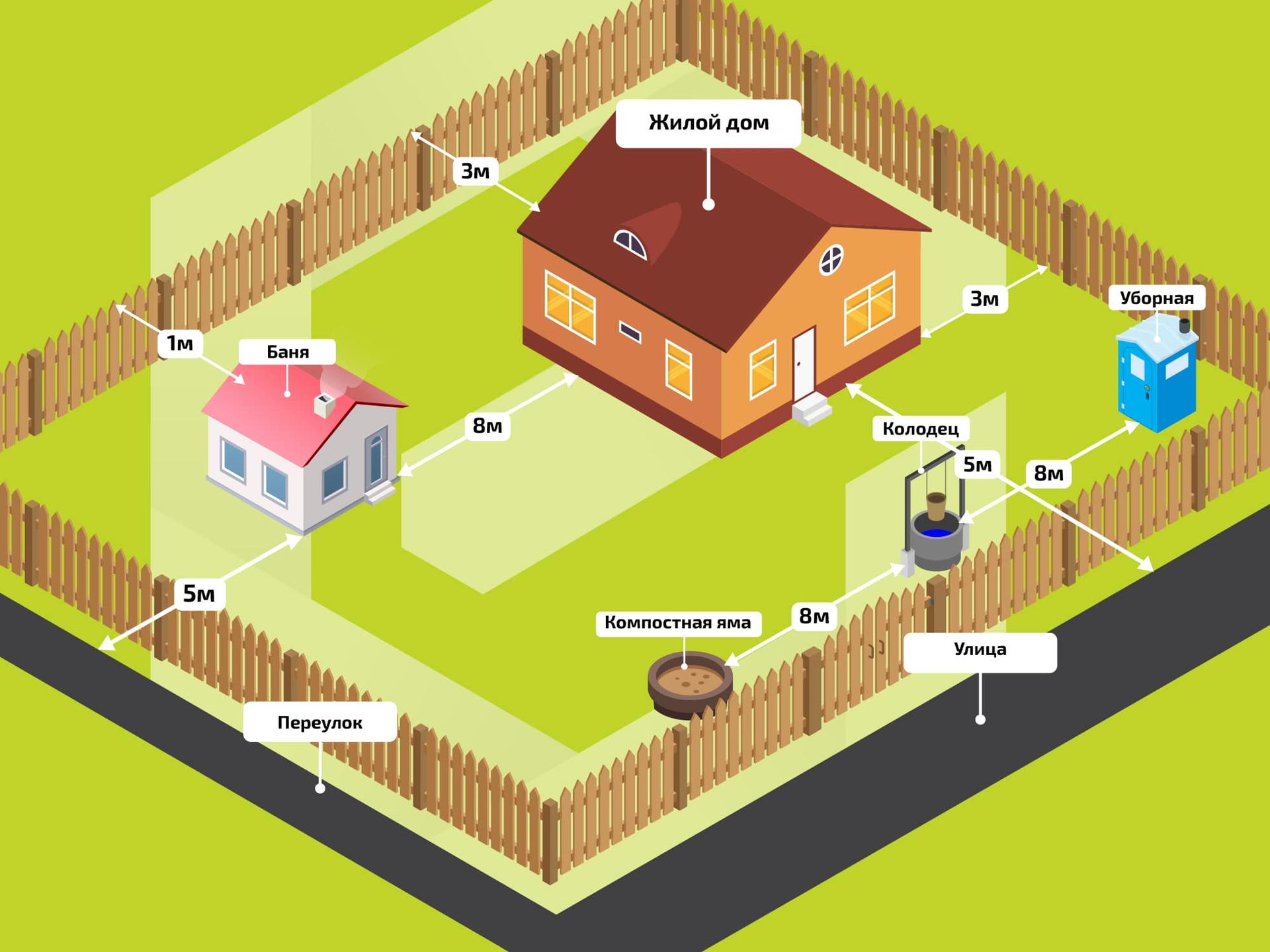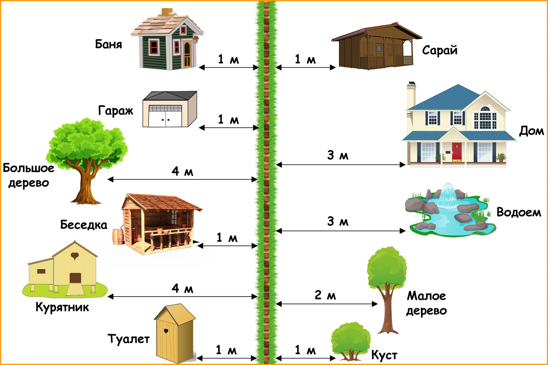 Расположение построек на участке нормы