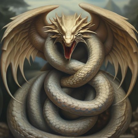 Змей-дракон предстает в иллюстрациях как синтез двух мощных архетипов - извивающейся грации змеи и разрушительной силы дракона. Художники черпают вдохновение из восточной мифологии, где такие существа символизируют мудрость, силу и трансформацию. Детальная проработка чешуи, создающая иллюзию переливающегося металла, и мощные крылья, способные вызвать ураган, делают каждую работу уникальной. Змей-дракон часто изображается в различных контекстах - от спокойного созерцания в горных пещерах до яростных битв с небесными силами. Текстура кожи тщательно прорабатывается, от гладких чешуек до грубой, потрескавшейся поверхности. Эти иллюстрации особенно ценны для изучения мифологии и символизма, предлагая зрителю глубокое понимание культурных традиций Востока.