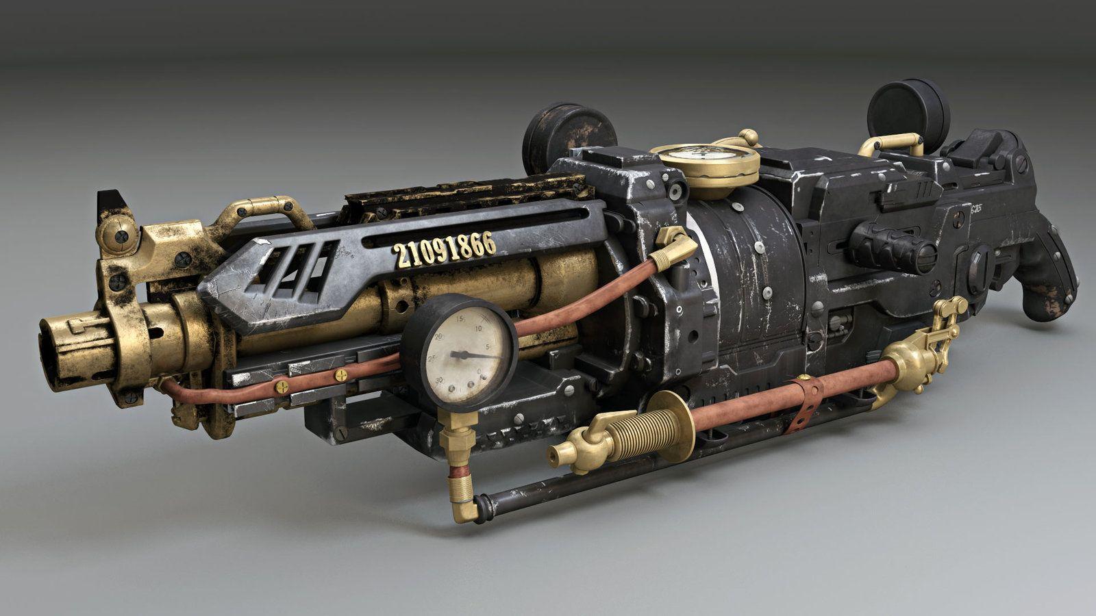 Пар и сталь: симфония викторианской инженерии Дизельпанк меч Стимпанк + дизельпанк оружие Стимпанк пулемет Гатлинга Арты