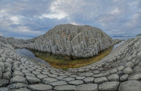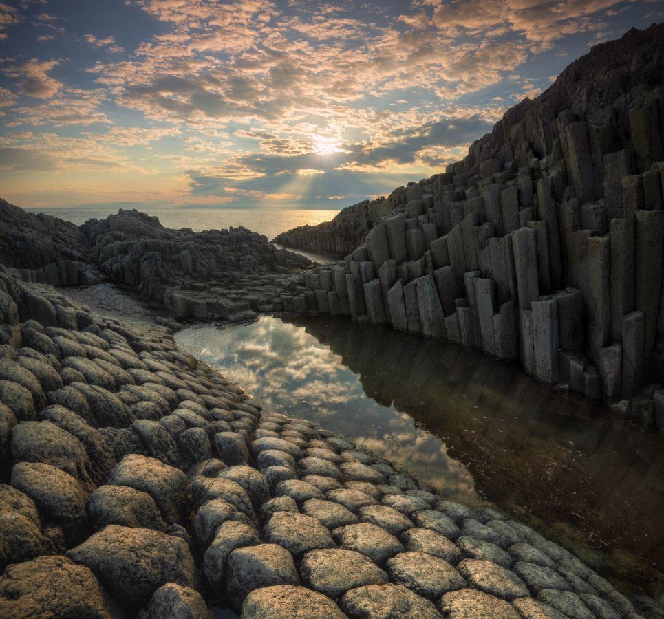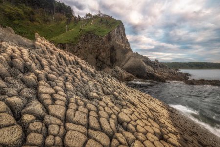 Мыс Столбчатый на острове Кунашир представляет собой уникальное геологическое чудо - отвесные базальтовые колонны, образовавшиеся при застывании лавы древнего вулкана. В этих впечатляющих фотографиях запечатлены правильные шестигранные столбы, уходящие в океан и достигающие высоты до 50 метров. Художники передают мощь природы через драматические ракурсы - колонны на фоне бушующего моря, туманные силуэты на рассвете. Тематические композиции включают как общие виды мыса, так и детальные планы текстуры камня. Особое внимание уделяется геологическим аспектам - правильная форма колонн, трещины от эрозии, мох и лишайники на поверхности. Эти изображения рассказывают истории о вулканической активности Курил, о формировании ландшафтов и о силе природных процессов. Цветовая палитра отражает суровую красоту - темный базальт, белая пена волн, зеленые акценты растительности. Мыс Столбчатый становится символом величественной и непокоренной природы Дальнего Востока.