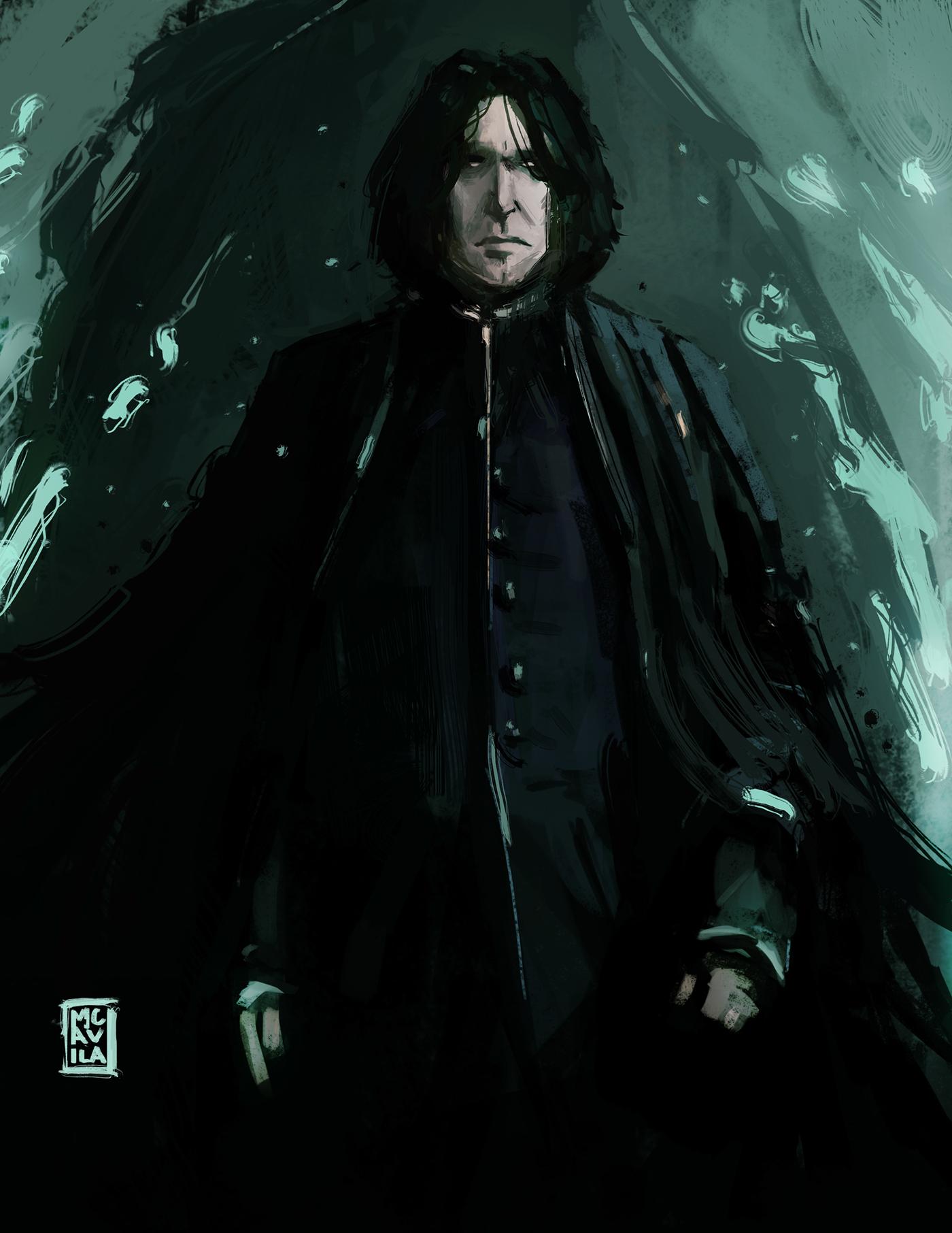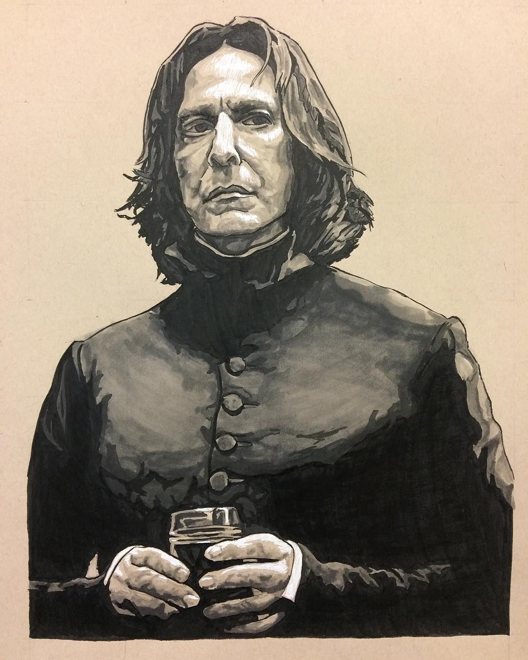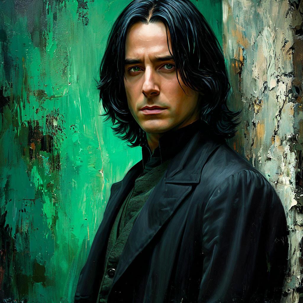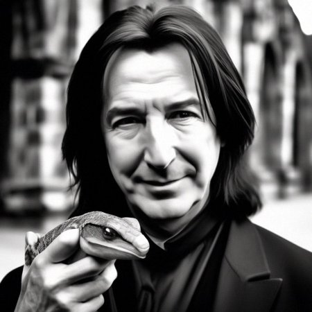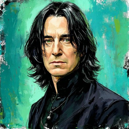 Алан Рикман в роли Северуса Снейпа создал один из самых запоминающихся образов в истории кино - сложного персонажа, сочетающего гениальность, преданность и глубокие внутренние конфликты. В этих фотографиях он предстает как мрачный профессор зельеварения с бледным лицом, пронизывающим взглядом и характерной копной черных волос. Художники акцентируют внимание на нюансах мимики - саркастическая улыбка, нахмуренные брови, глаза, скрывающие боль и мудрость. Тематические композиции включают сцены из фильмов: лекции в классе зельеварения, тайные встречи с Дамблдором, моменты разоблачения. Особое внимание уделяется деталям костюма - черная мантия профессора, серебряная брошь с символом Хогвартса, характерный нос. Эти изображения рассказывают историю о двойственной натуре, о жертвах во имя высшего блага и о том, что истинный героизм часто скрыт под маской антагониста. Цветовая палитра строится на темных тонах - черная мантия, бледная кожа, серебряные акценты. Снейп становится символом сложных персонажей, чьи мотивы раскрываются постепенно, напоминая зрителям о том, что первое впечатление может быть обманчивым.