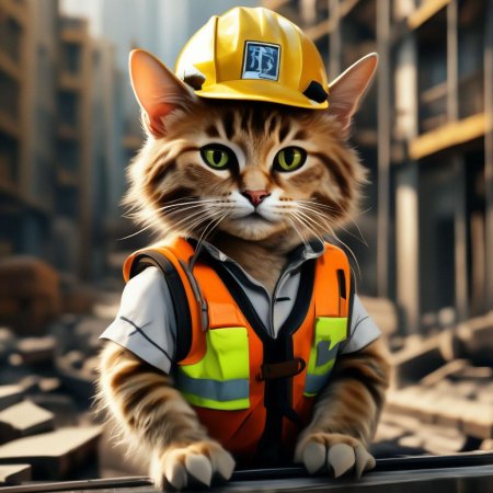Кот строитель представляет собой очаровательную антропоморфную концепцию, где обычный домашний питомец становится профессиональным строителем. В этих забавных иллюстрациях он предстает в каске и жилетке, с инструментами в лапах и серьезным выражением мордочки. Художники подчеркивают комичность ситуации - маленький котенок, пытающийся управлять огромным экскаватором, или усатик, измеряющий уровень с помощью хвоста. Тематические сюжеты включают повседневные строительные сцены: возведение небоскребов, ремонт квартир, работа на лесах. Особое внимание уделяется деталям экипировки - миниатюрная каска, крошечные перчатки, игрушечные инструменты в масштабе кота. Эти изображения рассказывают истории о настойчивости и трудолюбии, о преодолении препятствий и о том, что размер не имеет значения при наличии энтузиазма. Цветовая палитра яркая и позитивная - оранжевые жилетки безопасности, синие комбинезоны, желтые каски. Кот строитель становится символом того, что даже самые маленькие существа могут достичь великих целей через упорство и любовь к своему делу.