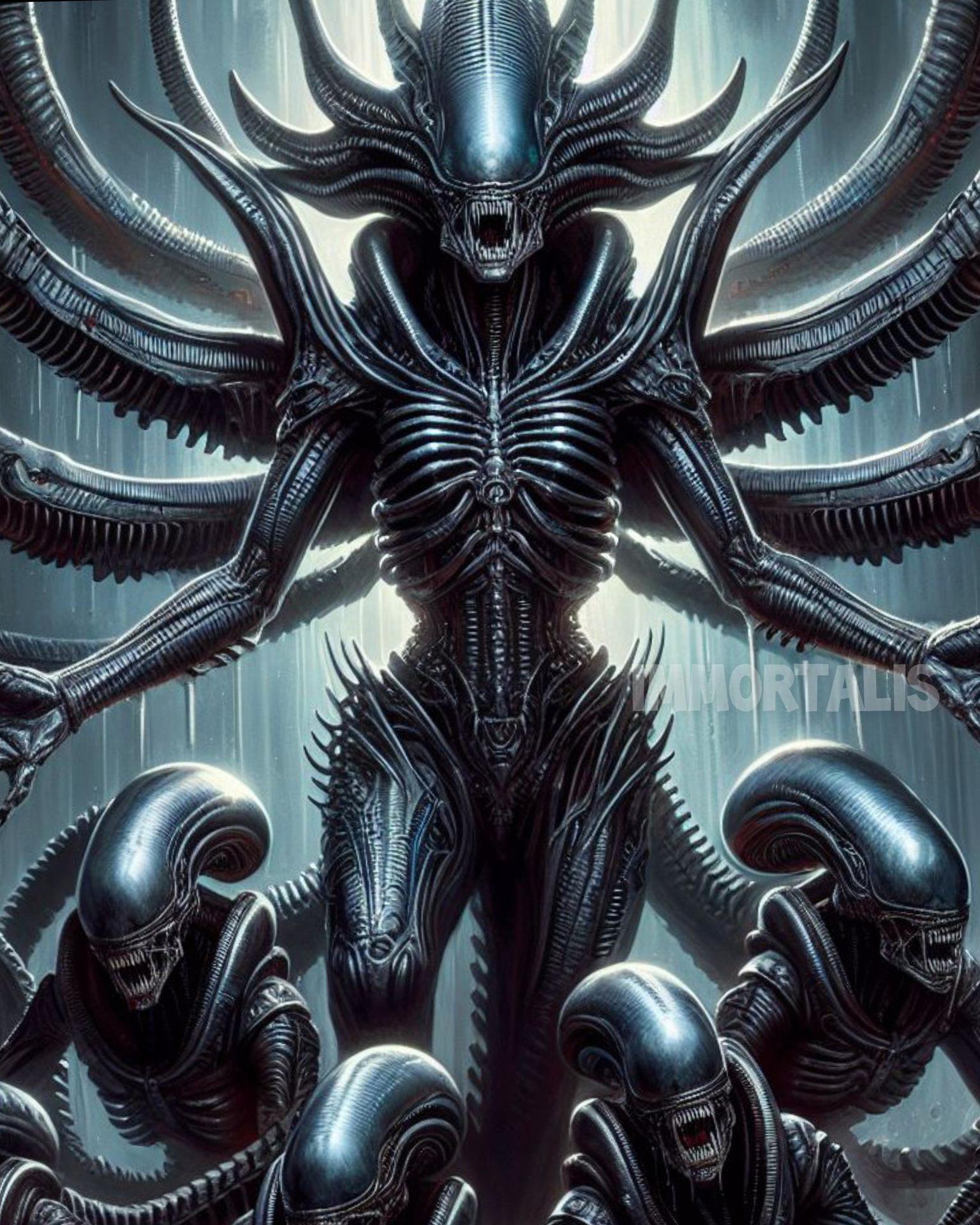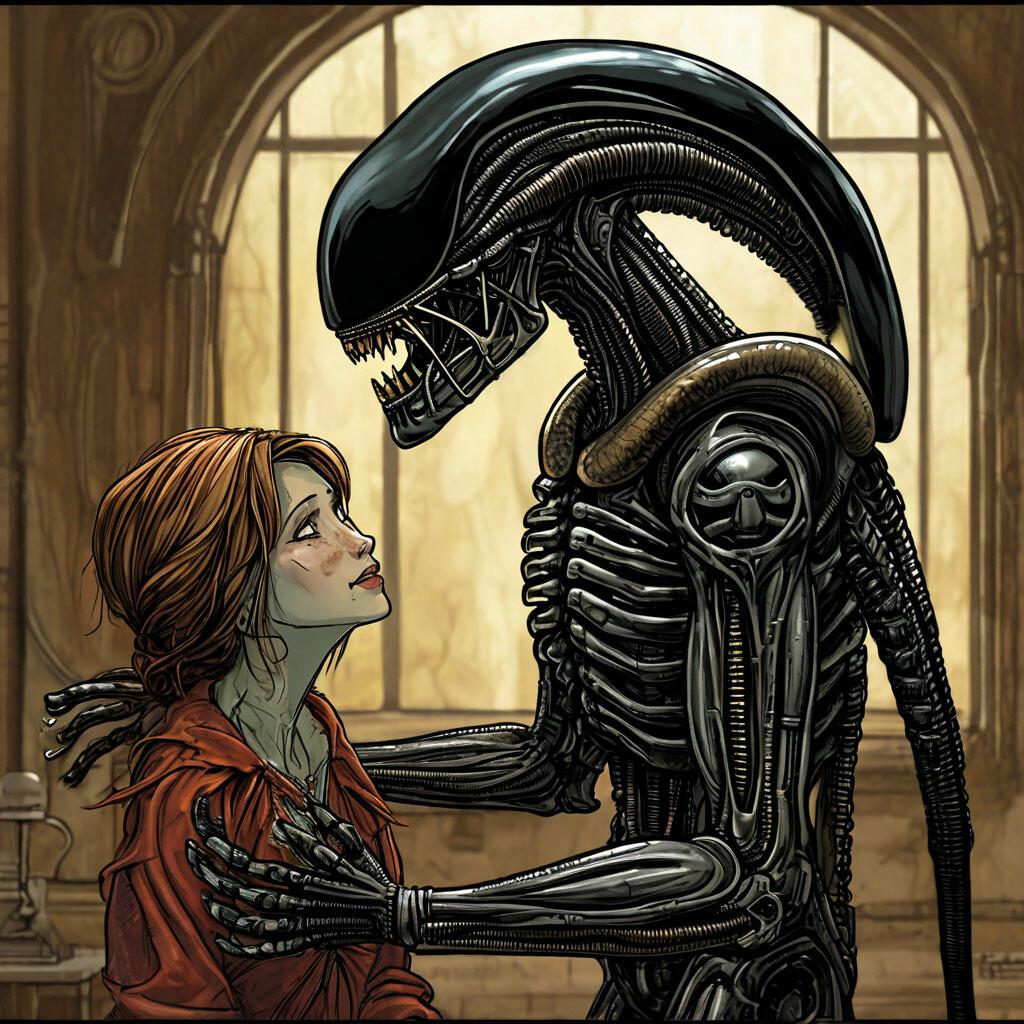 Ксеноморф предстает как воплощение чистого ужаса и совершенной адаптации, чье черное тело и внутреннее строение отражают идеальную машину для убийства, созданную миллионами лет эволюции. Эти изображения демонстрируют различные стадии его развития - от эмбриона до взрослой особи, от охоты в темноте до финальных столкновений с жертвами. Художники запечатлели характерные черты: глянцевую черную кожу, вытянутую голову с мандибулами, длинный хвост с жалом, бесшумные движения в тенях. Каждый кадр передает атмосферу напряжения - то это скрытное преследование, то внезапная атака, то мучительная трансформация жертв. Такие иллюстрации идеально отражают темы выживания, адаптации и неизбежности встречи с неизвестным.