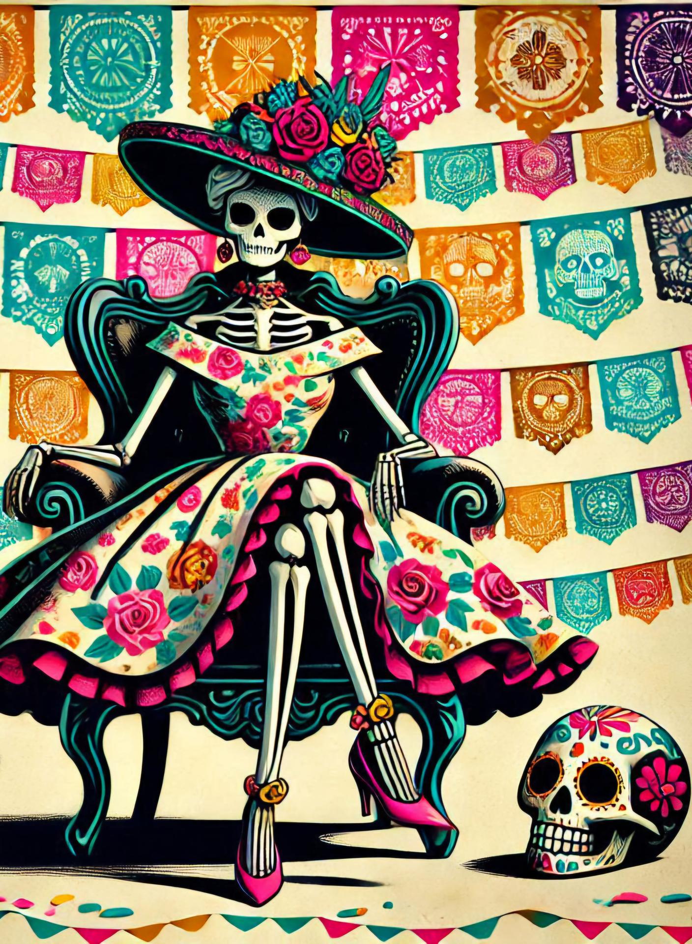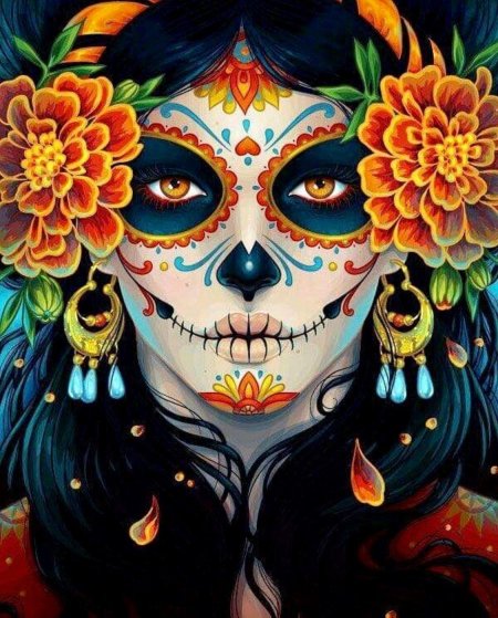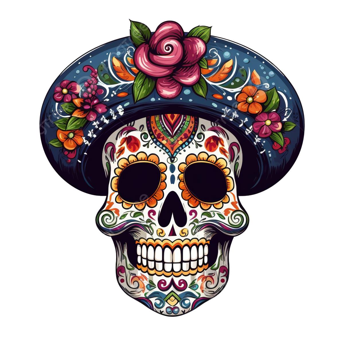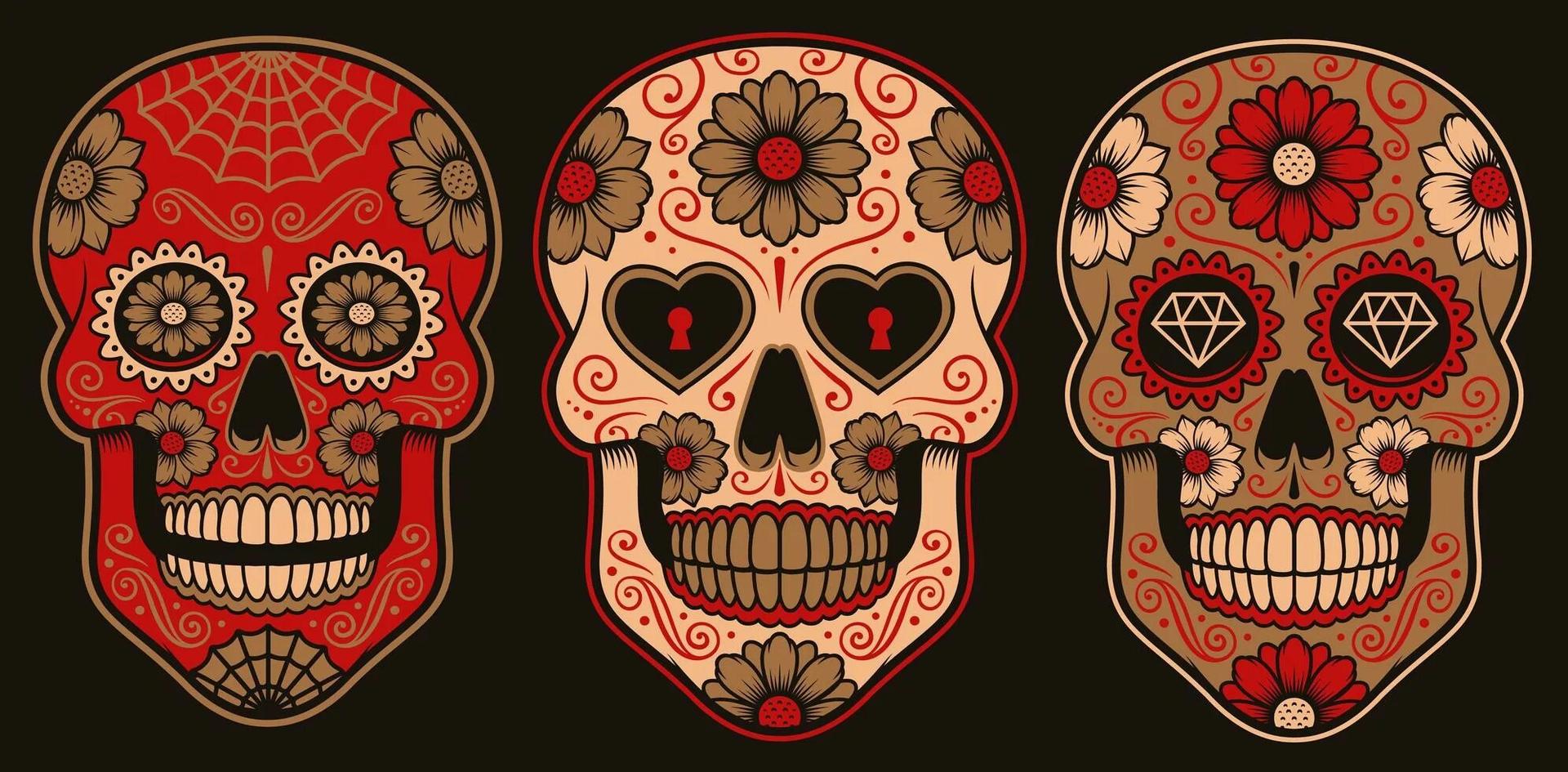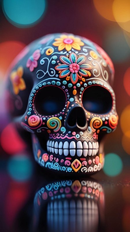 Мексиканские черепа предстают как символы цикла жизни и смерти, украшенные яркими цветами и узорами в традиции праздника Día de los Muertos, где скорбь смешивается с радостью воспоминаний. Эти изображения демонстрируют разнообразие интерпретаций - от традиционных сахарных черепов до современных граффити на стенах. Художники запечатлели различные аспекты культуры: то это алтари с фотографиями умерших родственников, то парады с танцорами в костюмах скелетов, то декоративные элементы в виде черепов с цветами и орнаментами. Каждый арт раскрывает новый слой значений - от уважения к предкам до преодоления страха смерти через искусство и юмор. Такие иллюстрации напоминают о важности культурных традиций и способности находить красоту даже в темах, связанных со смертью.