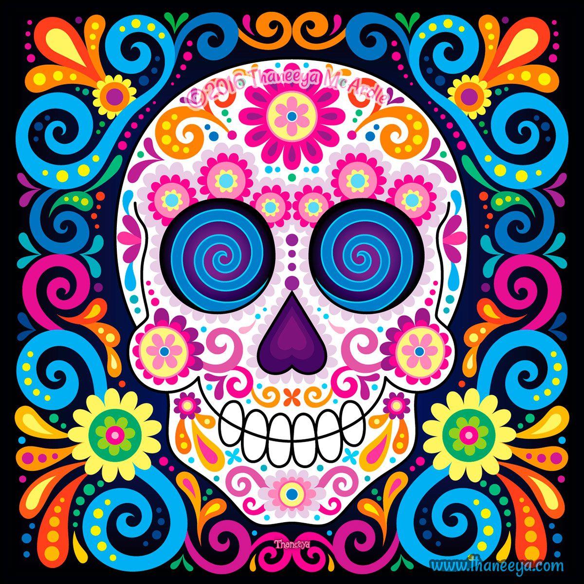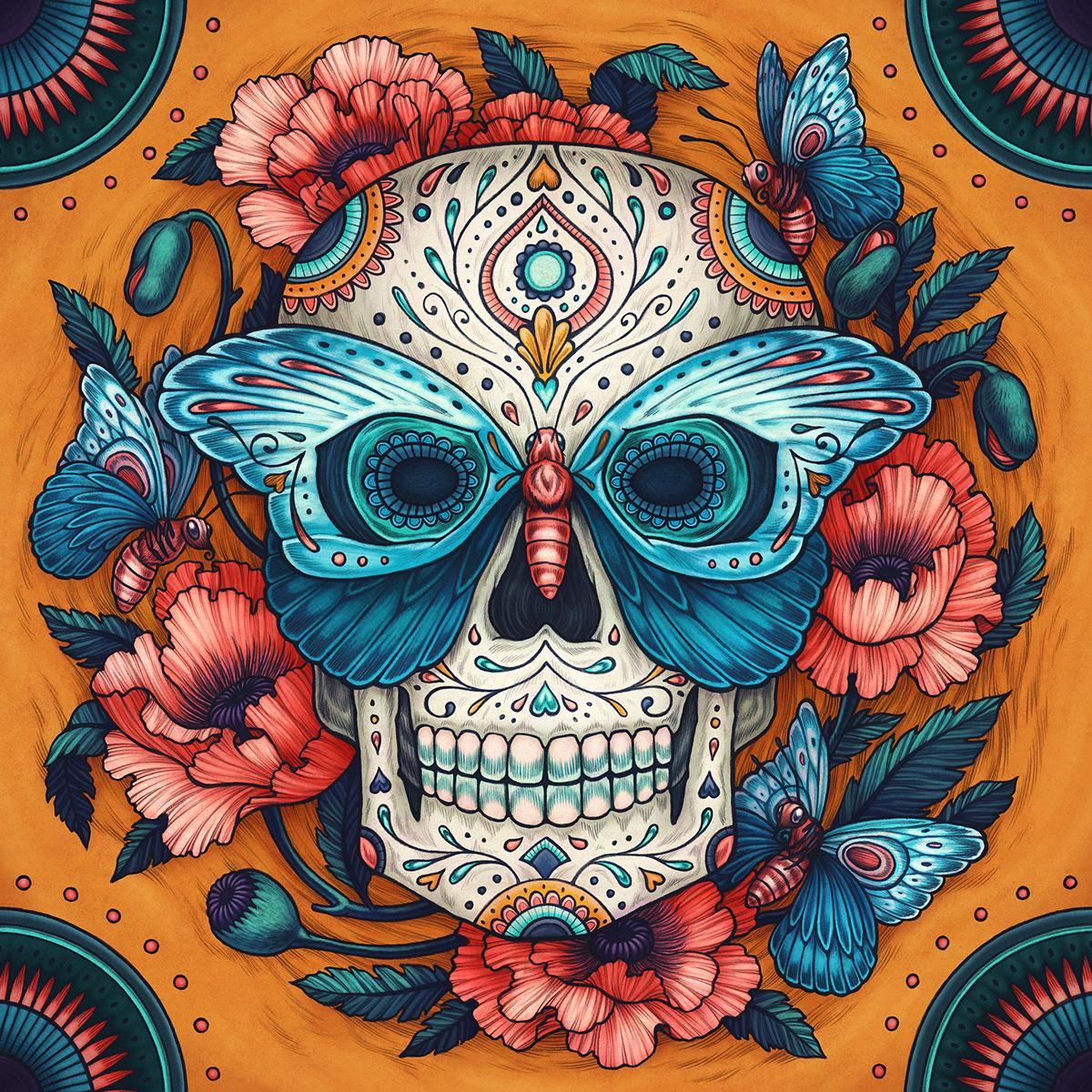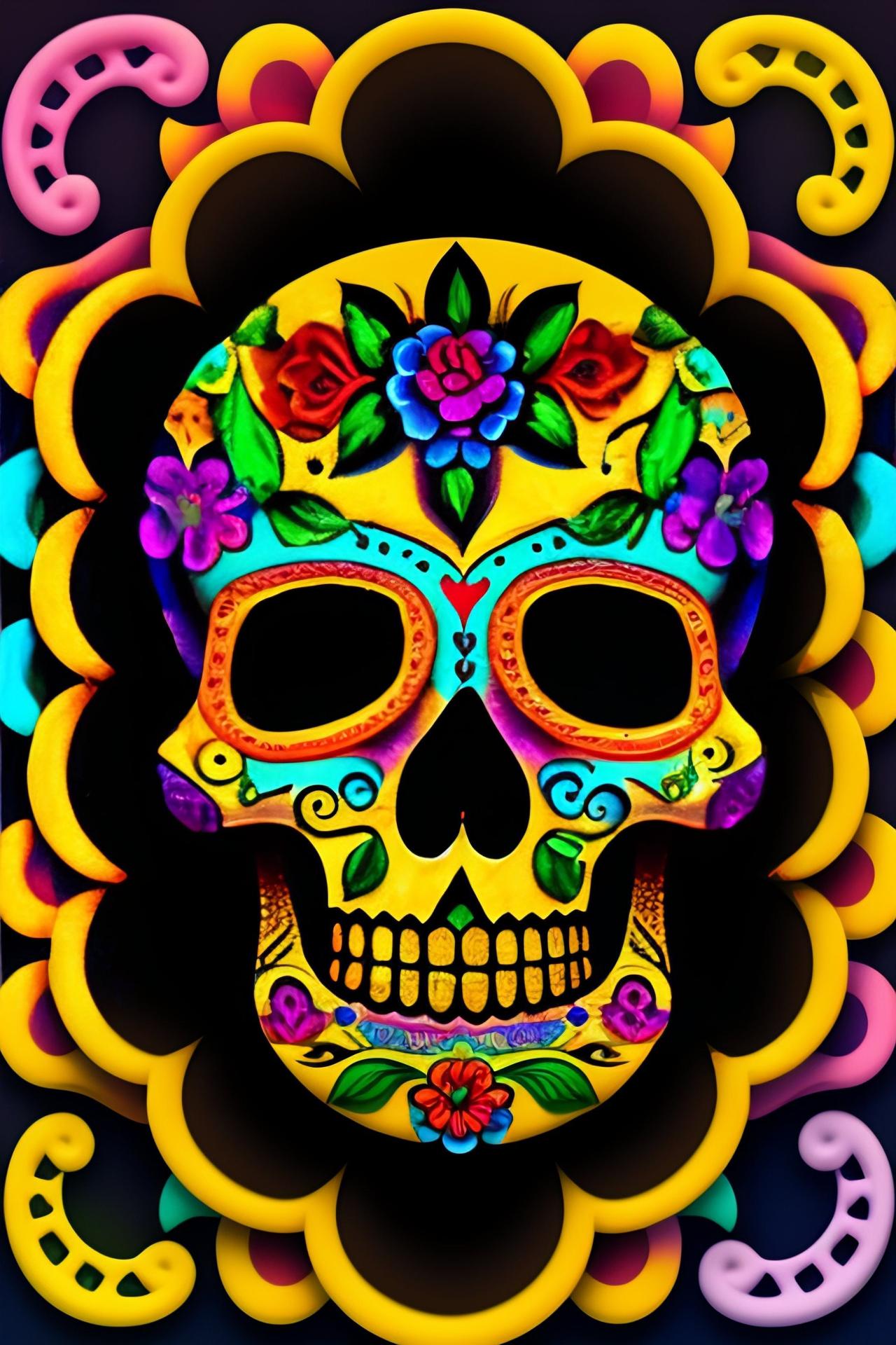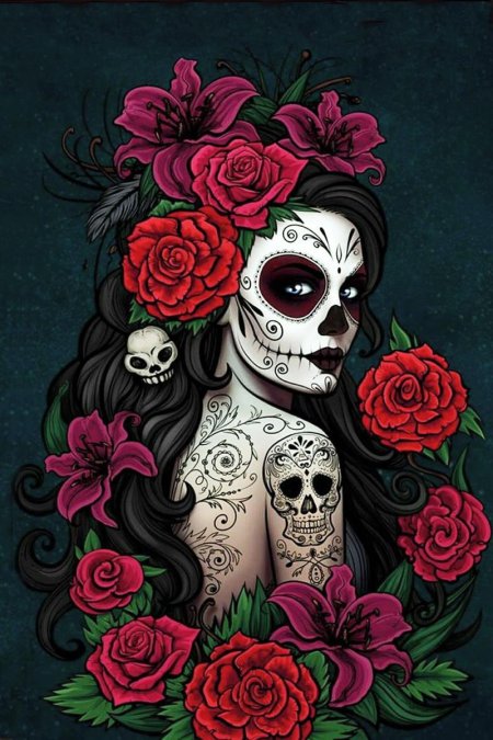 Мексиканские черепа предстают как символы цикла жизни и смерти, украшенные яркими цветами и узорами в традиции праздника Día de los Muertos, где скорбь смешивается с радостью воспоминаний. Эти изображения демонстрируют разнообразие интерпретаций - от традиционных сахарных черепов до современных граффити на стенах. Художники запечатлели различные аспекты культуры: то это алтари с фотографиями умерших родственников, то парады с танцорами в костюмах скелетов, то декоративные элементы в виде черепов с цветами и орнаментами. Каждый арт раскрывает новый слой значений - от уважения к предкам до преодоления страха смерти через искусство и юмор. Такие иллюстрации напоминают о важности культурных традиций и способности находить красоту даже в темах, связанных со смертью.