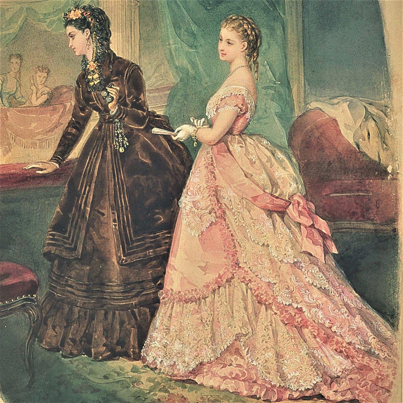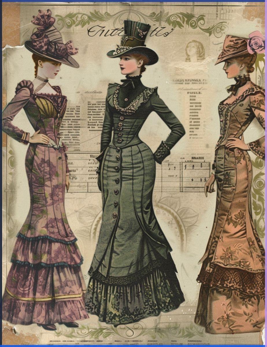 Викторианские платья предстают как произведения искусства, где каждый элемент костюма отражает социальный статус, моральные ценности и технологические достижения эпохи королевы Виктории. Эти изображения демонстрируют разнообразие стилей - от простых дневных платьев до пышных бальных туалетов с кринолинами и турнюрами. Художники запечатлели различные сцены повседневной жизни: то это прогулки в парке, то приемы в салонах, то семейные портреты у камина. Каждый арт раскрывает новый аспект эпохи - от строгих моральных норм до революционных идей феминизма, от индустриальных инноваций до романтических идеалов. Такие иллюстрации напоминают о культурном наследии и влиянии моды на формирование общества.