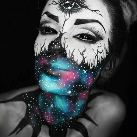 Грим Хэллоуин предстает как искусство трансформации, где обычное лицо превращается в портал к самым темным страхам и самым светлым радостям праздника. Эти изображения демонстрируют разнообразие техник - от простых масок с вампирскими клыками до сложных композиций с искусственными ранами и фантастическими существами. Художники создали целую галерею образов: то это классические монстры вроде оборотней и ведьм, то современные интерпретации вроде зомби-знаменитостей или инопланетных захватчиков. Каждый арт раскрывает новый аспект праздника - от детского восторга до психологической глубины, от юмористических ситуаций до настоящего ужаса. Такие иллюстрации напоминают о важности карнавальной свободы и способности преодолевать страхи через игру и фантазию.