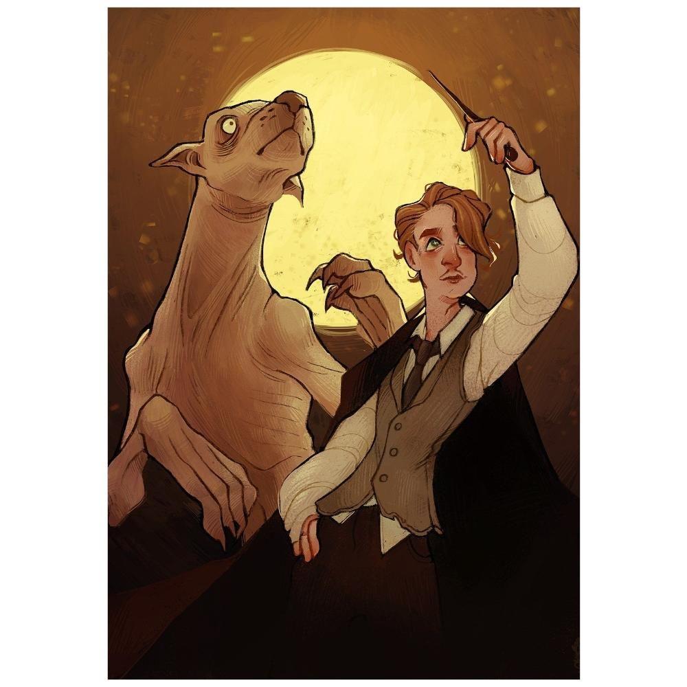 Ремус Люпин предстает как сложный персонаж, чья жизнь разрывается между человеческим разумом и звериными инстинктами под влиянием полной луны. Эти изображения запечатлели различные грани его характера - от спокойного профессора в Хогвартсе до яростного оборотня в лесу. Художники мастерски передали психологическую глубину: усталые глаза, скрывающие внутреннюю борьбу, шрамы как напоминание о тяжелом прошлом, сдержанные манеры, маскирующие постоянное напряжение. Каждый кадр раскрывает новый аспект его истории - то это момент трансформации при луне, то тихий вечер с друзьями, то внутренний конфликт между долгом и инстинктами. Такие иллюстрации идеально отражают темы принятия себя и преодоления предрассудков в мире Гарри Поттера.