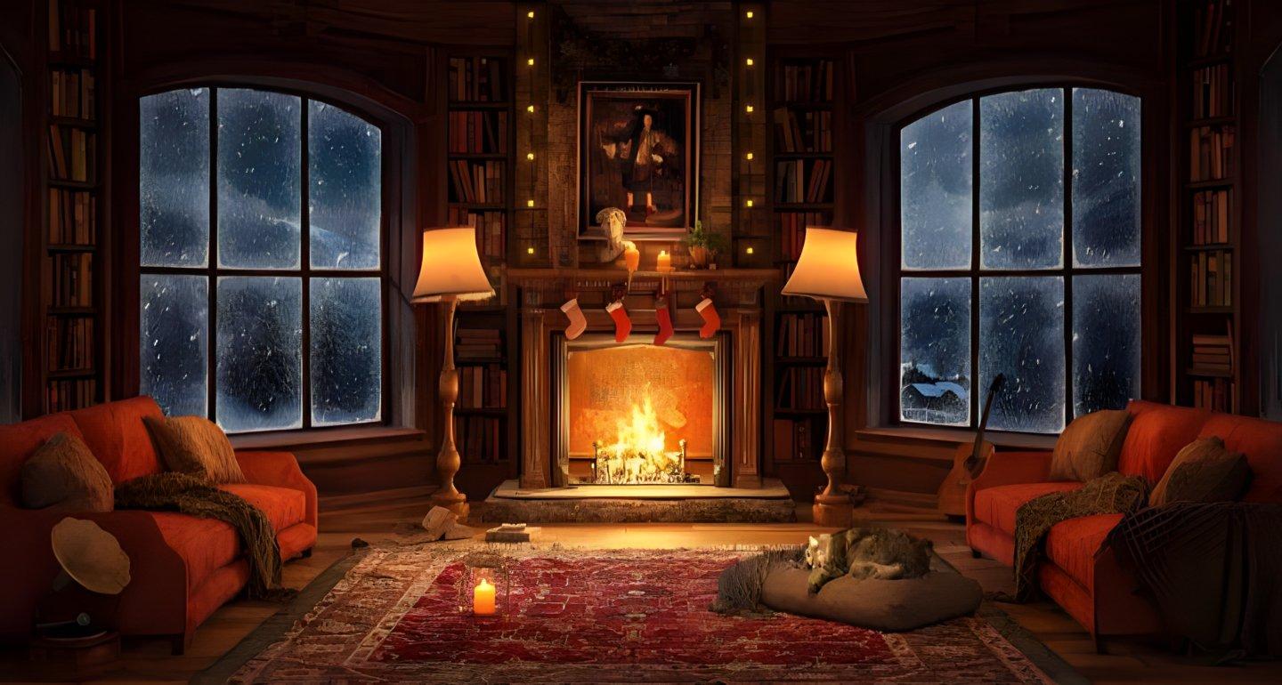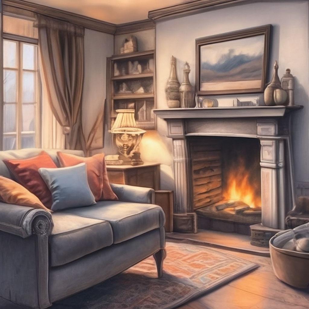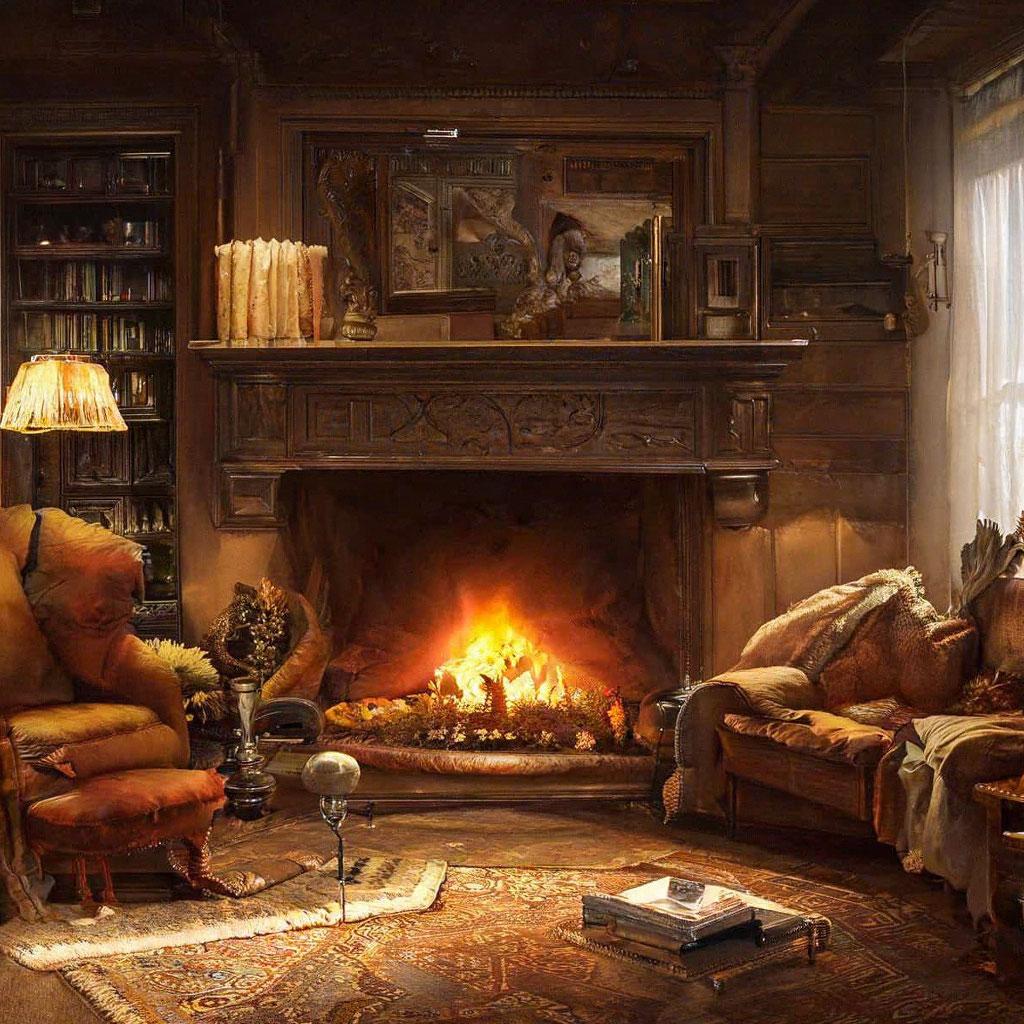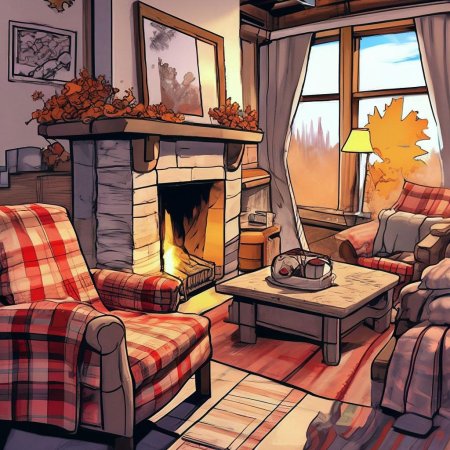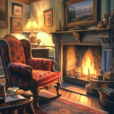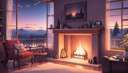 Комната с камином предстает как сердце дома, где собирается семья и рождаются воспоминания в тепле живого огня. Эти изображения передают атмосферу настоящего уюта - от потрескивающих поленьев и мягкого света ламп до удобных кресел и стопок любимых книг на полках. Художники мастерски запечатлели детали интерьера, создающие ощущение тепла: шерстяные пледы, глиняные кружки с горячим чаем, семейные фотографии на каминной полке. Каждый кадр рассказывает историю о конкретном моменте - то тихий вечер с книгой у огня, то семейный праздник с подарками под елкой, то утренний кофе в любимом кресле. Такие иллюстрации идеально отражают концепцию домашнего комфорта и важность создания личного пространства для отдыха и восстановления сил.