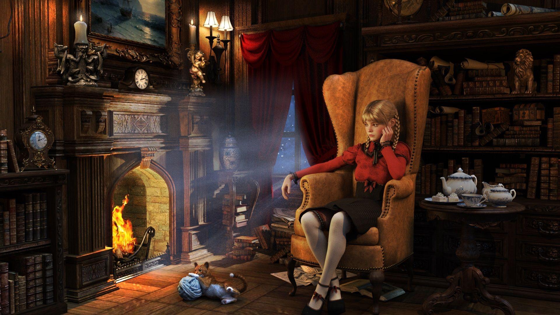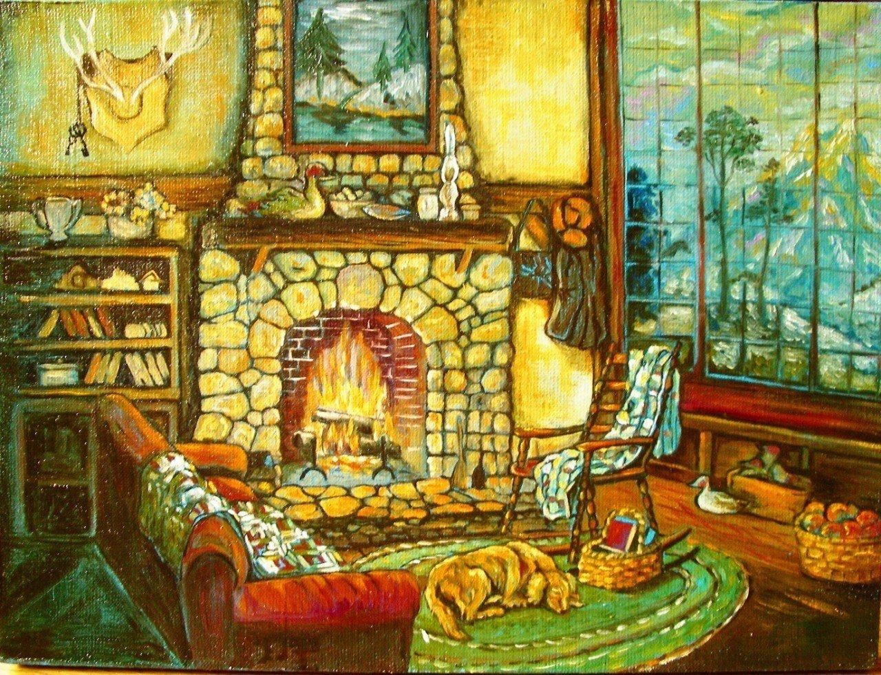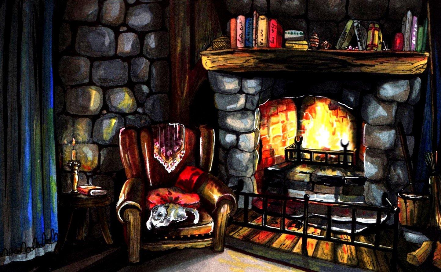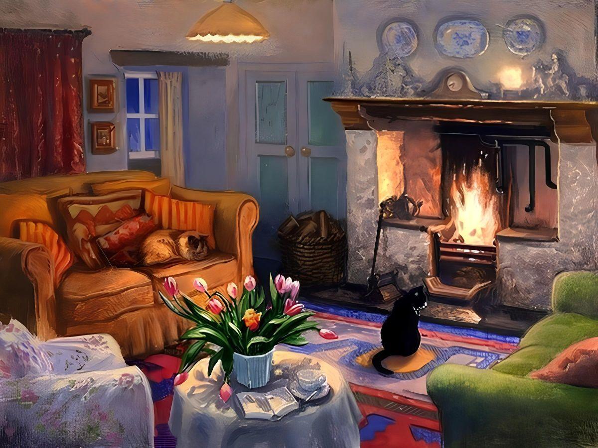 Комната с камином предстает как сердце дома, где собирается семья и рождаются воспоминания в тепле живого огня. Эти изображения передают атмосферу настоящего уюта - от потрескивающих поленьев и мягкого света ламп до удобных кресел и стопок любимых книг на полках. Художники мастерски запечатлели детали интерьера, создающие ощущение тепла: шерстяные пледы, глиняные кружки с горячим чаем, семейные фотографии на каминной полке. Каждый кадр рассказывает историю о конкретном моменте - то тихий вечер с книгой у огня, то семейный праздник с подарками под елкой, то утренний кофе в любимом кресле. Такие иллюстрации идеально отражают концепцию домашнего комфорта и важность создания личного пространства для отдыха и восстановления сил.