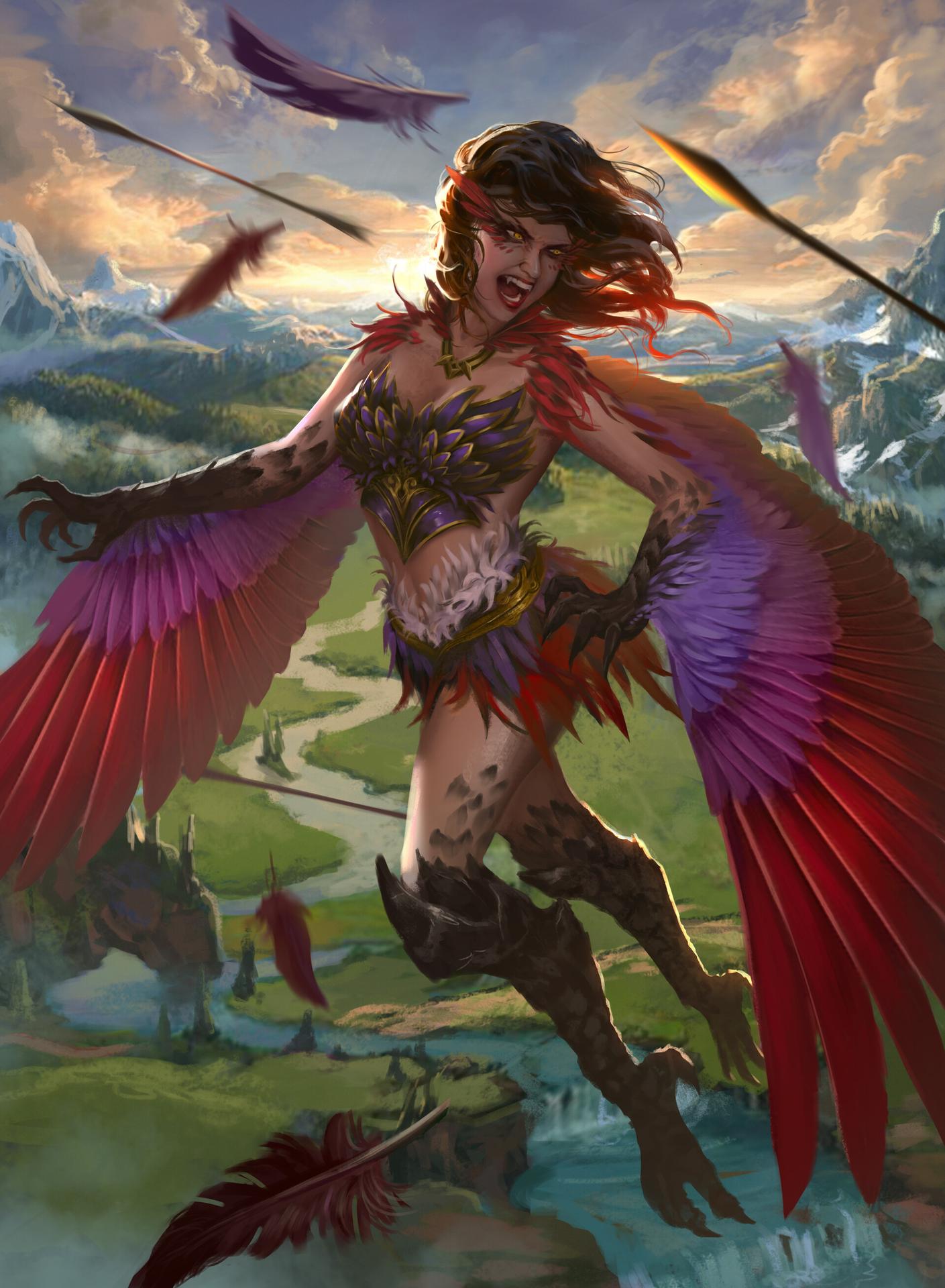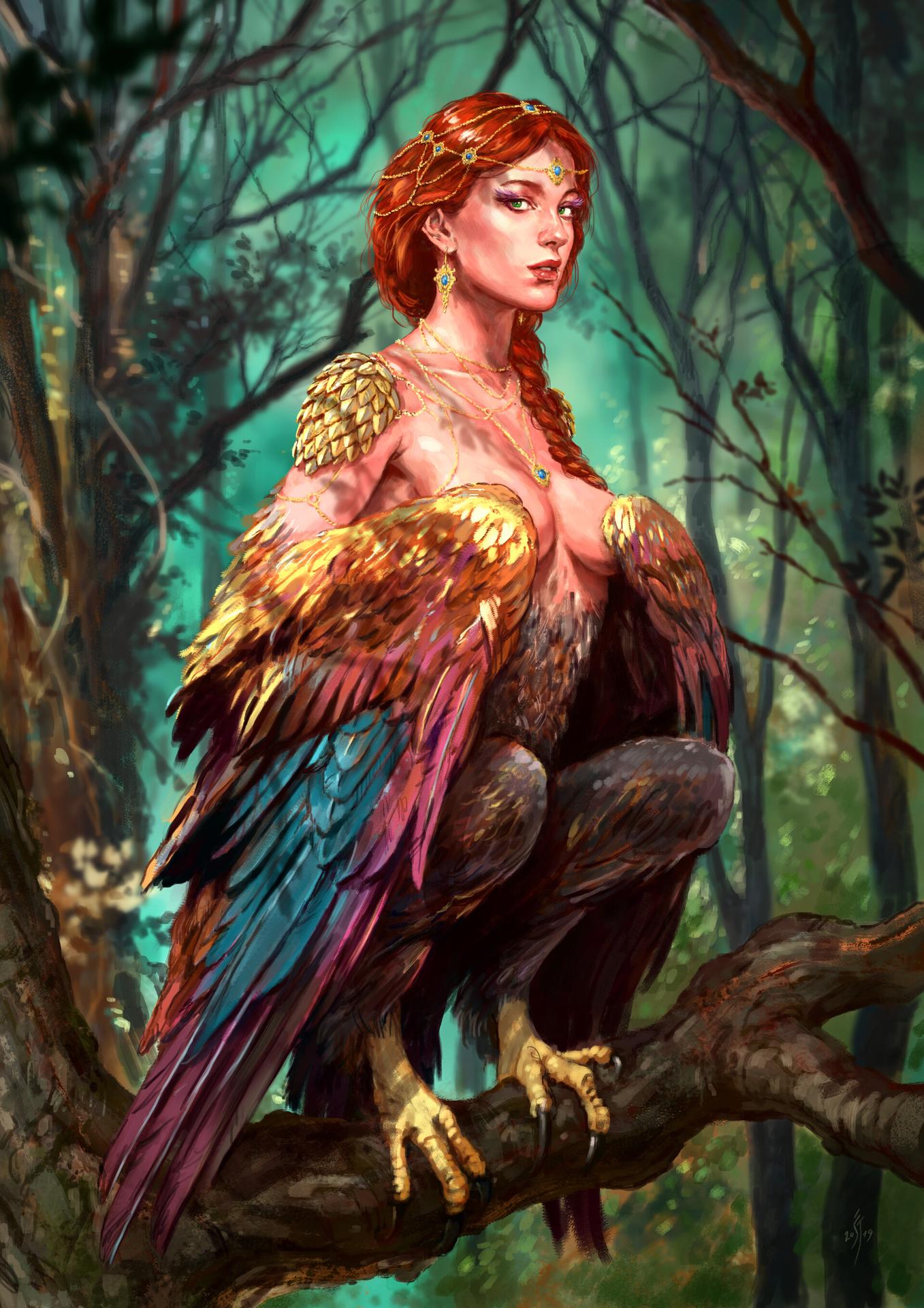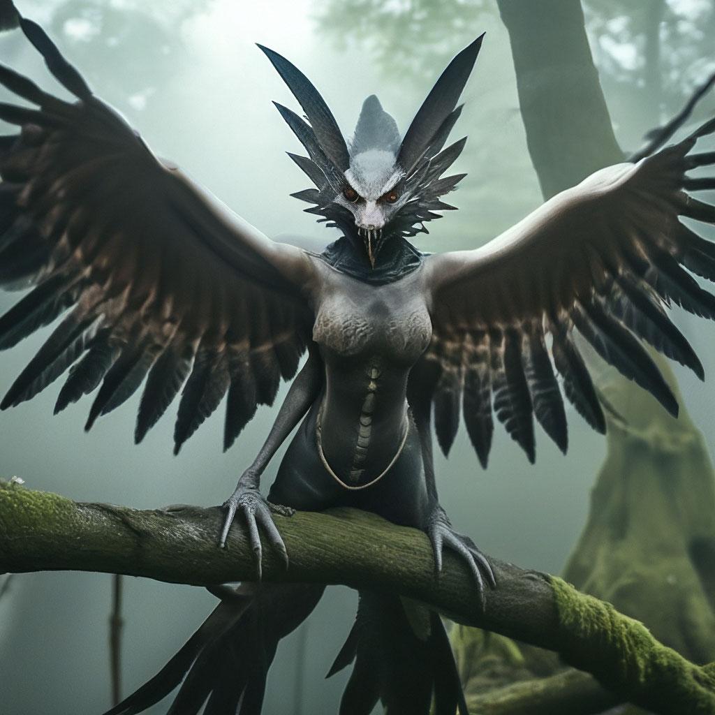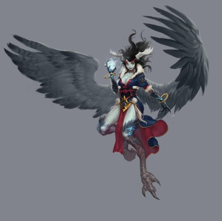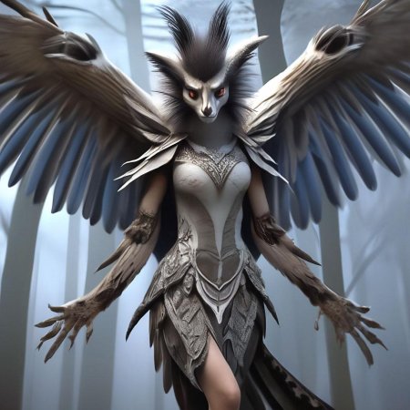 Великолепная гарпия, королева крылатых дев, парит над миром с грацией, недоступной простым смертным. Её крылья, подобные павлиньим перьям, переливаются всеми цветами радуги, создавая вокруг неё ореол неземной красоты. Гарпия, чьё имя стало синонимом совершенства в мире фэнтези, воплощает собой идеал хуманизации мифических существ. В её глазах отражается мудрость веков, а в движениях чувствуется сила древней магии. Она не просто летает – она танцует в воздухе, создавая вокруг себя вихрь эмоций и восхищения. Каждый взмах её крыльев – это произведение искусства, каждый поворот головы – шедевр природной эстетики. Эта гарпия не нуждается в короне – она сама является короной, увенчивающей пантеон крылатых созданий.
