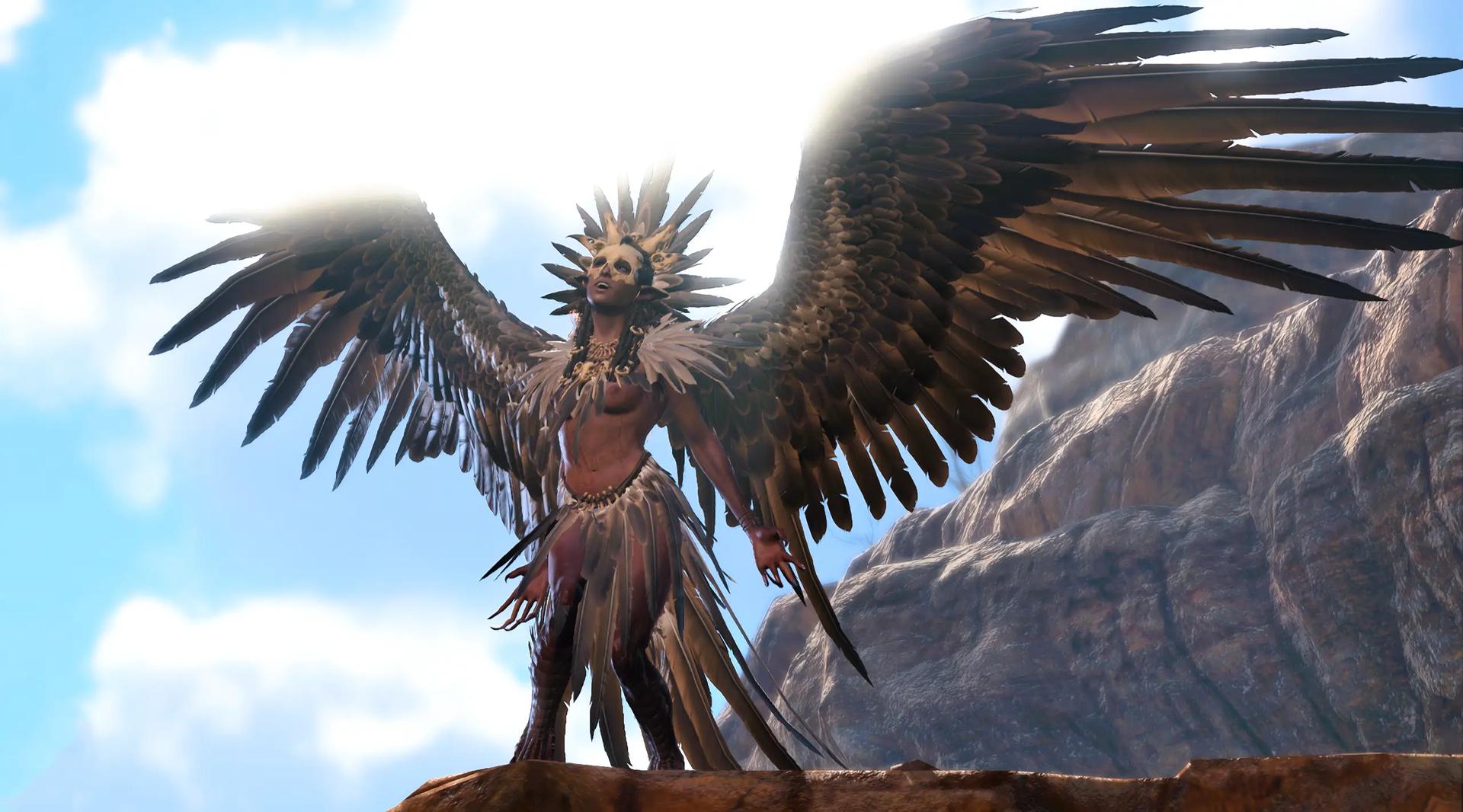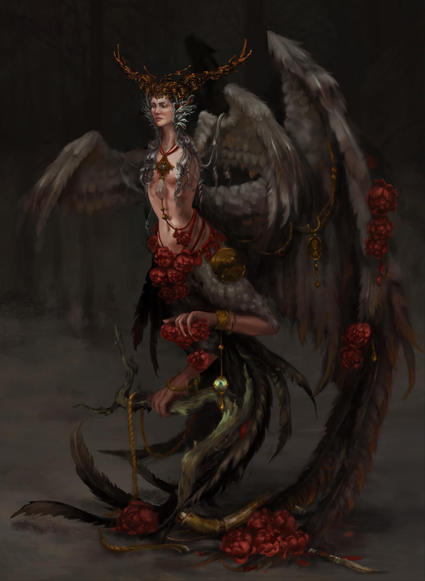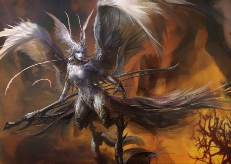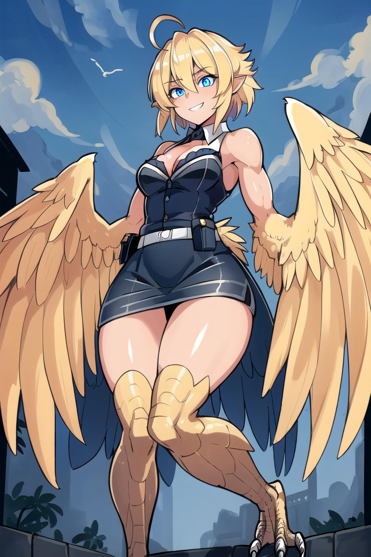 Великолепная гарпия, королева крылатых дев, парит над миром с грацией, недоступной простым смертным. Её крылья, подобные павлиньим перьям, переливаются всеми цветами радуги, создавая вокруг неё ореол неземной красоты. Гарпия, чьё имя стало синонимом совершенства в мире фэнтези, воплощает собой идеал хуманизации мифических существ. В её глазах отражается мудрость веков, а в движениях чувствуется сила древней магии. Она не просто летает – она танцует в воздухе, создавая вокруг себя вихрь эмоций и восхищения. Каждый взмах её крыльев – это произведение искусства, каждый поворот головы – шедевр природной эстетики. Эта гарпия не нуждается в короне – она сама является короной, увенчивающей пантеон крылатых созданий.