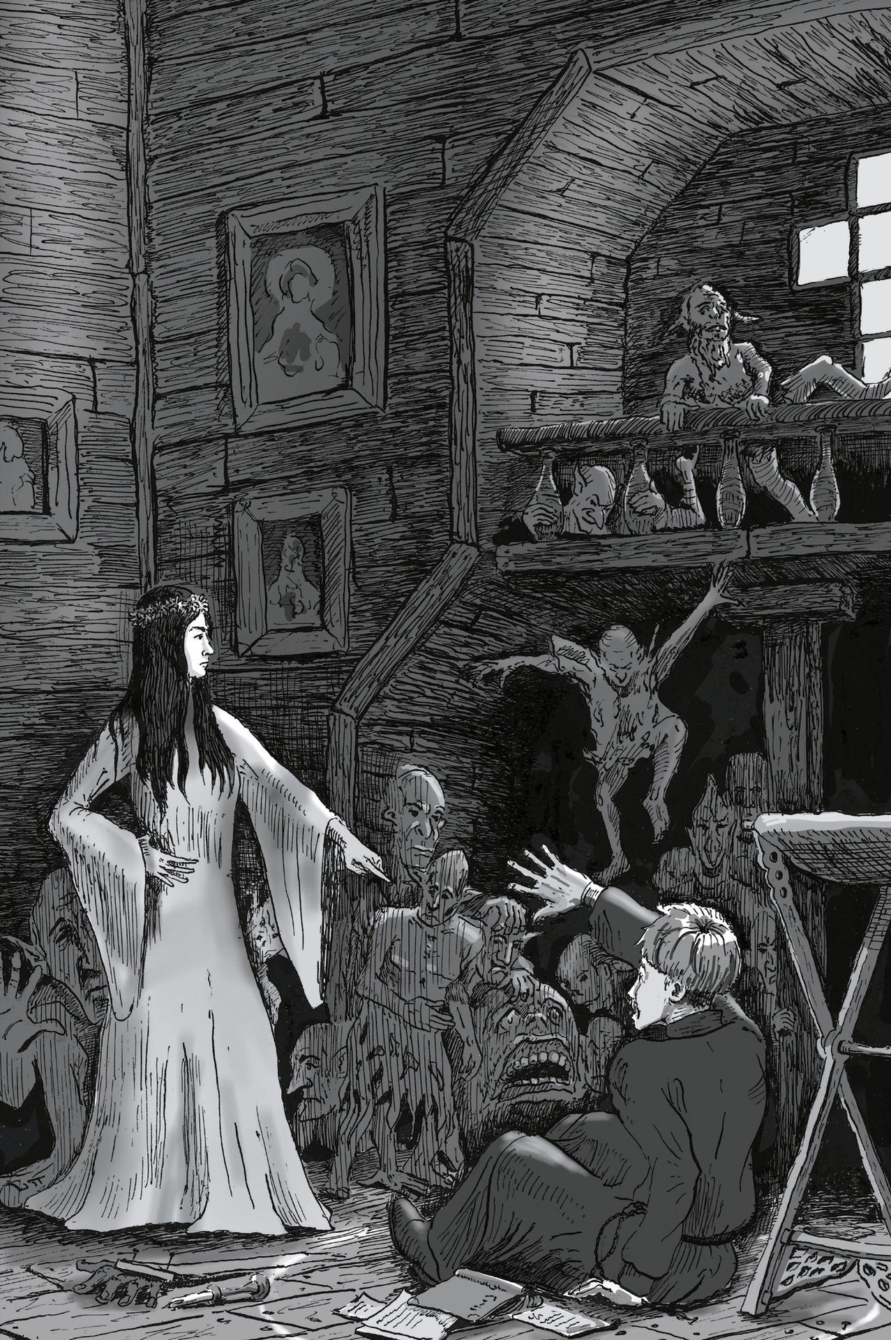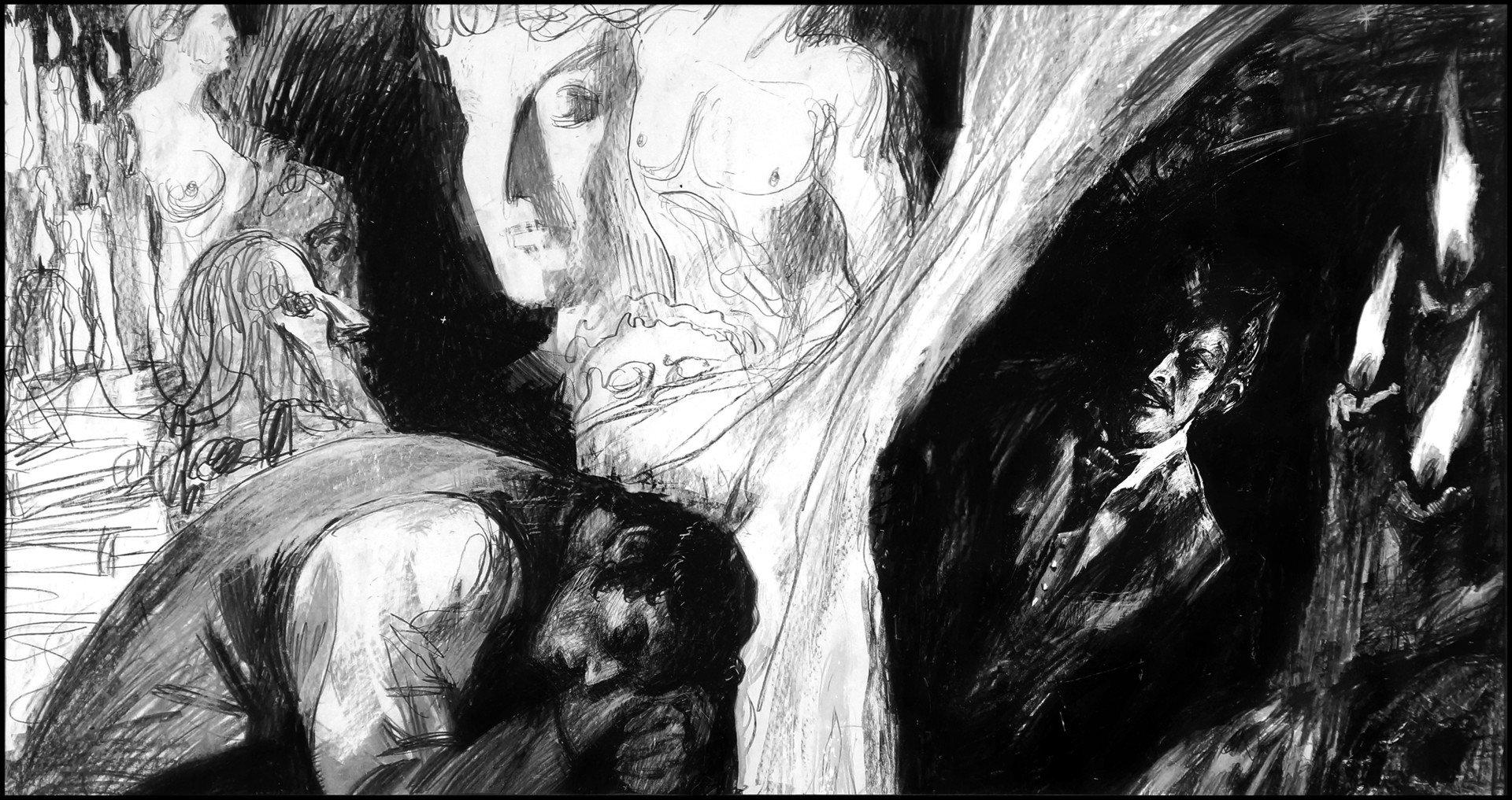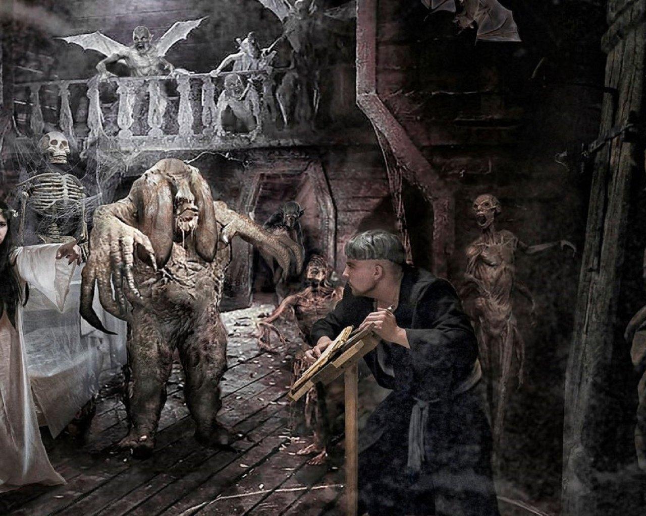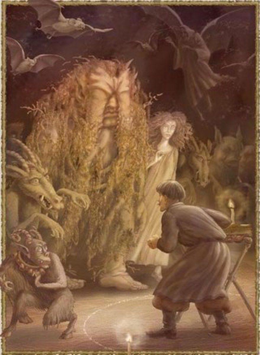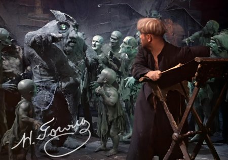 Вий представляет собой могущественного духа в славянской мифологии, повелителя мертвых. Эти иллюстрации показывают его страшную силу и таинственность. Художники используют темные тона и загадочные формы. Каждый элемент несет атмосферу ужаса. Тематика затрагивает темы смерти, загробного мира и сверхъестественного. Эти изображения стали классикой славянского фольклора.