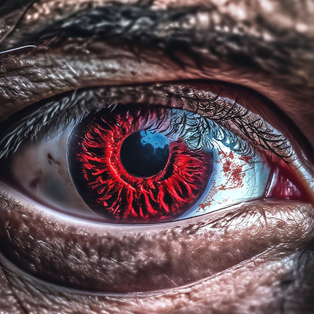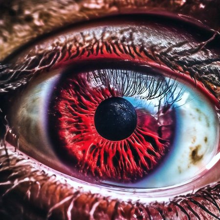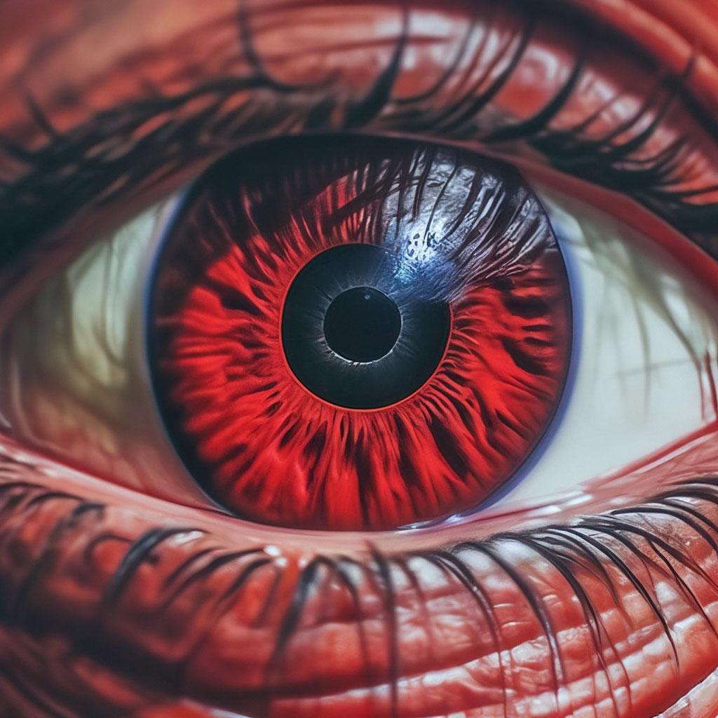 Красная радужка глаза
