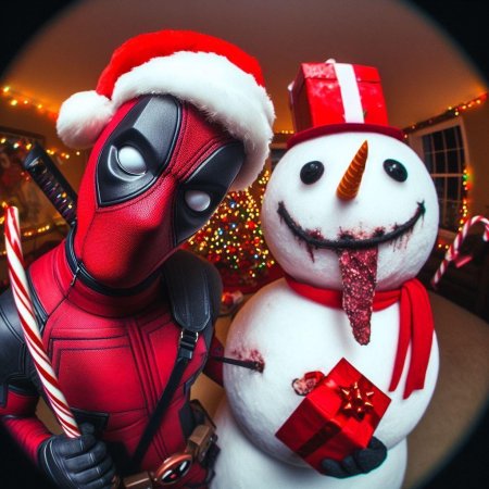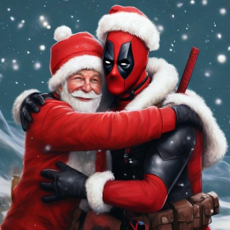 Новогодние иллюстрации Дэдпула сочетают праздничную атмосферу с фирменным юмором самого непредсказуемого антигероя комиксов. Каждая картинка демонстрирует, как этот болтливый наемник отмечает праздник - от взрывающихся хлопушек до эпичных сражений с новогодними украшениями. Тематические элементы включают праздничные традиции, супергеройский юмор, иронические ситуации, праздничные декорации, антигеройские приключения. Арты демонстрируют разнообразие стилей - от динамичных комиксных изображений до абсурдных ситуаций в праздничной тематике. Дэдпул предстает то в праздничном костюме Санта-Клауса, то в роли разрушителя праздничных вечеринок. Тематические ключевые слова охватывают новогодние иллюстрации, супергеройский юмор, праздничные антигерои, иллюстрации праздников, концептуальные изображения, художественные интерпретации, комиксные арты. Коллекция предлагает свежий взгляд на новогодние традиции через призму черного юмора, показывая, что даже самый циничный персонаж может найти повод для веселья в праздничной суете.