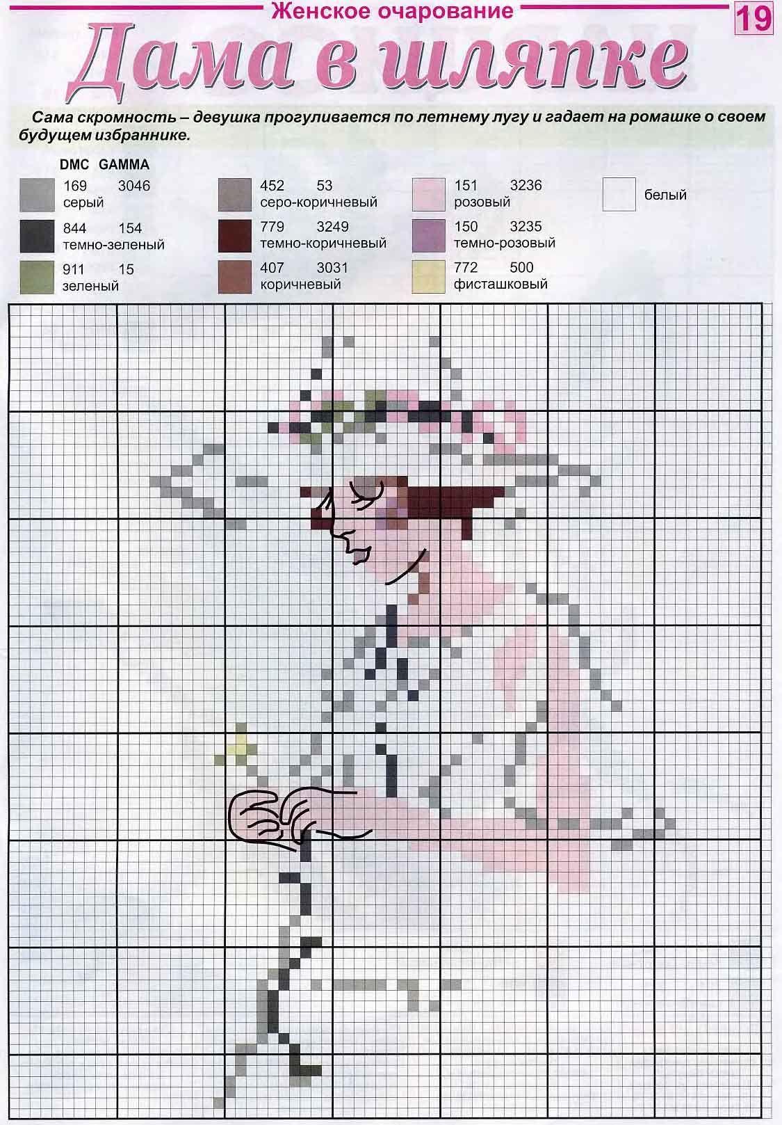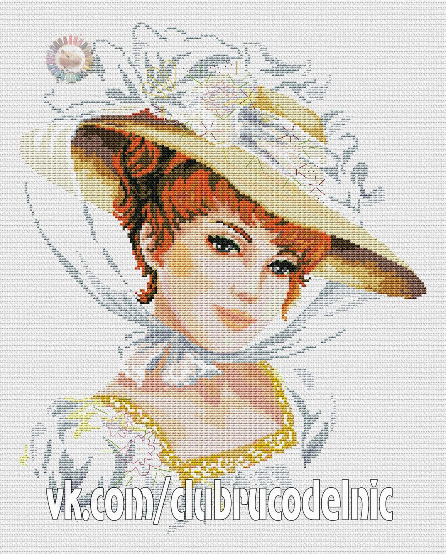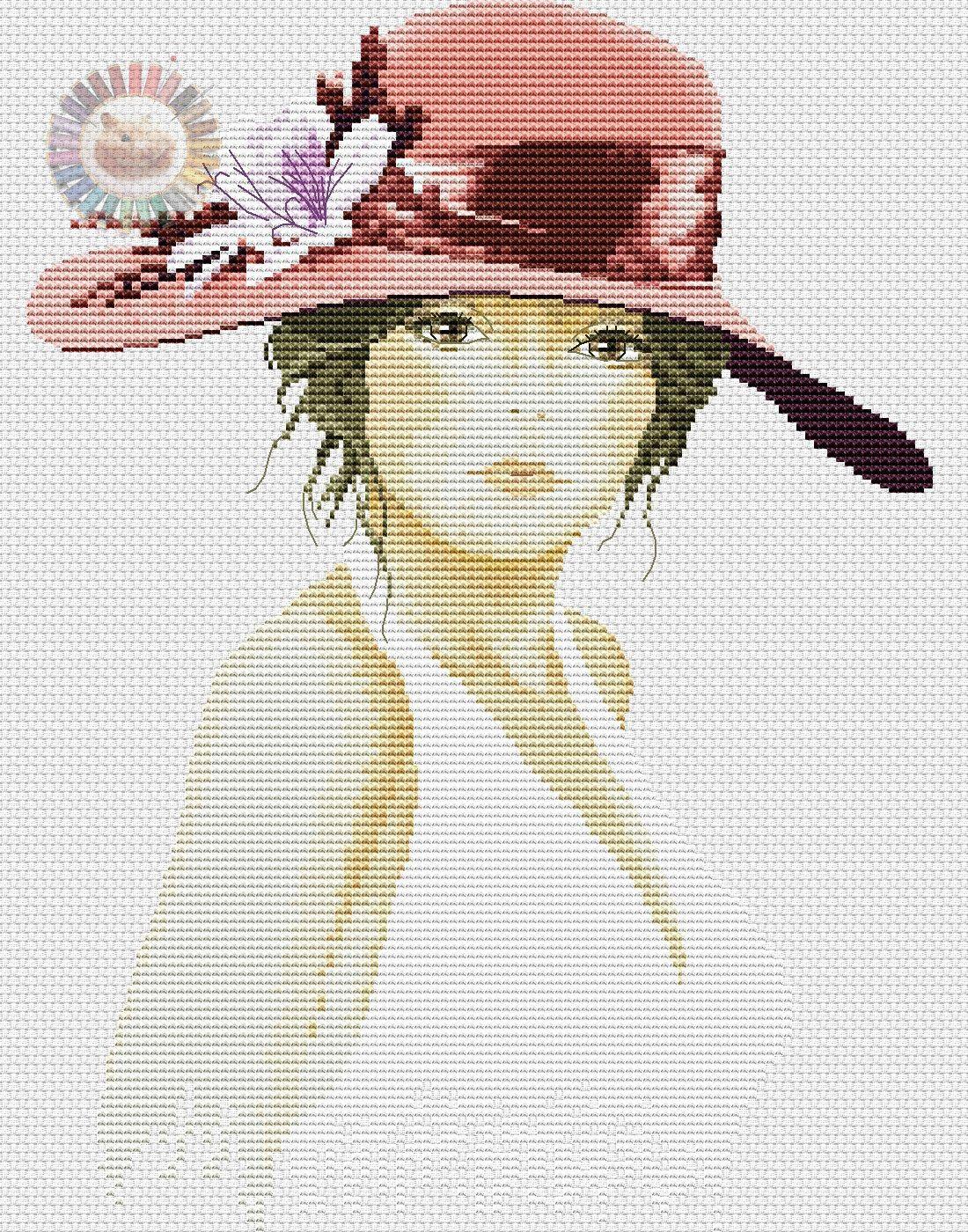 Дама в шляпе вышивка крестом