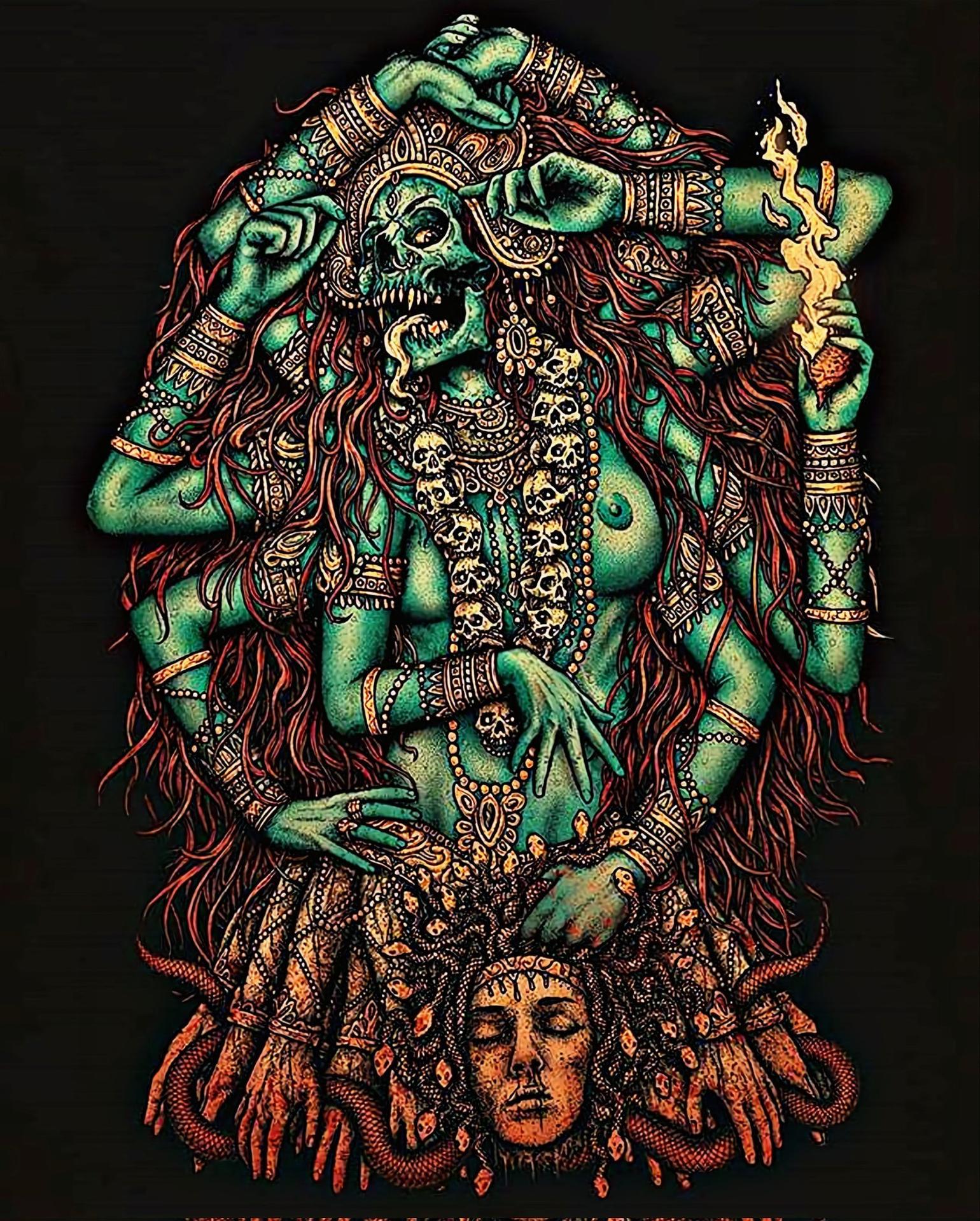 В этих мощных иллюстрациях амулет Кали предстает как сосредоточие древней энергии и мистической силы. Художники мастерски изображают священный талисман с символами индуистской богини - множеством рук, оружием и выражением одновременно разрушения и созидания. Металлические поверхности с гравировками, драгоценные камни и цепи создают атмосферу древнего ритуала. Каждая деталь несет глубокий символизм: от цветов и форм до расположения элементов. Эти арты воплощают философию индуизма, где разрушение является необходимым этапом для нового начала. Они станут отличным украшением для коллекций эзотерики и любителей восточной культуры.
