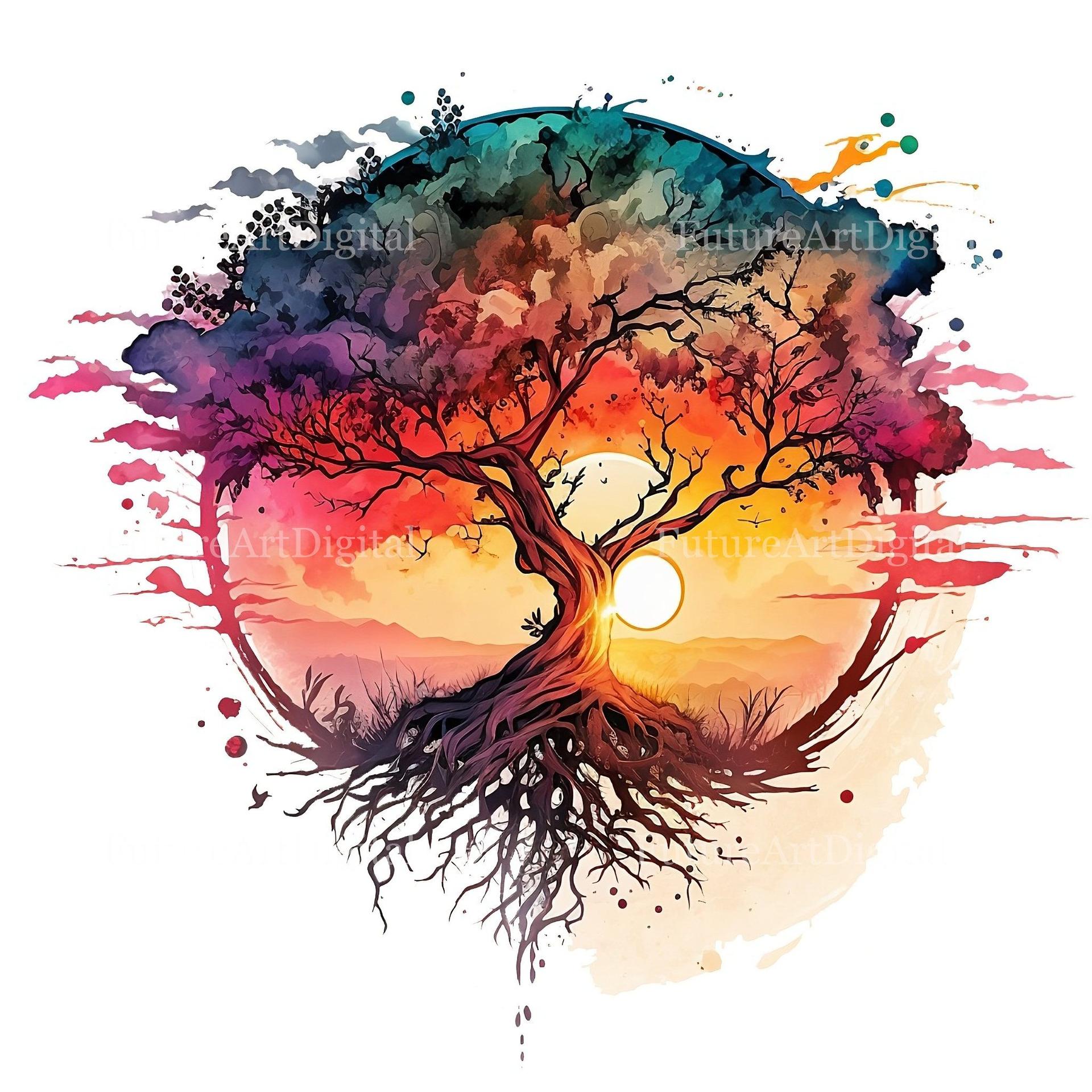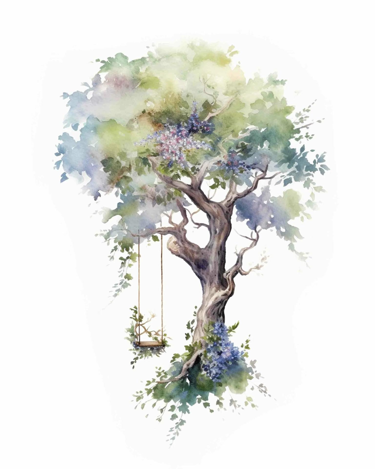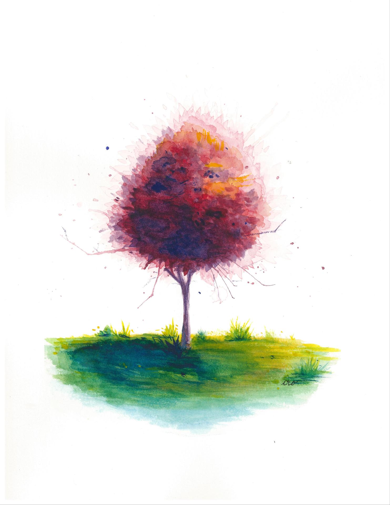 Дерево акварель
