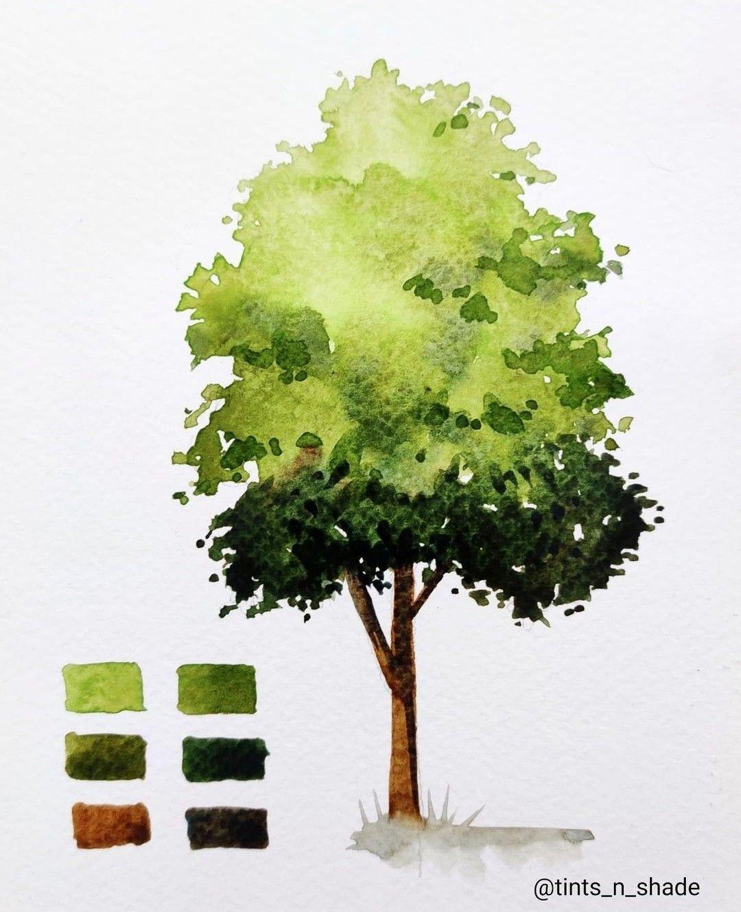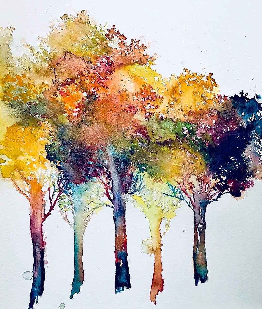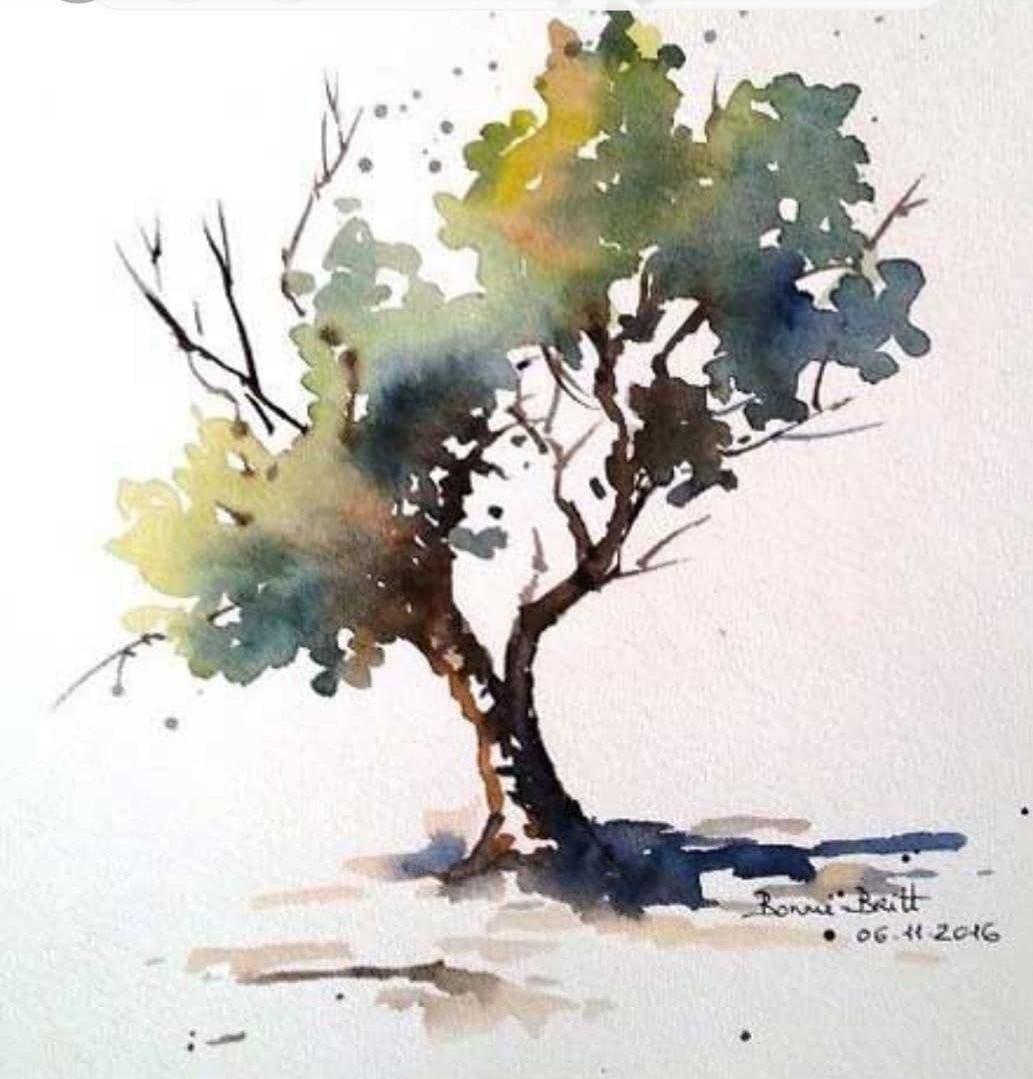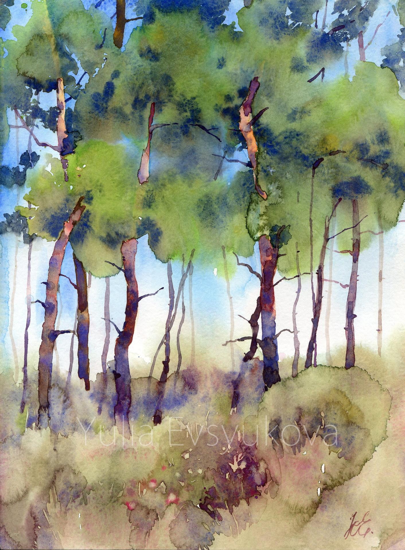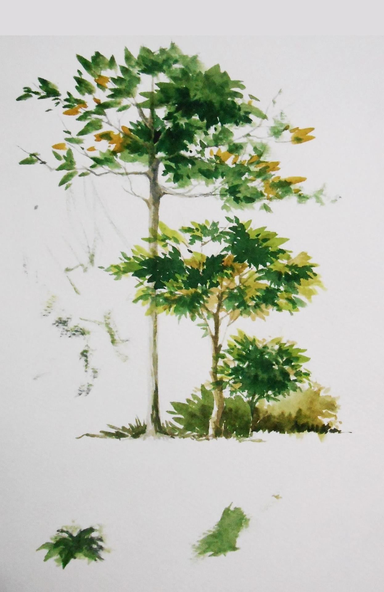 Деревья акварелью