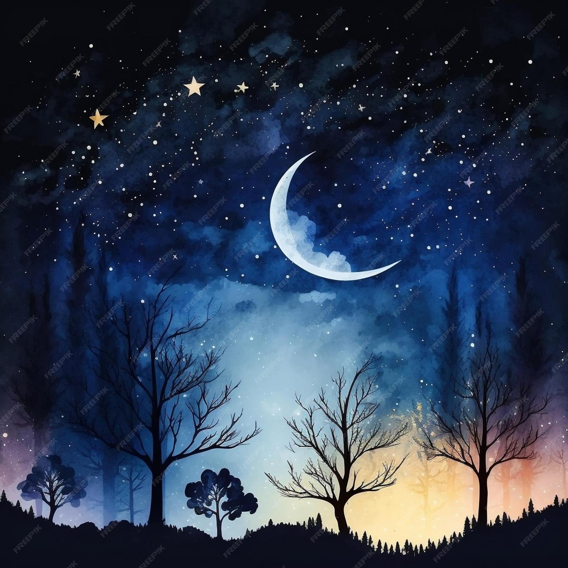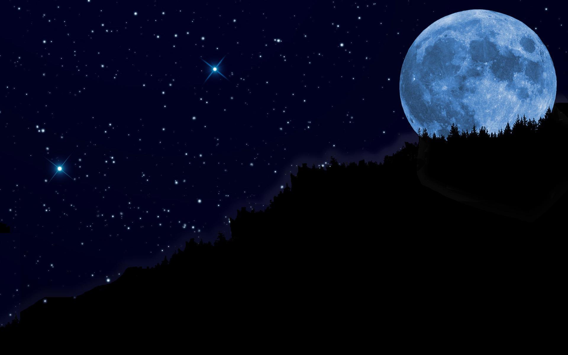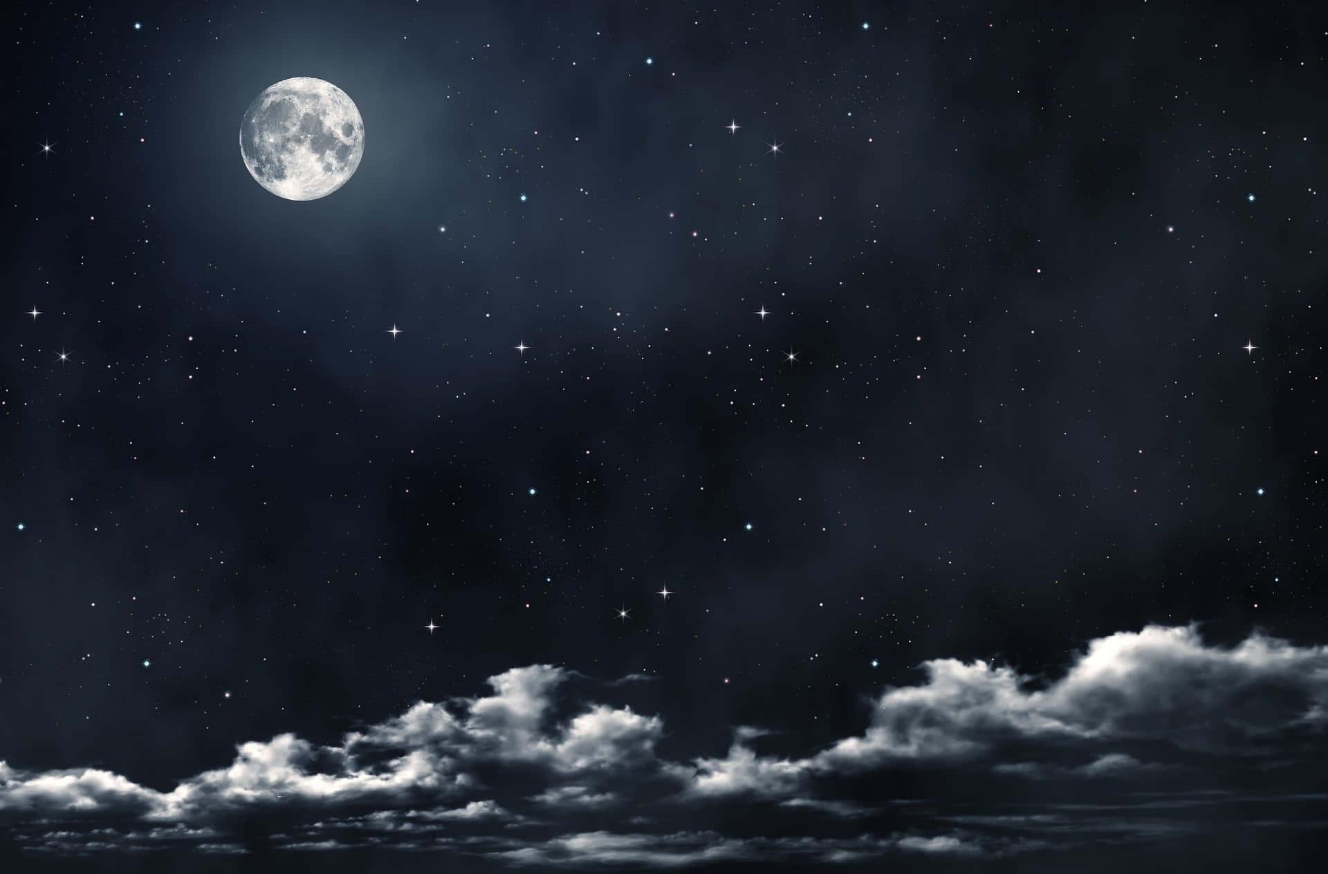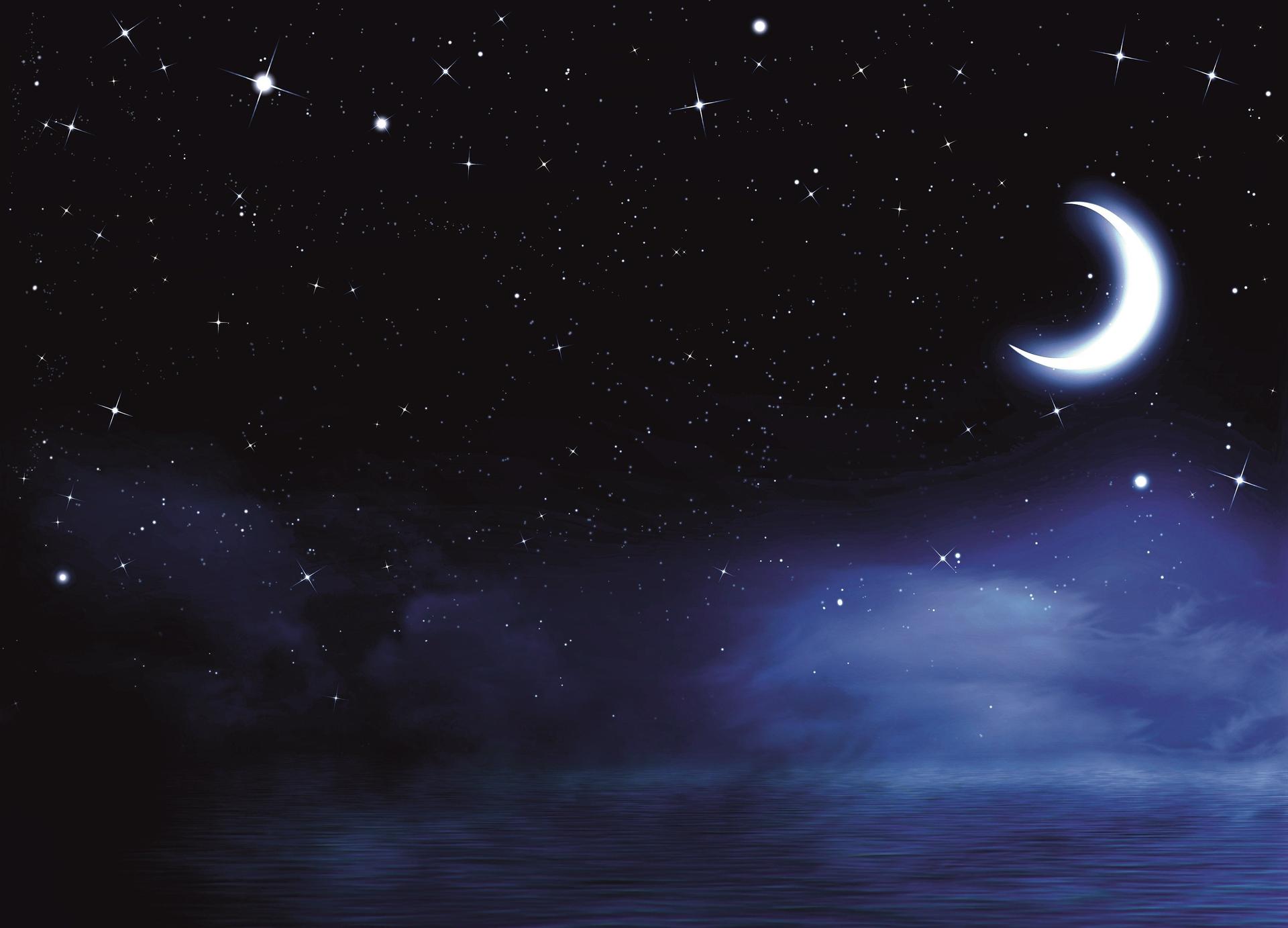 Ночное небо со звездами и луной