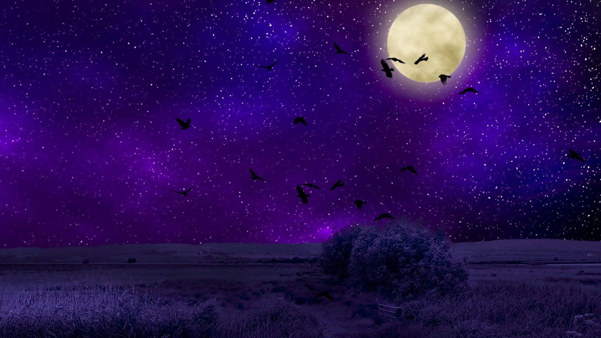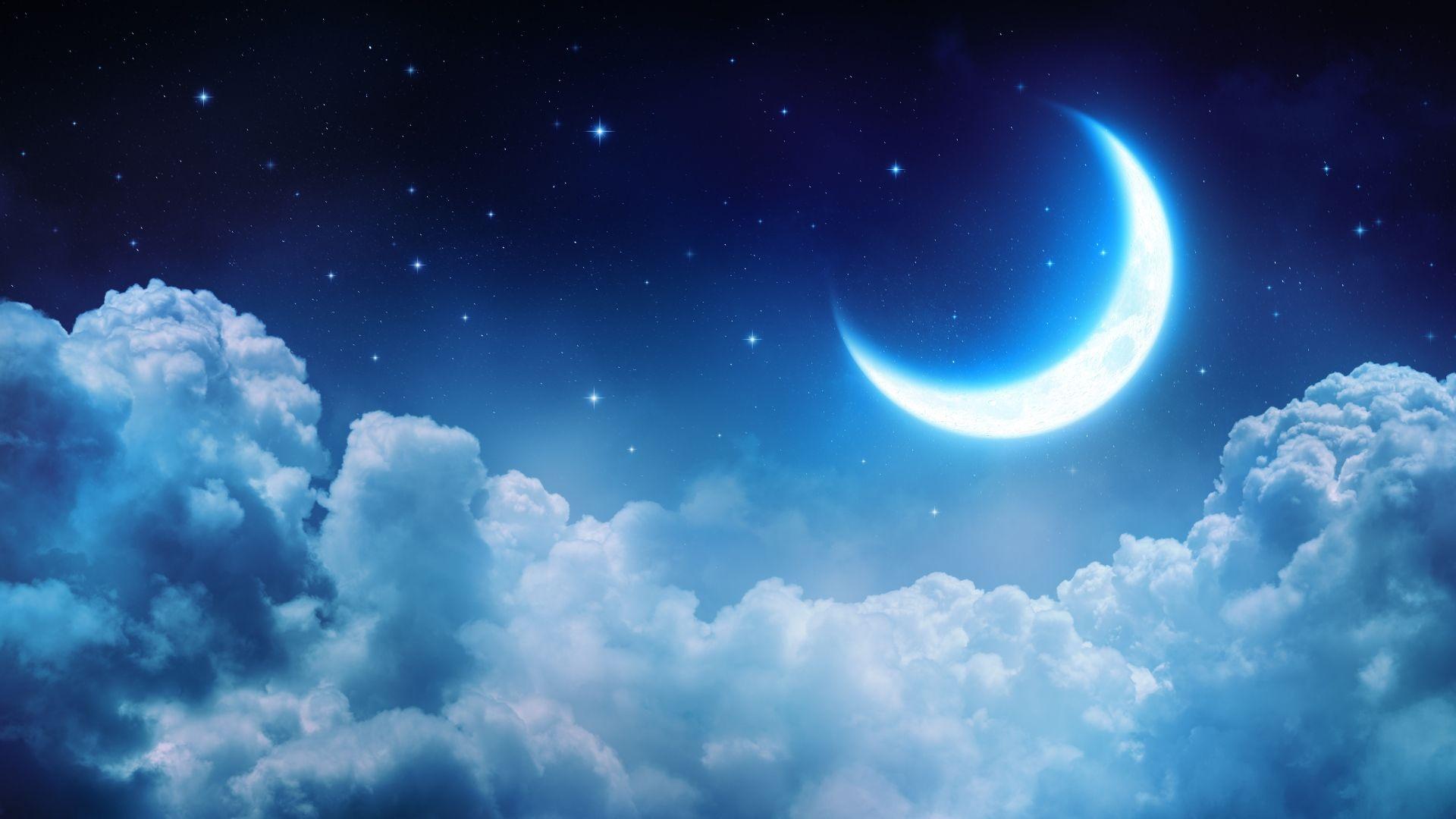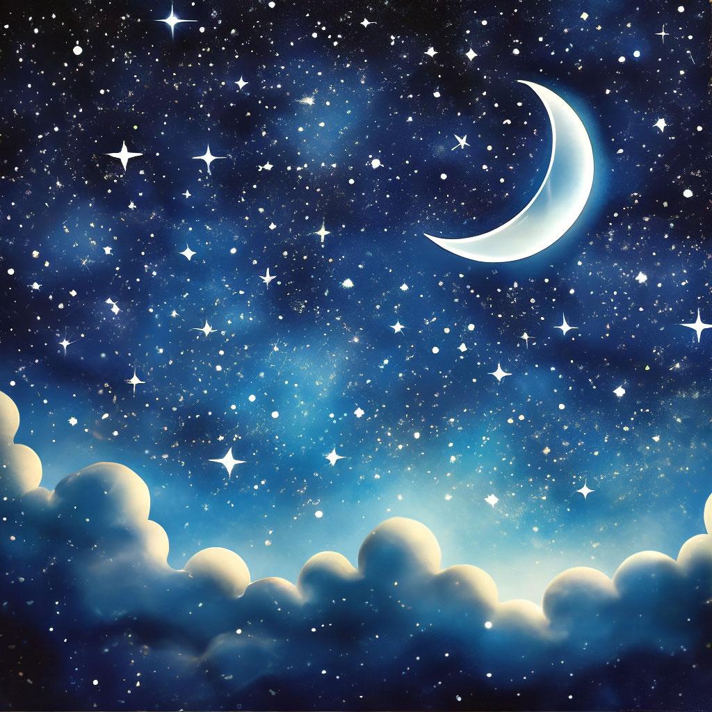 Ночное небо со звездами и луной