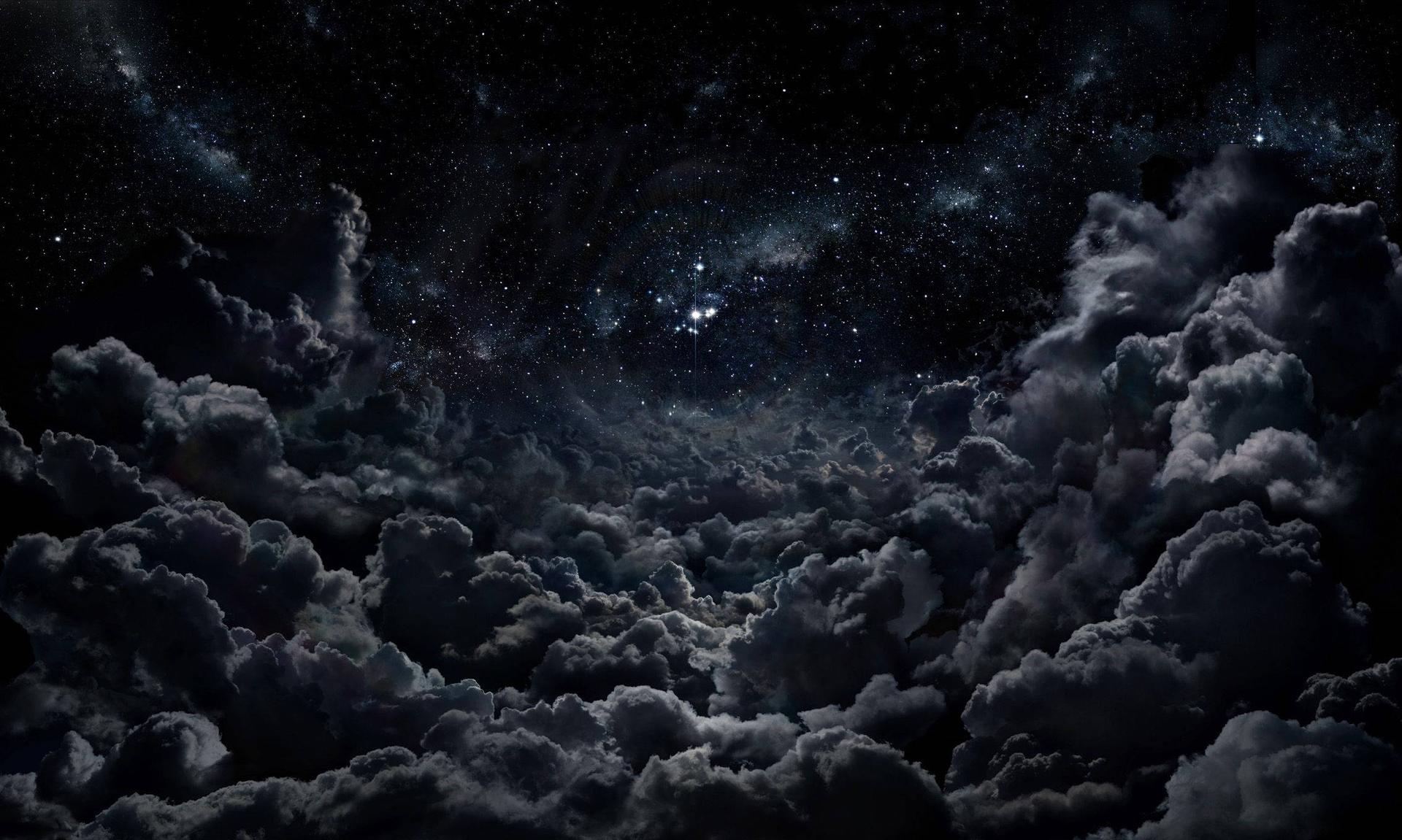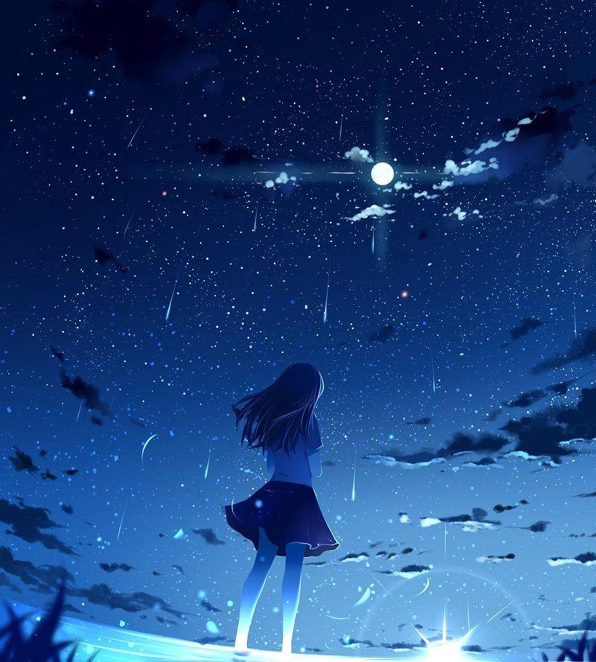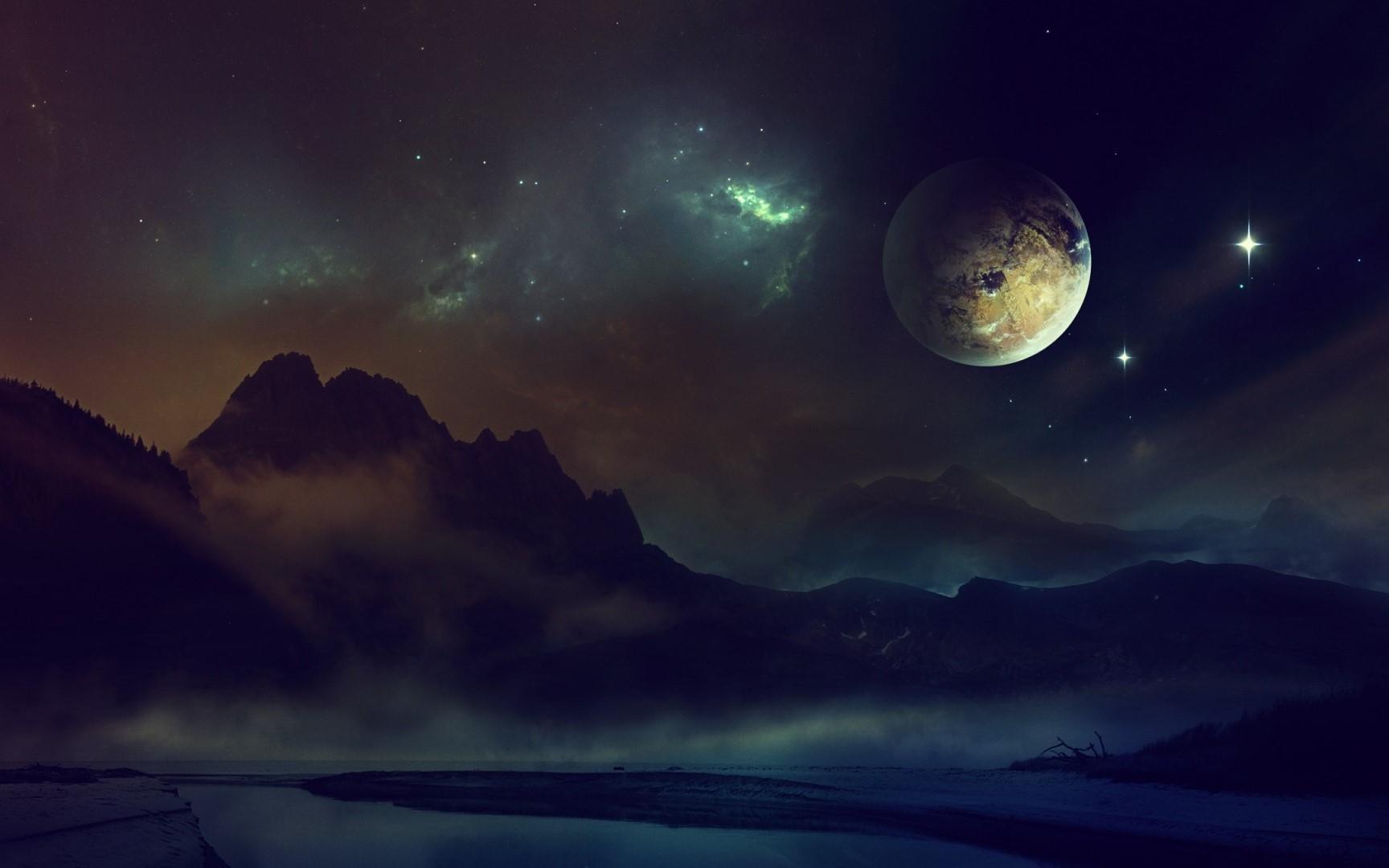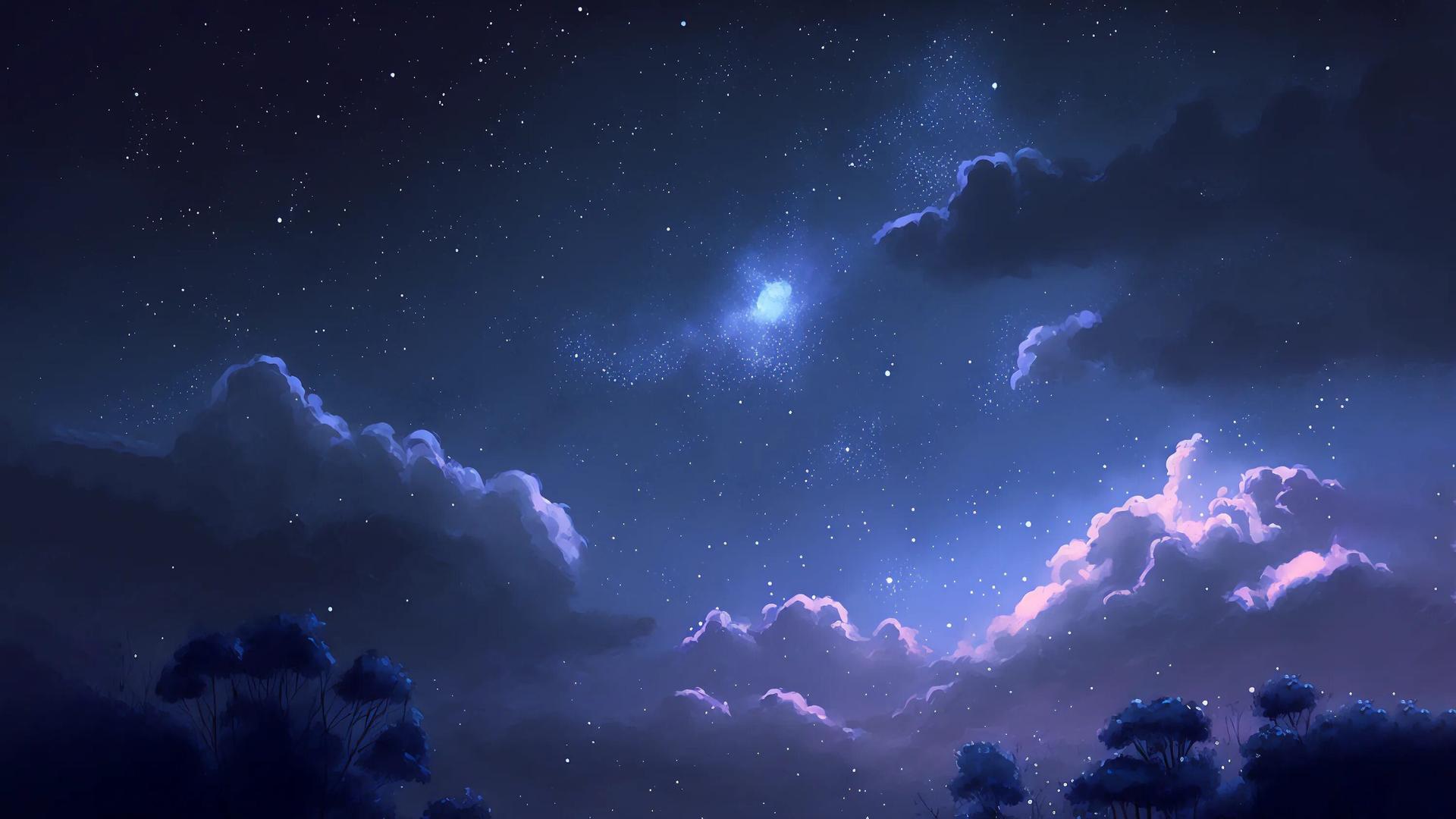 Ночное небо со звездами и луной