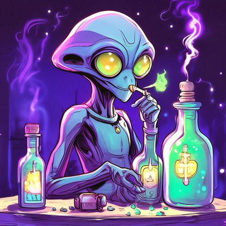 Накуречный инопланетянин в иллюстрациях предстает как воплощение космического юмора и альтернативной культуры. Эти арты мастерски передают атмосферу ретро-футуризма, где пришелец из космоса наслаждается земными радостями в компании дыма и расслабления. Каждый рисунок рассказывает историю о межзвездных путешествиях, культурных открытиях и неожиданных приключениях инопланетного туриста. Тематика космоса органично переплетается с элементами поп-культуры, создавая уникальные композиции, которые привлекают внимание любителей sci-fi и альтернативного искусства. Иллюстрации демонстрируют различные аспекты жизни космического путешественника - от посадки на Землю до знакомства с местными традициями. Такие изображения вдохновляют на создание собственных историй в жанре космической комедии и фантастики.