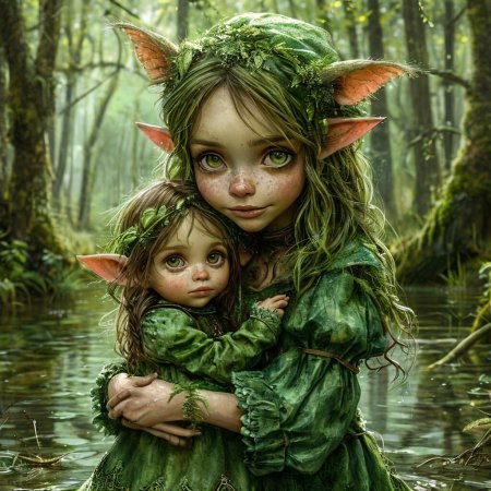 Kikimora болотная оживает в серии мистических иллюстраций, где каждая композиция передает атмосферу славянского фольклора и древней магии. Её образ воплощает связь с болотной стихией, создавая силуэт, полный тайны и природной силы. Арты демонстрируют различные проявления её характера - от игривой озорницы до мудрой хранительницы. Детализированные изображения показывают текстуру тканей, растительные элементы и атмосферу болотного мира. Фон композиций передает ощущение славянской природы - туманные болота, древние леса, лунные ночи. Каждая иллюстрация рассказывает историю о связи с природой, народных традициях и силе фольклора. Эти изображения воплощают философию духа, который охраняет равновесие между мирами.