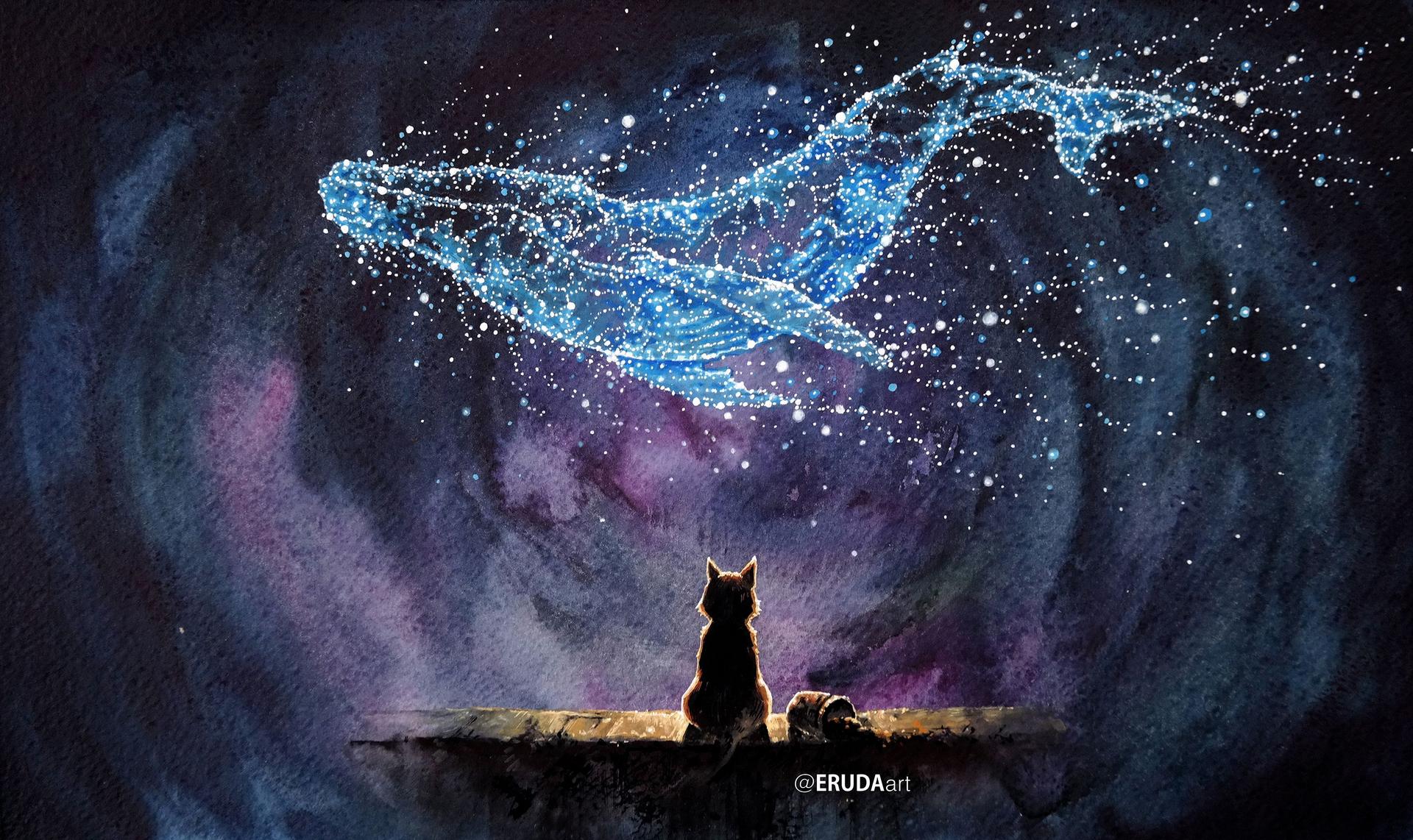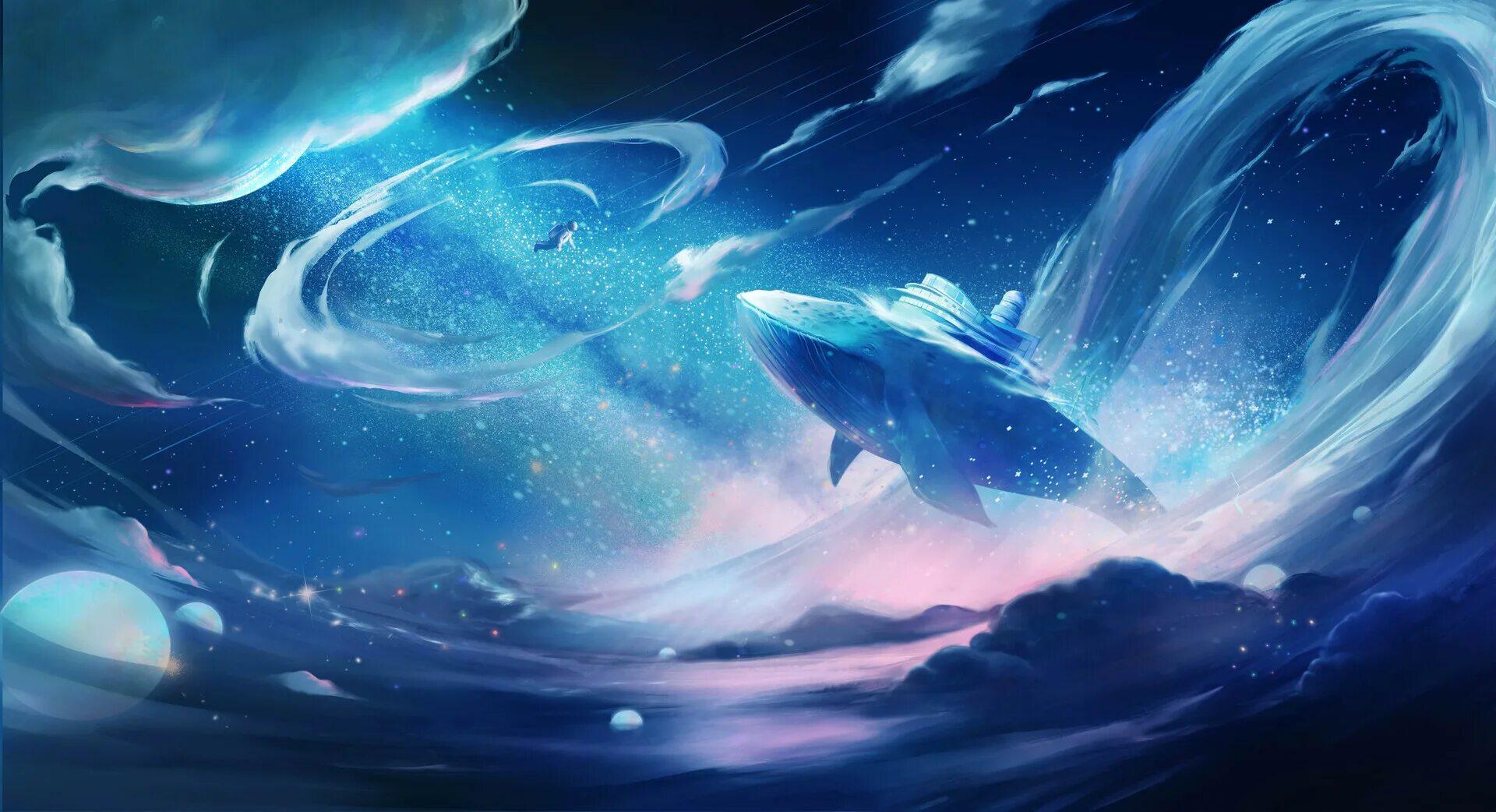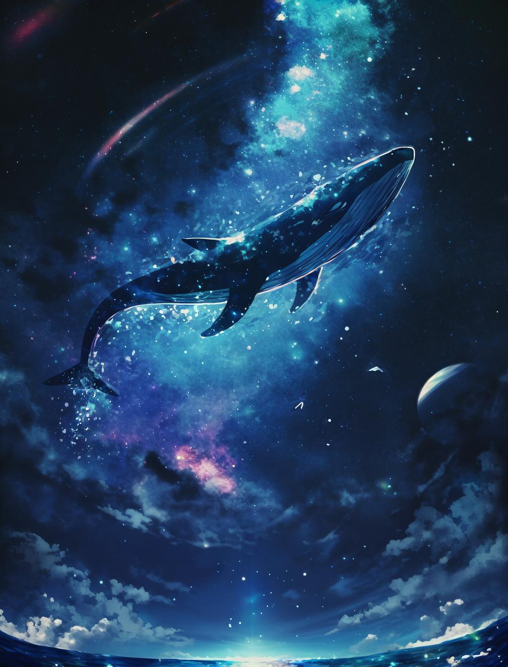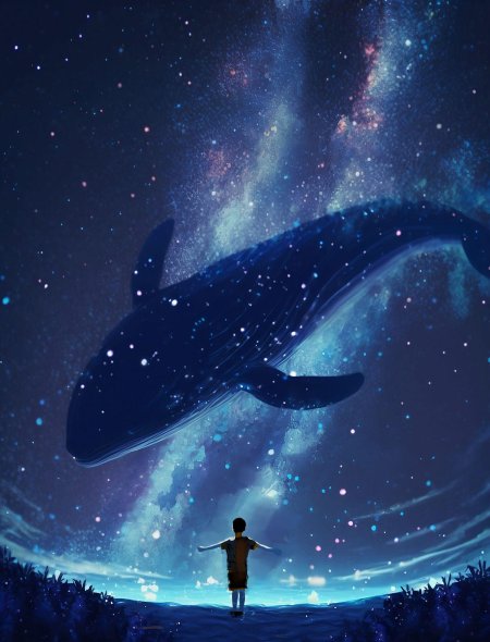 Космические киты оживают в серии фантастических иллюстраций, где каждая композиция сочетает грацию океанических гигантов с бескрайними просторами вселенной. Их тела переливаются звездным светом, а плавники оставляют следы в космической пыли. Арты демонстрируют различные аспекты их существования: от спокойного плавания в звездных течениях до мощных прыжков через космические штормы. Детализированные изображения показывают текстуру кожи, напоминающей ночное небо, и атмосферу бесконечности. Фон композиций передает ощущение масштаба - галактические спирали, туманности, черные дыры. Каждая иллюстрация рассказывает историю о величии природы, тайнах вселенной и гармонии между живым и космосом. Эти изображения воплощают философию существования, где даже гиганты кажутся скромными частицами бесконечного мира.