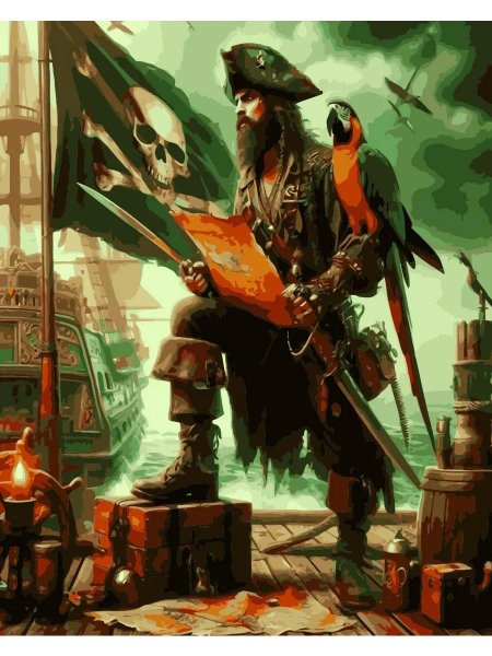 Капитан Хант предстает в образе классического пиратского героя, чьи приключения полны романтики морских просторов и опасности океанских штормов. Иллюстрации демонстрируют различные грани его характера: от харизматичного лидера команды до беспощадного бойца в морских сражениях. Его образ дополняют традиционные пиратские атрибуты - треуголка, крюк вместо руки, деревянная нога, но с современным художественным прочтением. Каждая картинка рассказывает историю: штормовые ночи на палубе, поиски сокровищ на необитаемых островах, перестрелки с королевским флотом. Детализированные арты показывают морские пейзажи, корабельные конструкции и атмосферу пиратской жизни XVII-XVIII веков. Фон композиций передает динамику морских приключений - волны, паруса, горизонты и штормовые тучи. Эти изображения не просто портреты героя, а визуальные саги о свободе, приключениях и неукротимом духе мореплавателей.