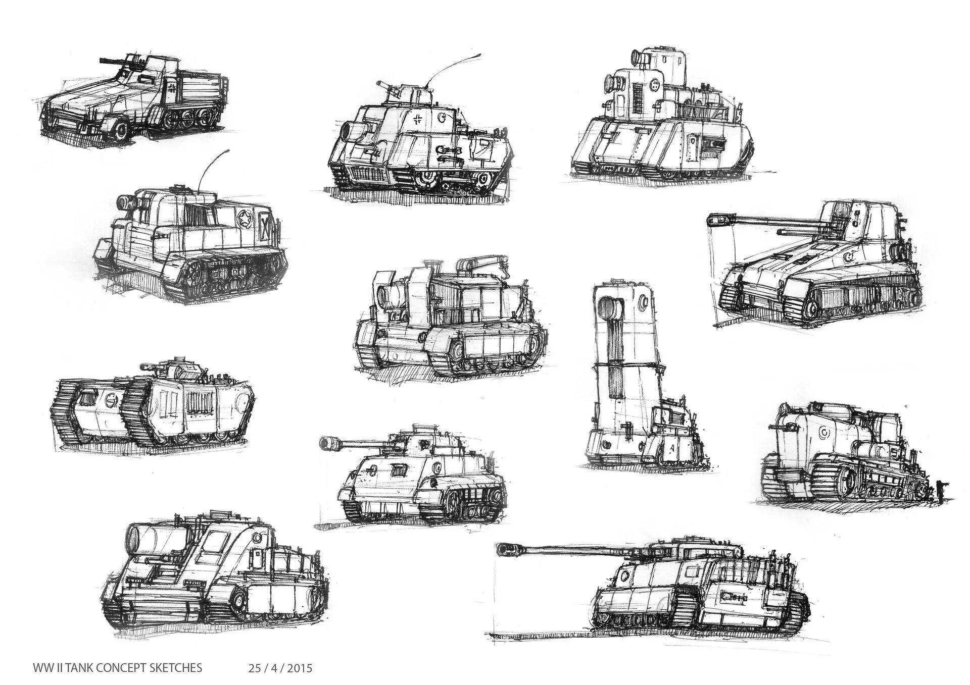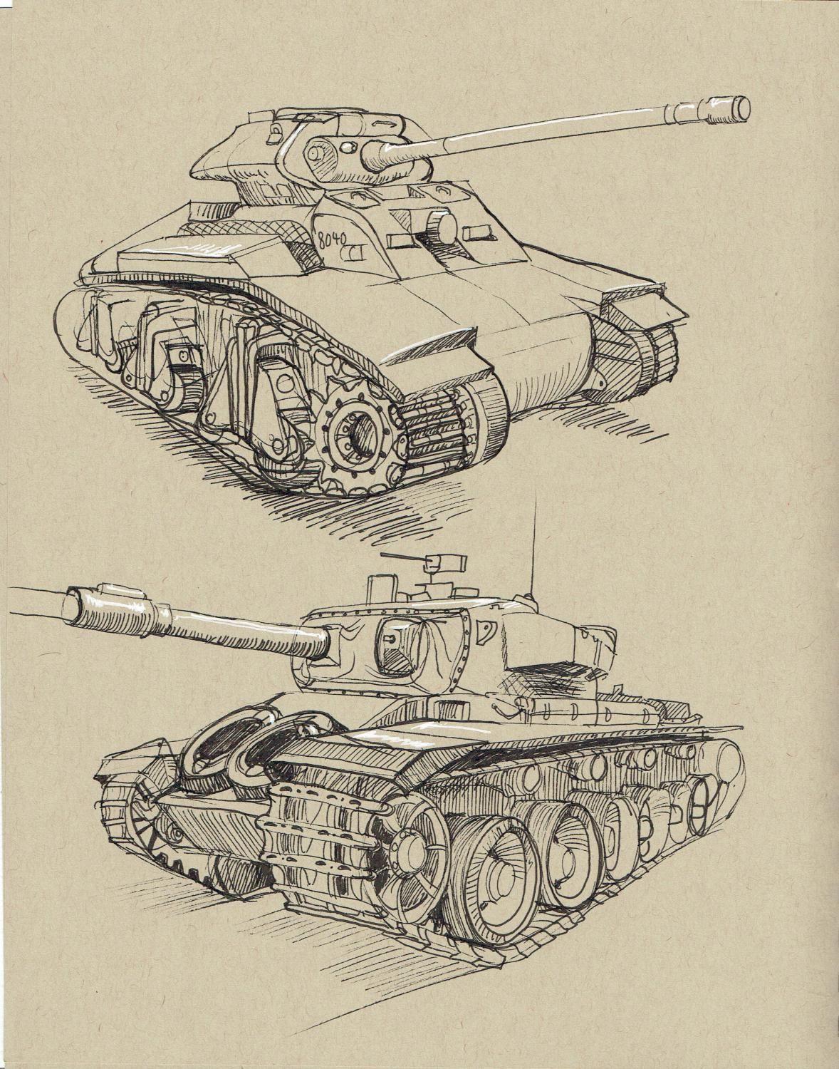 Военные танки оживают на бумаге через серию выразительных эскизов, где каждая линия несет в себе мощь и технологическое совершенство. Художник мастерски передает габариты бронированных машин, их агрессивные формы и функциональную эстетику. От простых контурных набросков до детализированных технических рисунков - каждый скетч раскрывает новую грань танковой мощи. Особое внимание уделяется деталям: траки гусениц, смотровые приборы, стволы орудий и элементы брони. Различные ракурсы позволяют рассмотреть машину со всех сторон - от frontalной проекции до видов сверху и сбоку. Эскизы демонстрируют эволюцию танкового дизайна, от классических форм до современных обтекаемых силуэтов. Каждый набросок сопровождается техническими аннотациями, раскрывающими особенности конструкции и боевые характеристики. Это не просто рисунки техники, а настоящие инженерные портреты, запечатлевающие дух военной мощи.