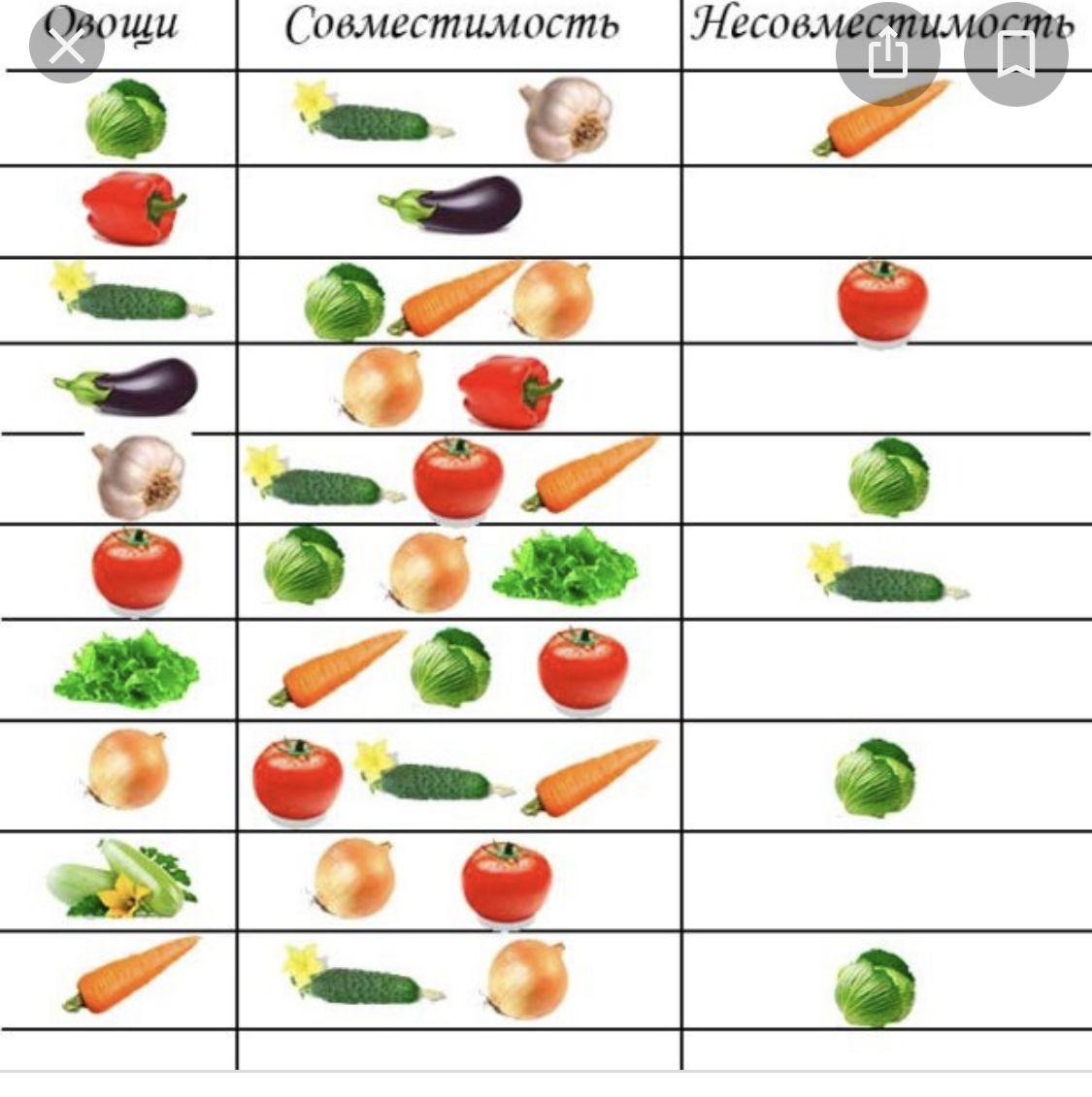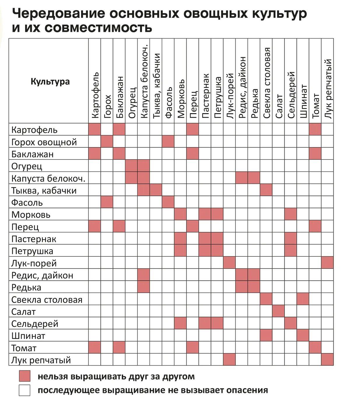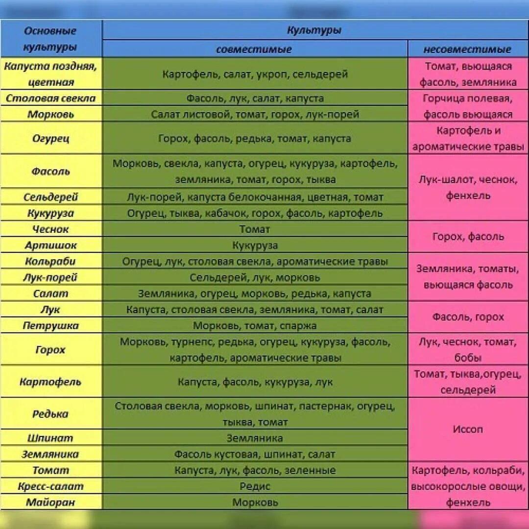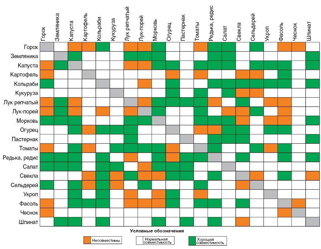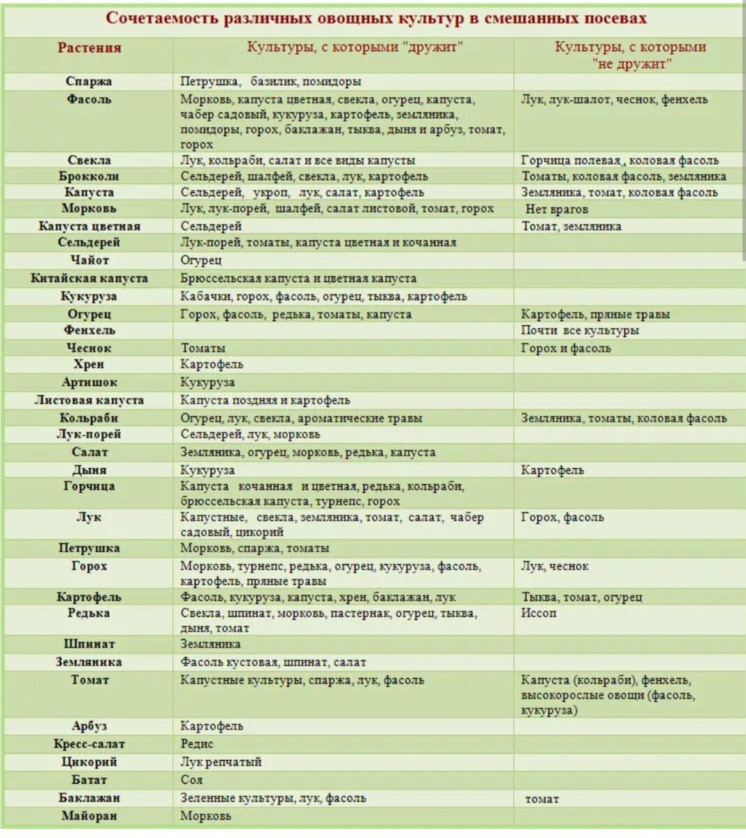 Таблица совместимости овощных культур