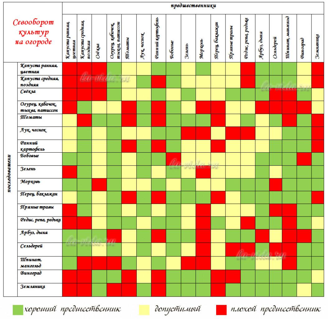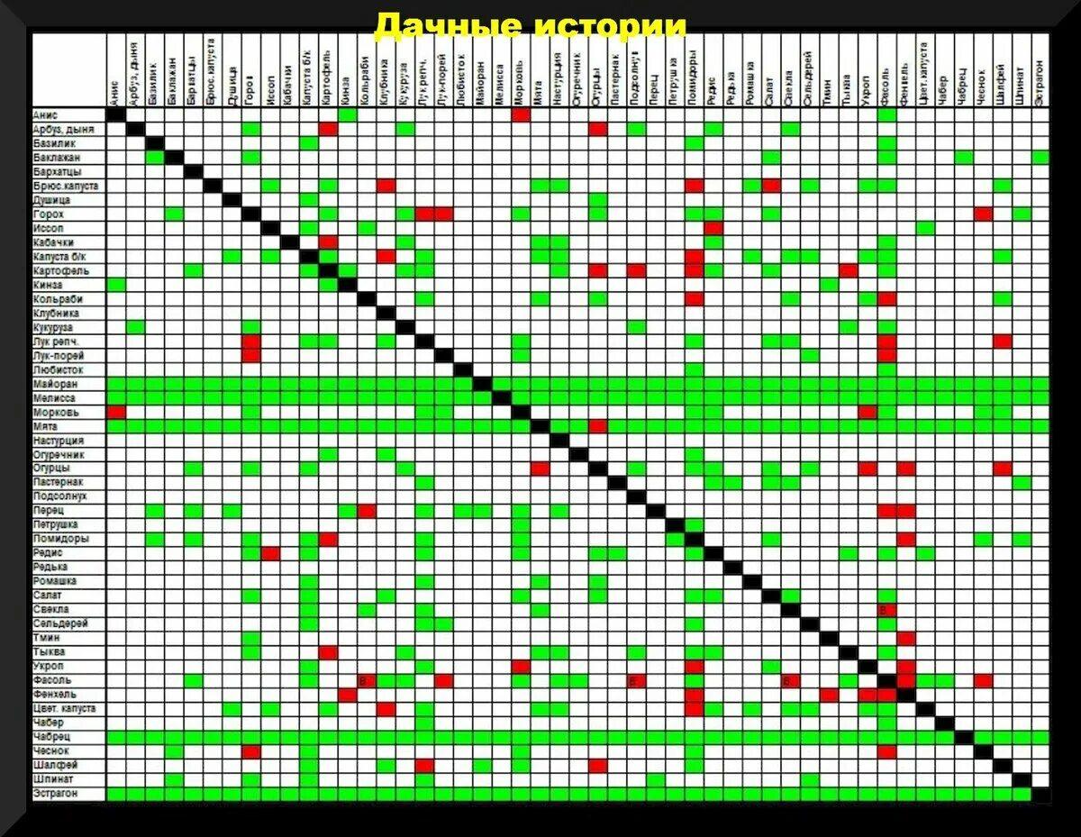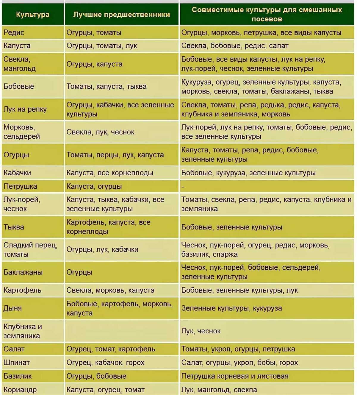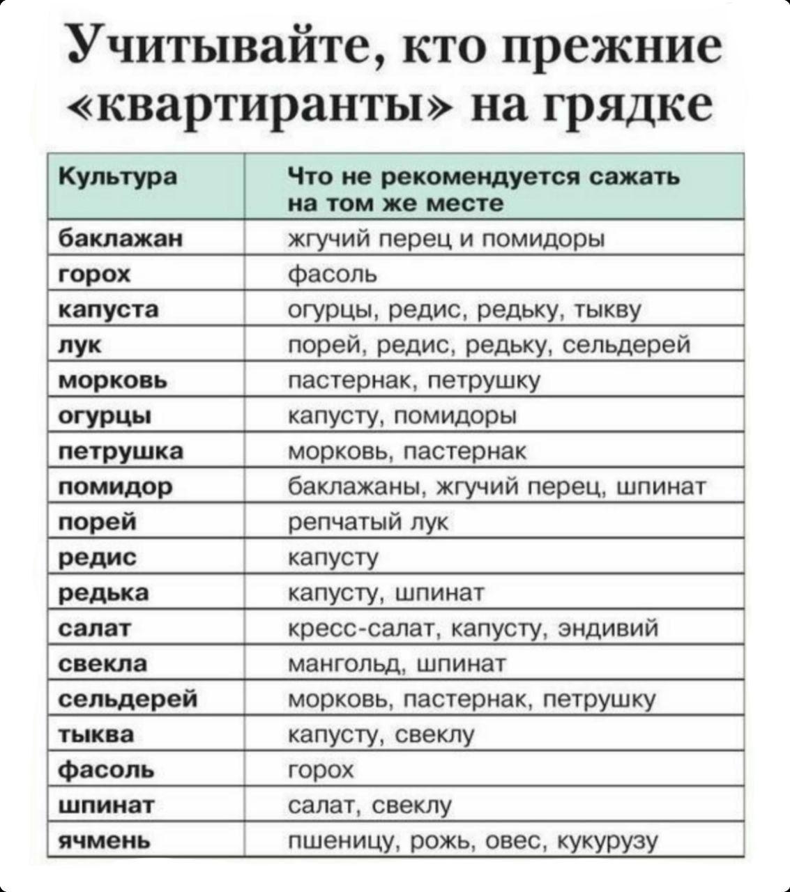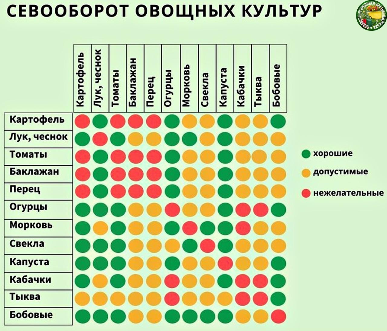 Таблица совместимости овощных культур
